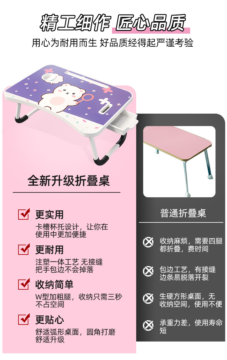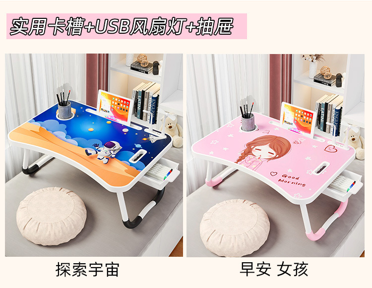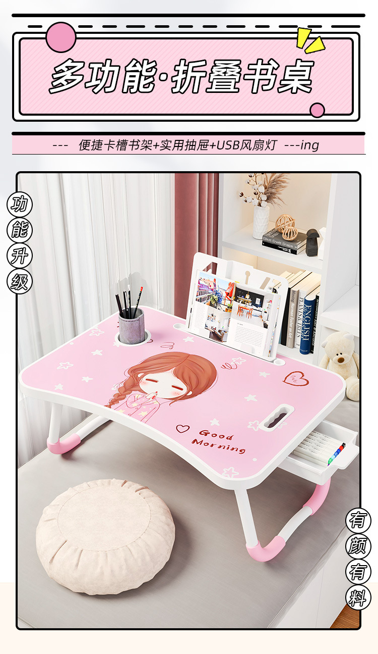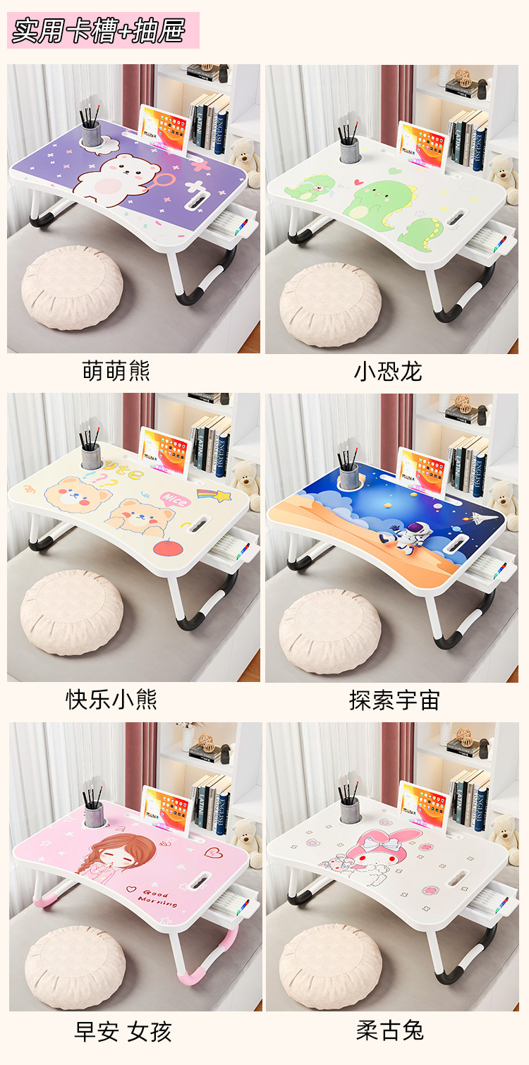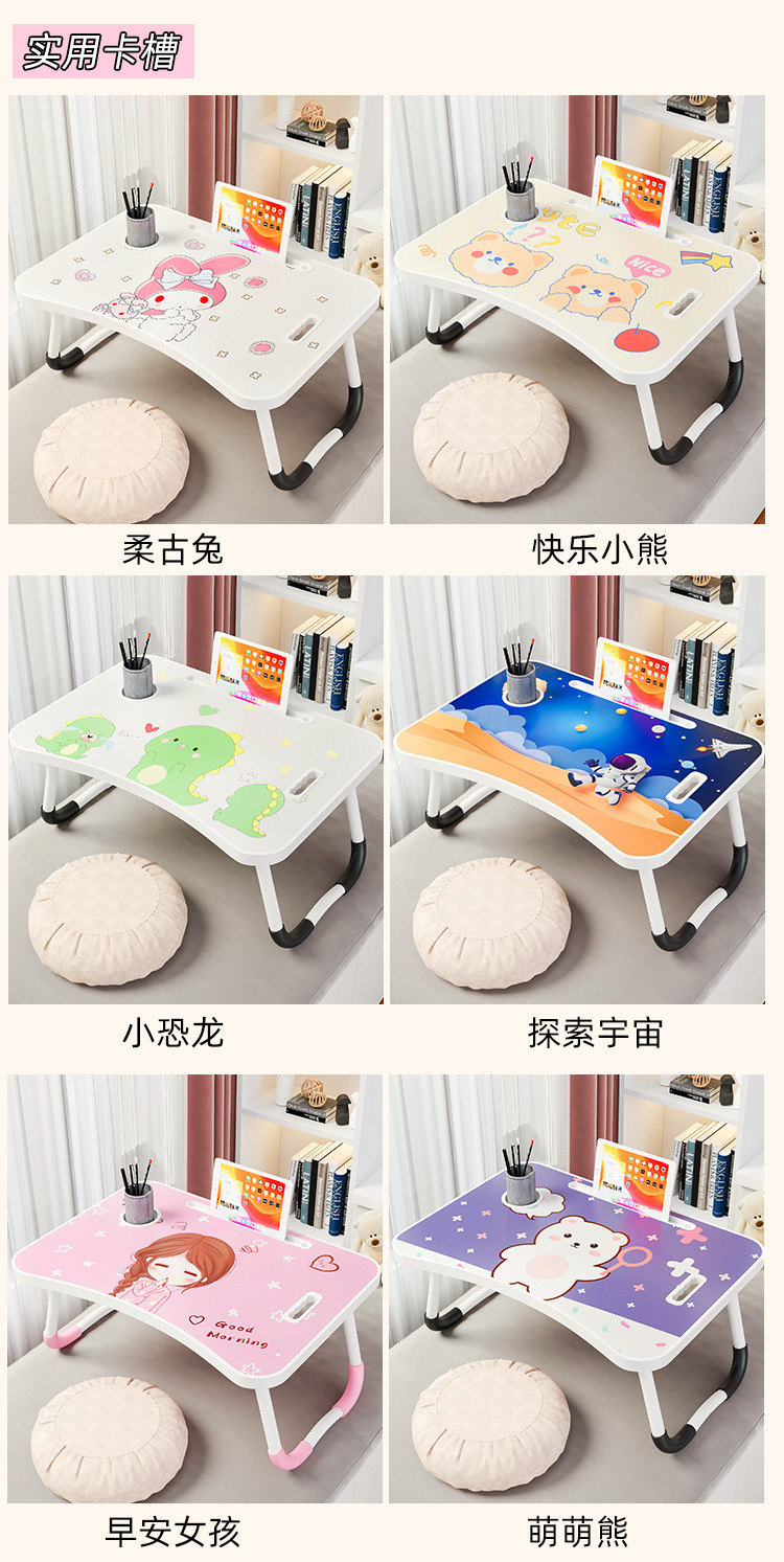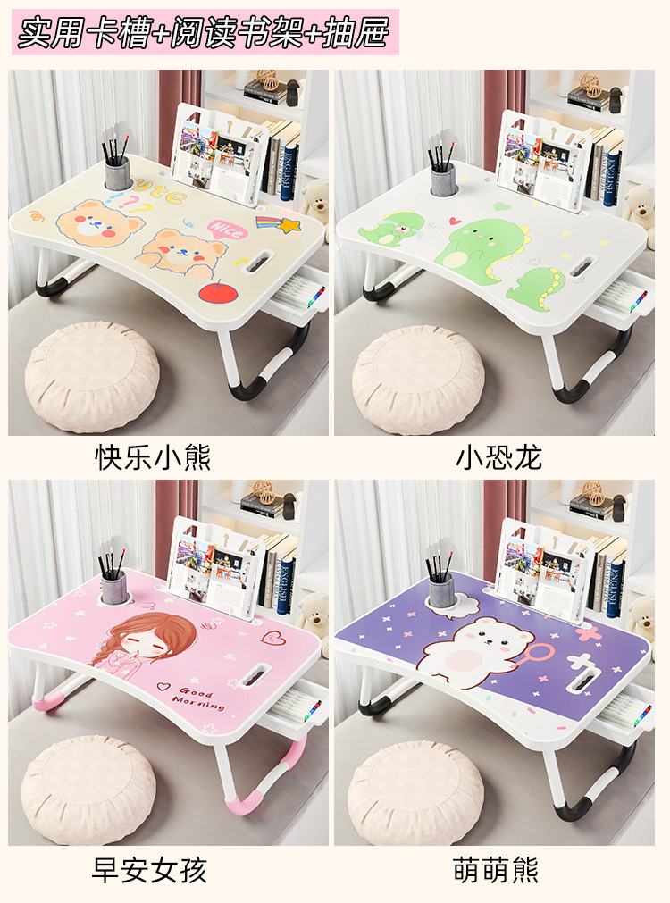Meja kecil dapat dilipat, untuk belajar menulis komputer meja malas kartun anak duduk lantai
