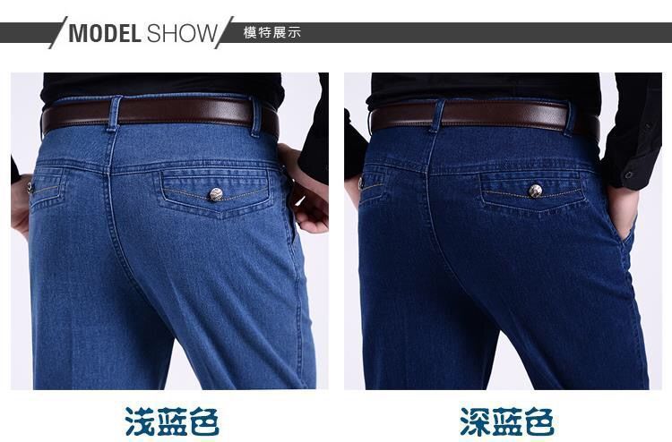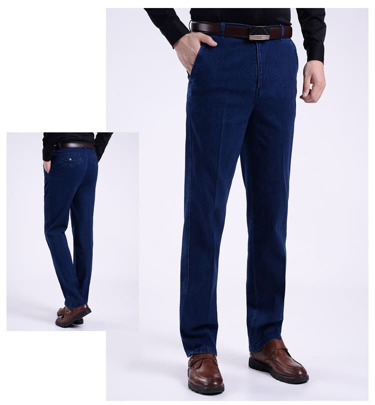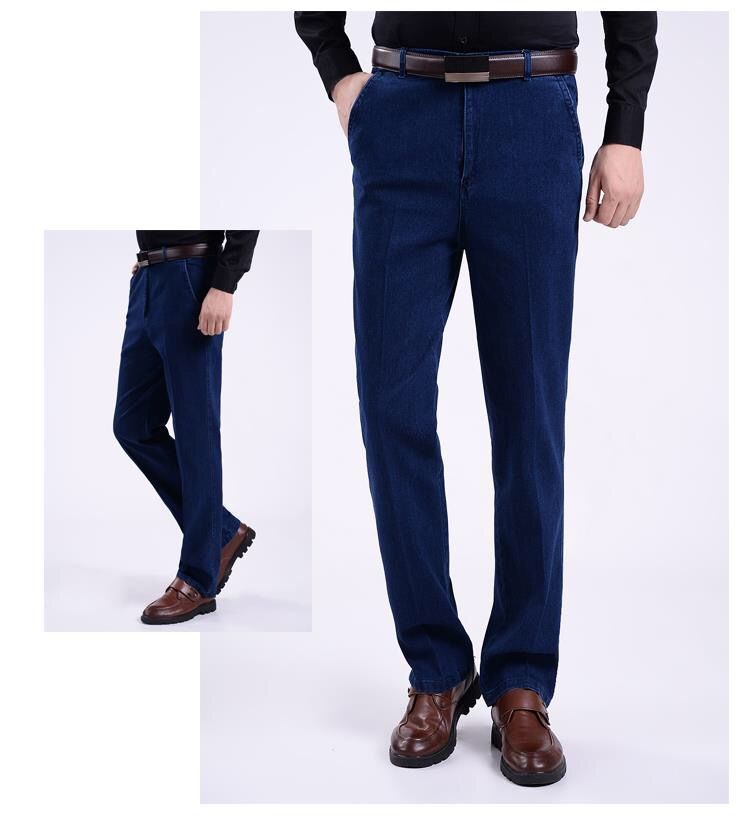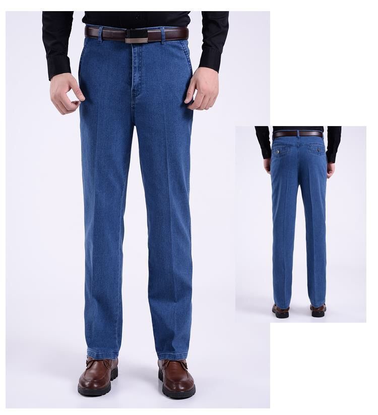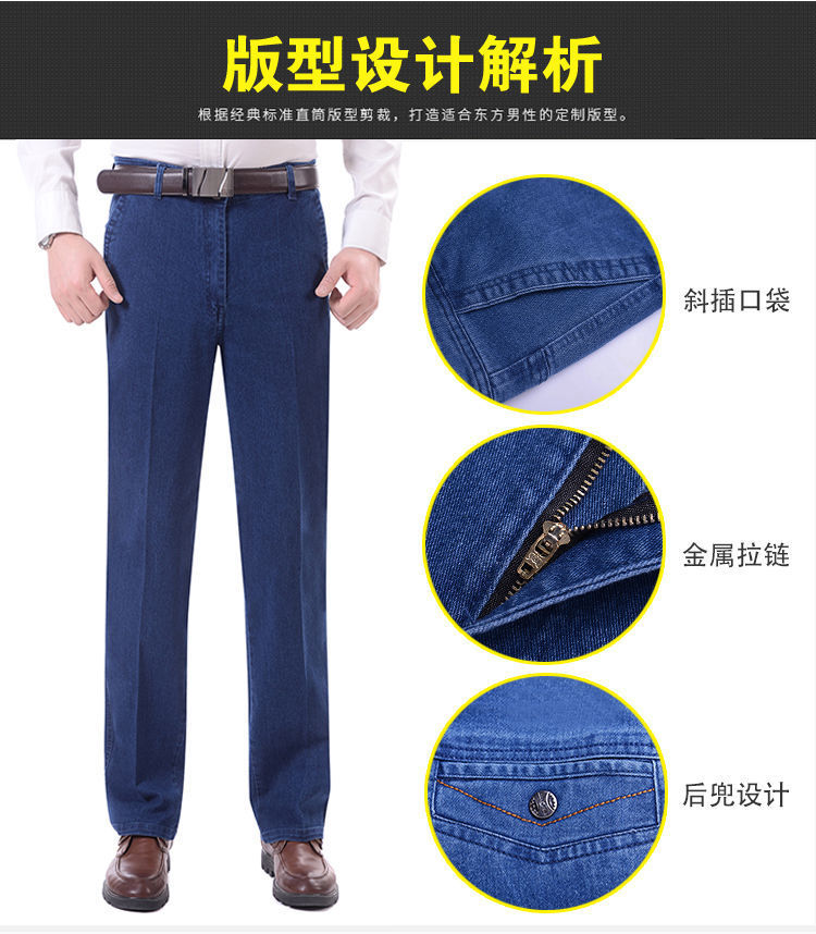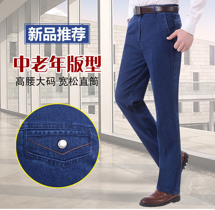 Celana jins pria kasual, celana jins ketat pria untuk usia sedang pinggang tinggi dan orang usia sedang longgar lurus di luar memakai celana Ayah