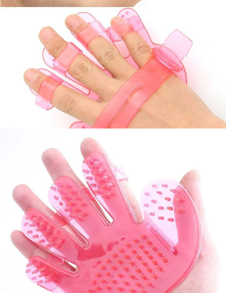 Sarung tangan perawatan hewan peliharaan lima jari untuk kucing dan anjing, menghilangkan bulu rontok, sikat sisir, alat pembersih, mandi, pijat, dan perawatan.