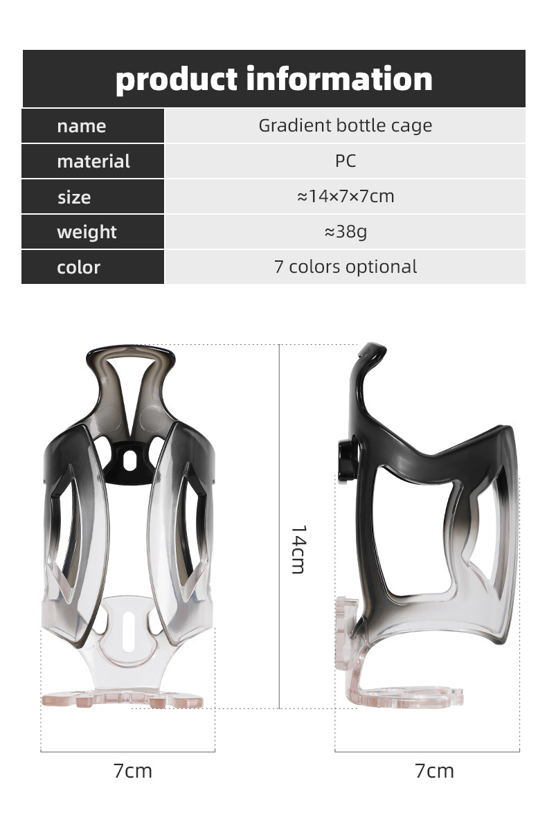 Tempat botol air sepeda multi-warna gradien untuk sepeda gunung dan sepeda jalan raya, tempat botol air PC untuk peralatan botol air olahraga bersepeda di luar ruangan.