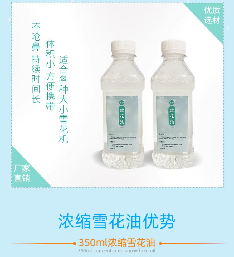 Minyak asap konsentrat, minyak kepingan salju simulasi anak-anak, gelembung cair, minyak kabut, pencahayaan panggung, efek khusus habis pakai