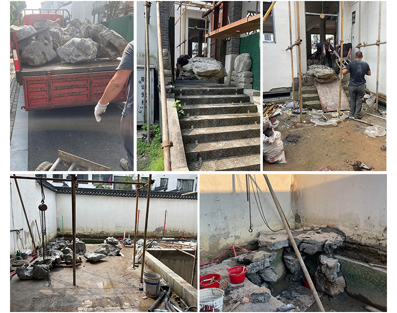 Grosir material batu berlapis ribuan lapis, batu lanskap alami, batu Lingbi alami untuk kolam ikan halaman, desain dan konstruksi batuan.