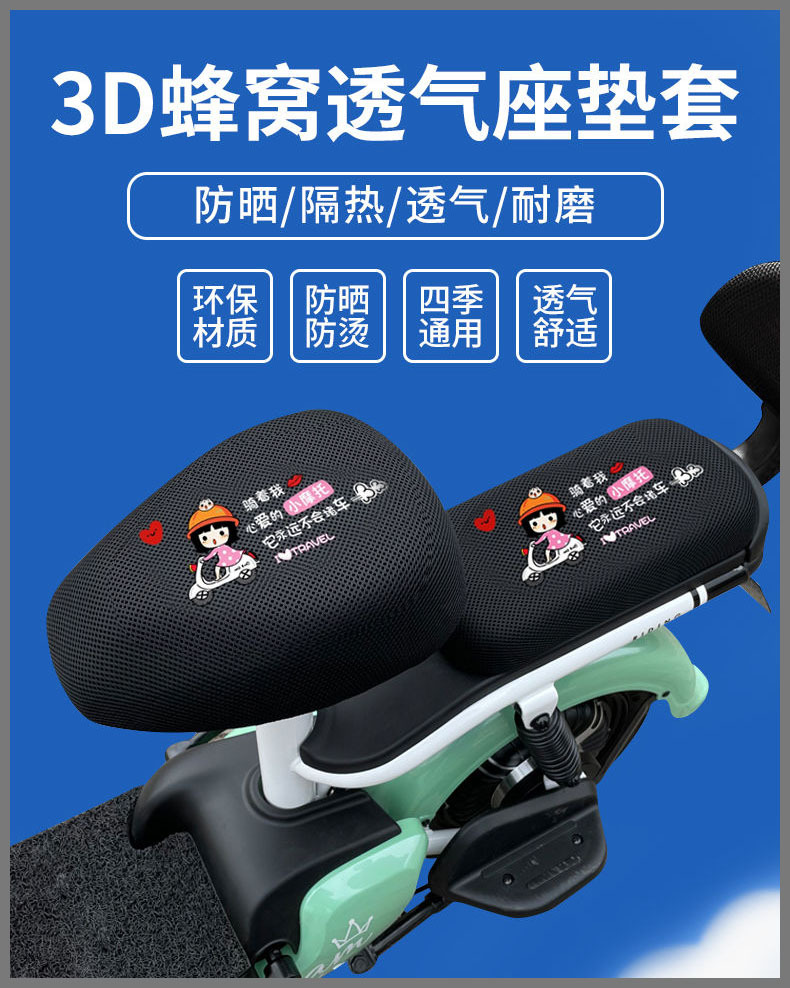 Sarung jok kendaraan listrik, sarung jok sepeda listrik, bantalan jok mobil baterai, tahan sinar matahari dan bernapas, standar nasional baru, set tiga potong Yadi untuk empat musim.