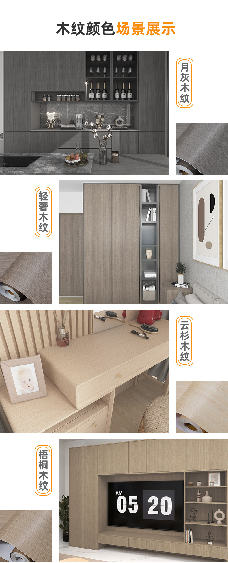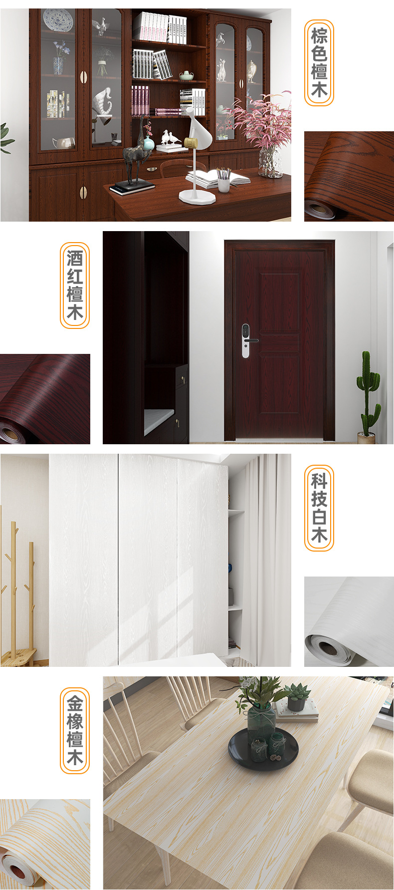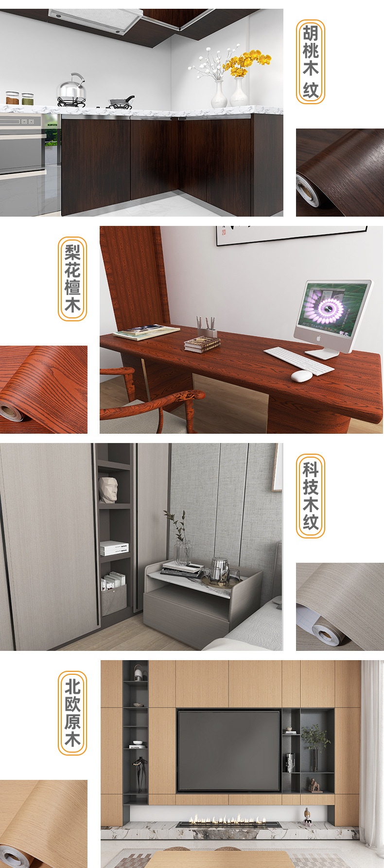 Stiker film serat kayu imitasi yang dipertebal, film dekoratif pengubah warna lemari pakaian renovasi furnitur berperekat, film meja