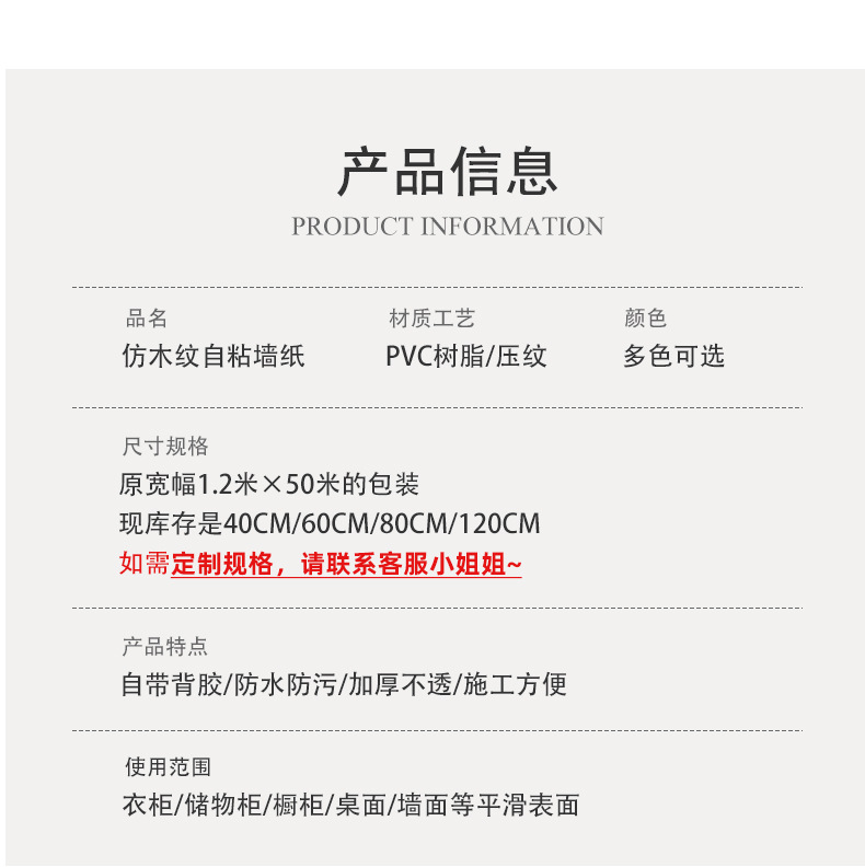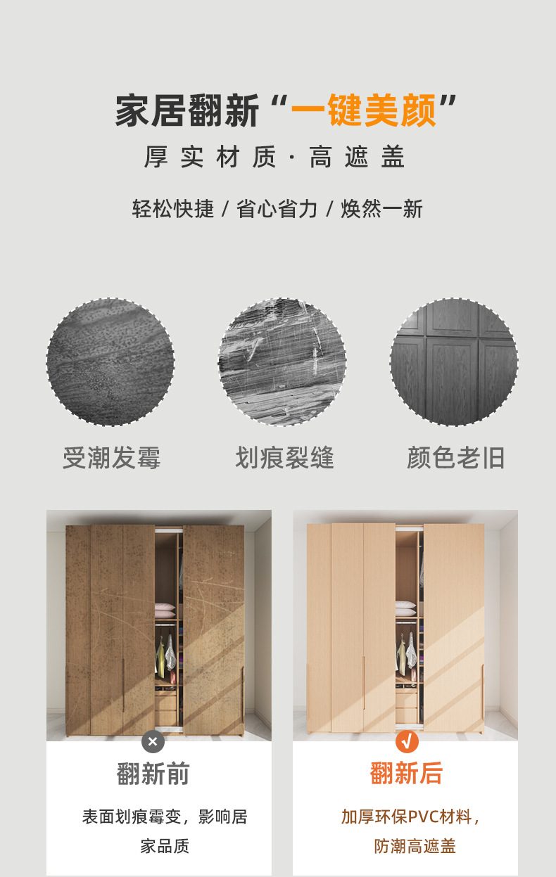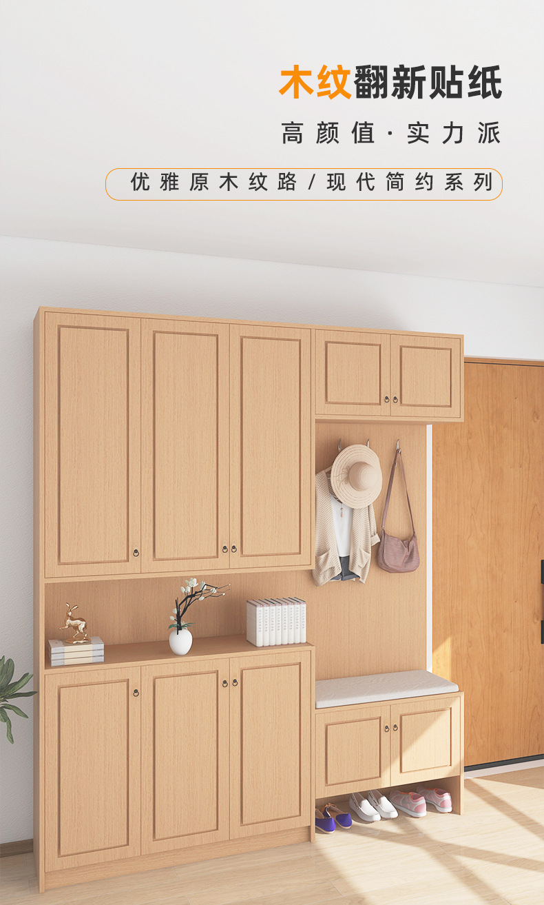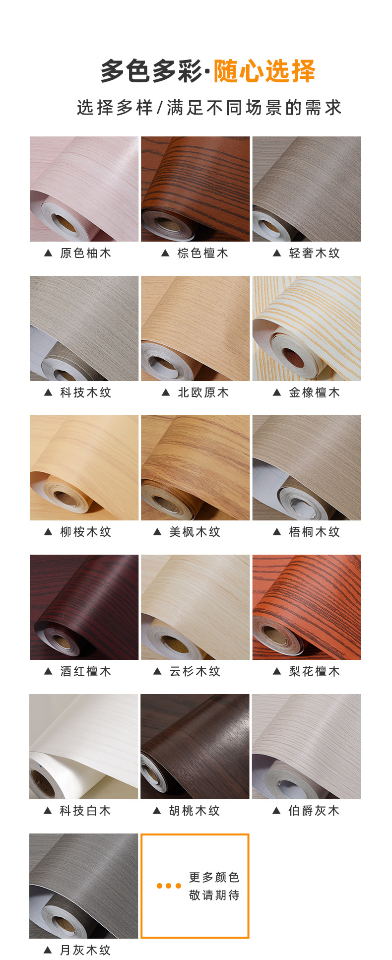 Stiker film serat kayu imitasi yang dipertebal, film dekoratif pengubah warna lemari pakaian renovasi furnitur berperekat, film meja
