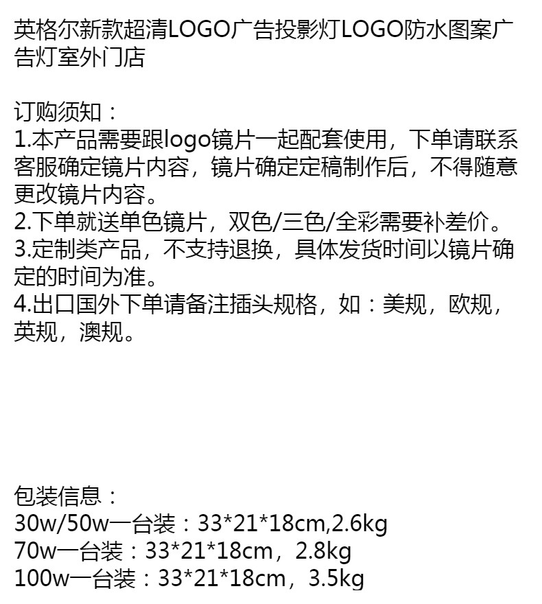 Ingle lampu proyeksi iklan LOGO, super jelas tahan air pola warna penuh lampu iklan toko luar ruangan desain logo