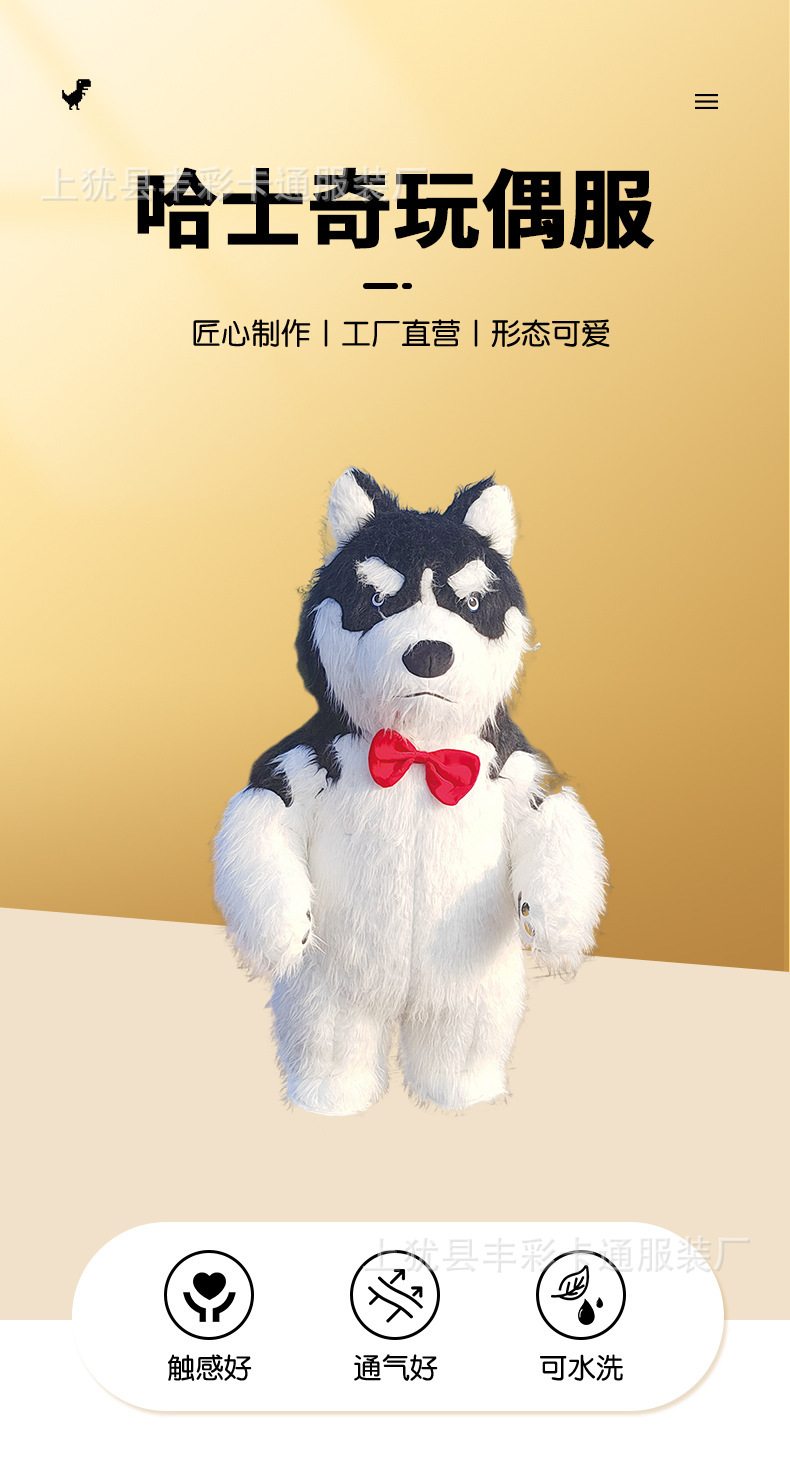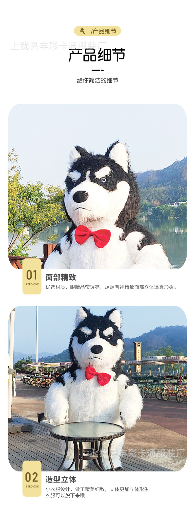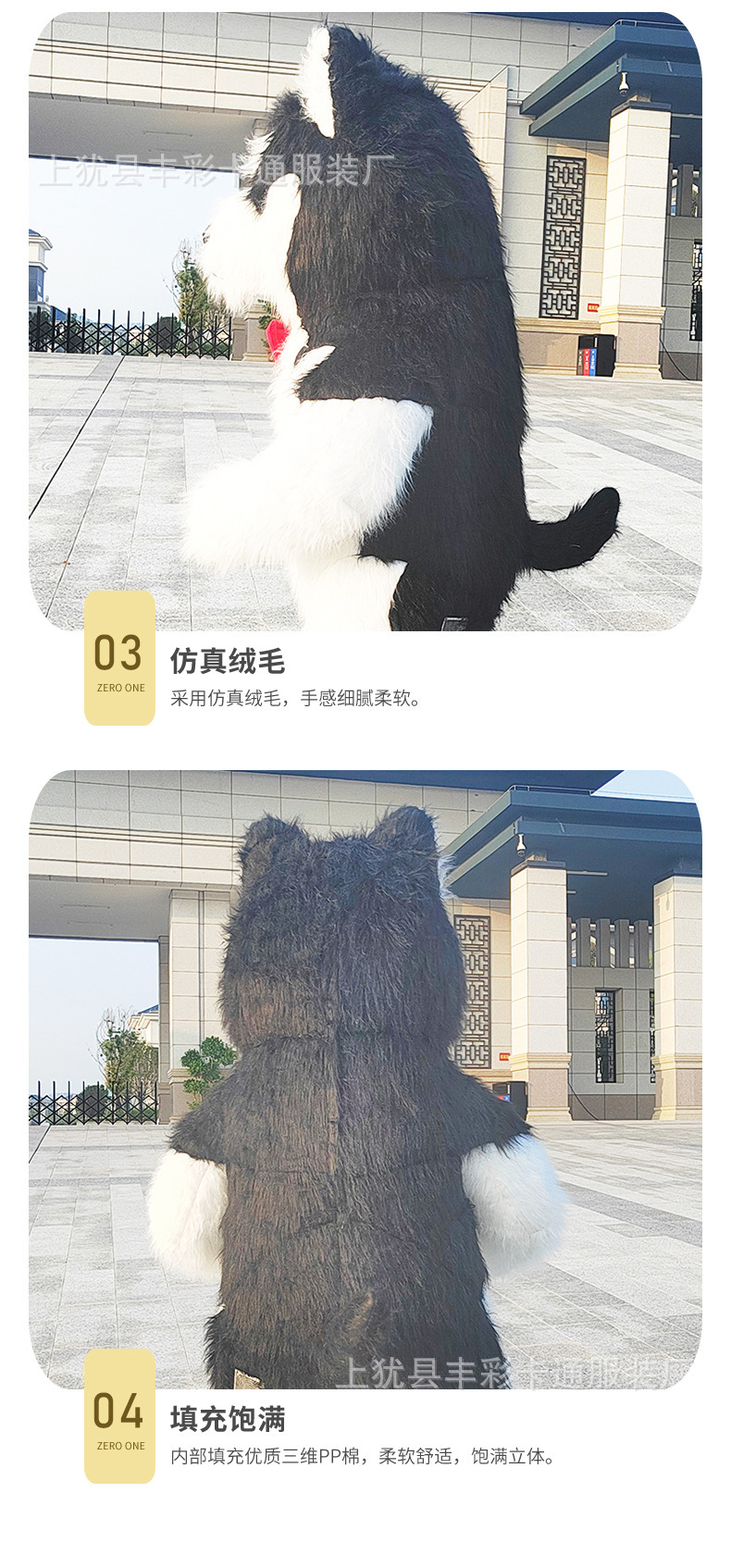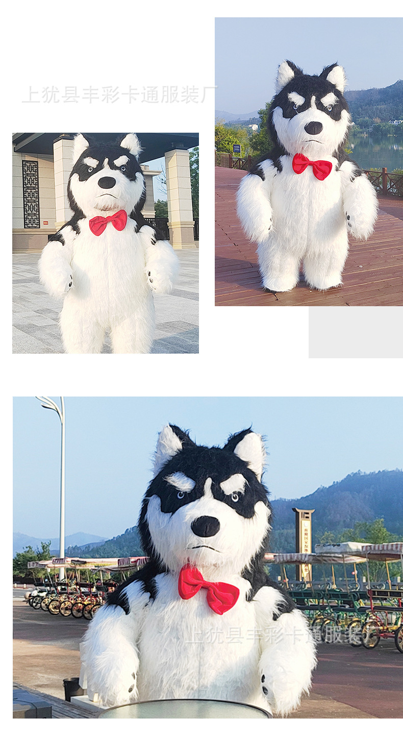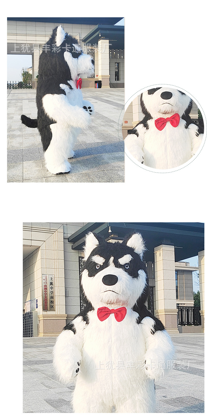 Kostum kartun husky tiup berwarna hitam, gaya boneka anak anjing berambut panjang berwarna abu-abu, gaya anime Jepang.