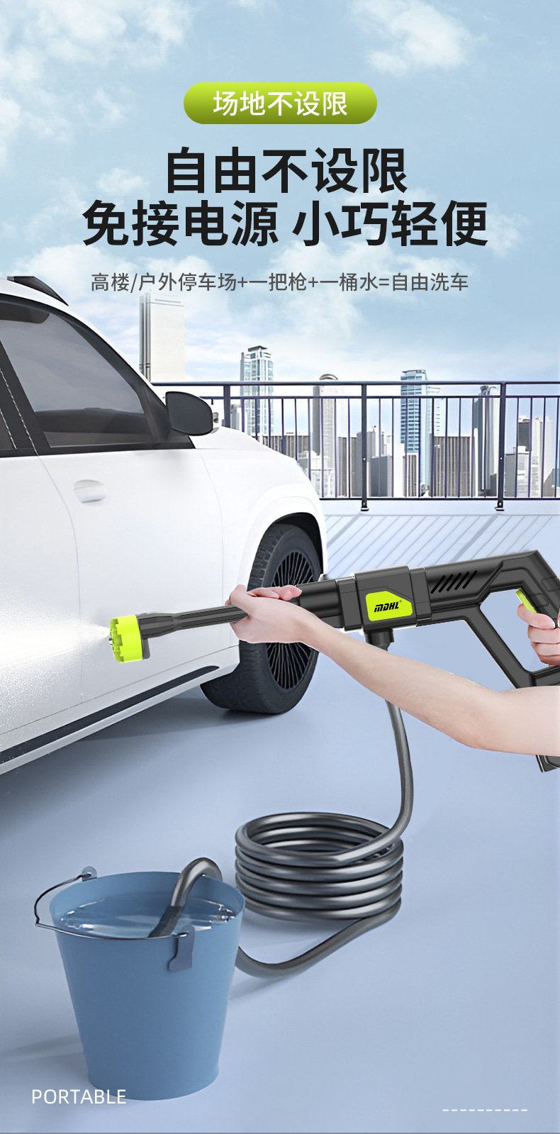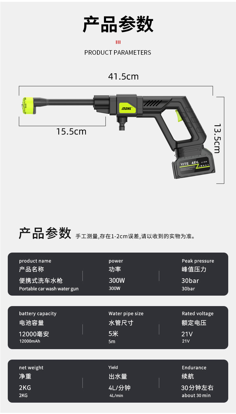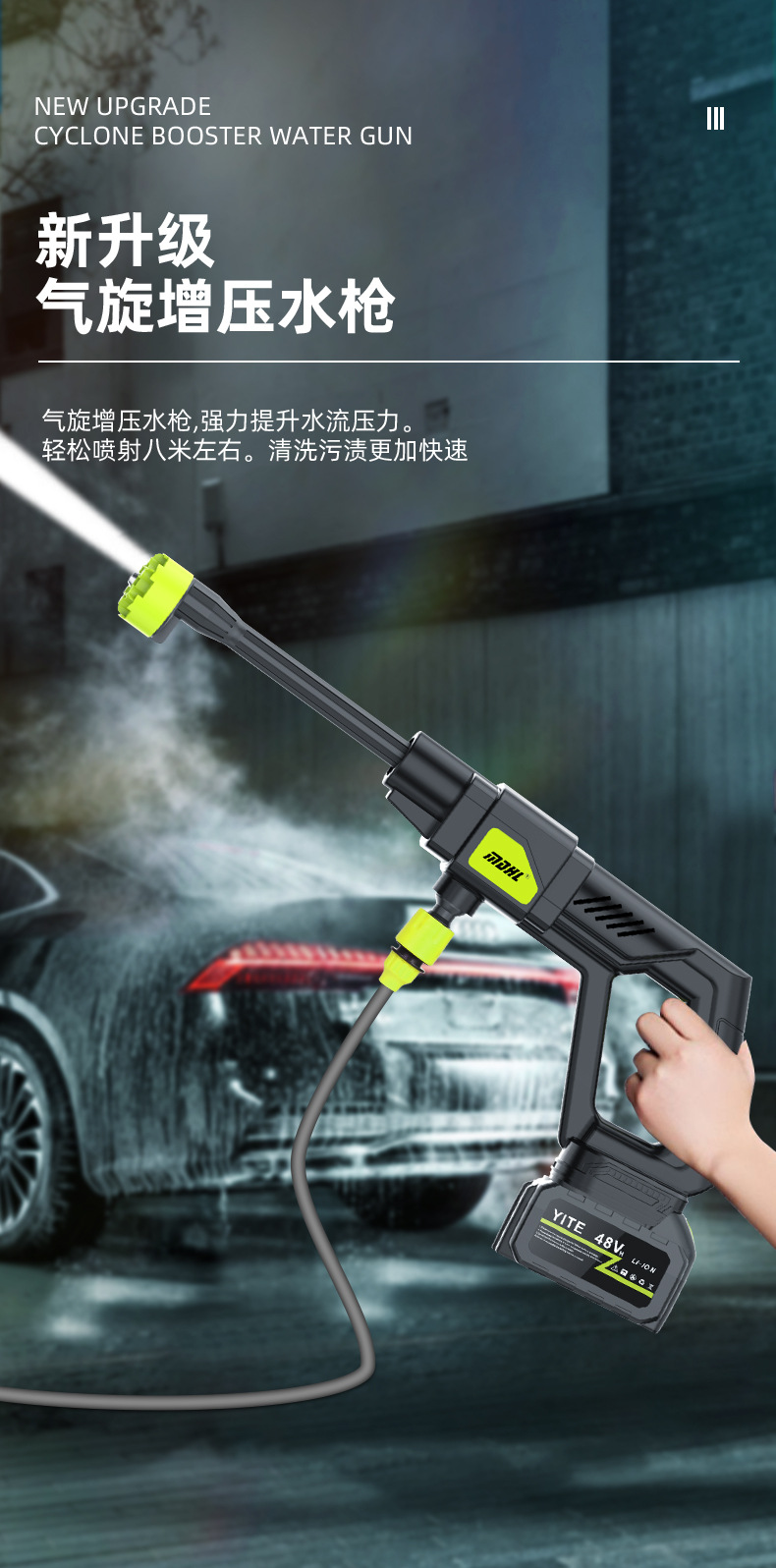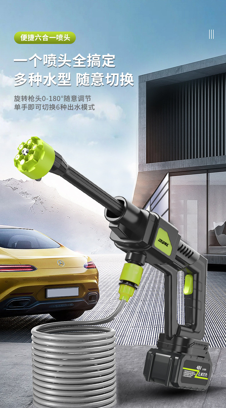 Mesin cuci mobil elektrik portabel, pistol air cuci mobil elektrik dengan baterai lithium dapat diisi ulang, Mesin cuci mobil tekanan tinggi