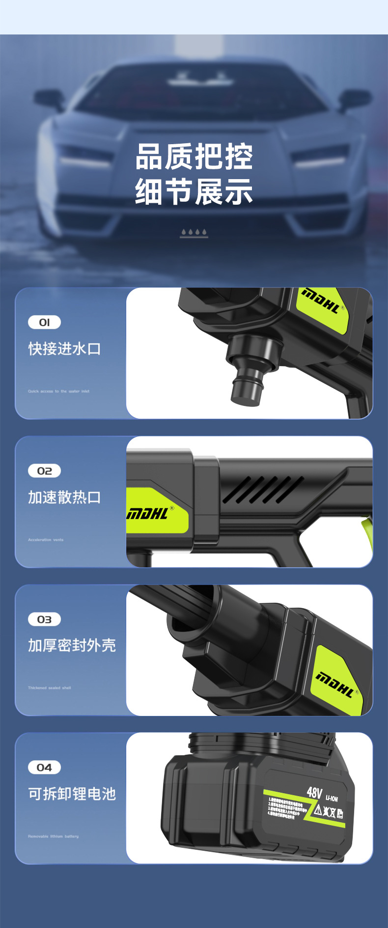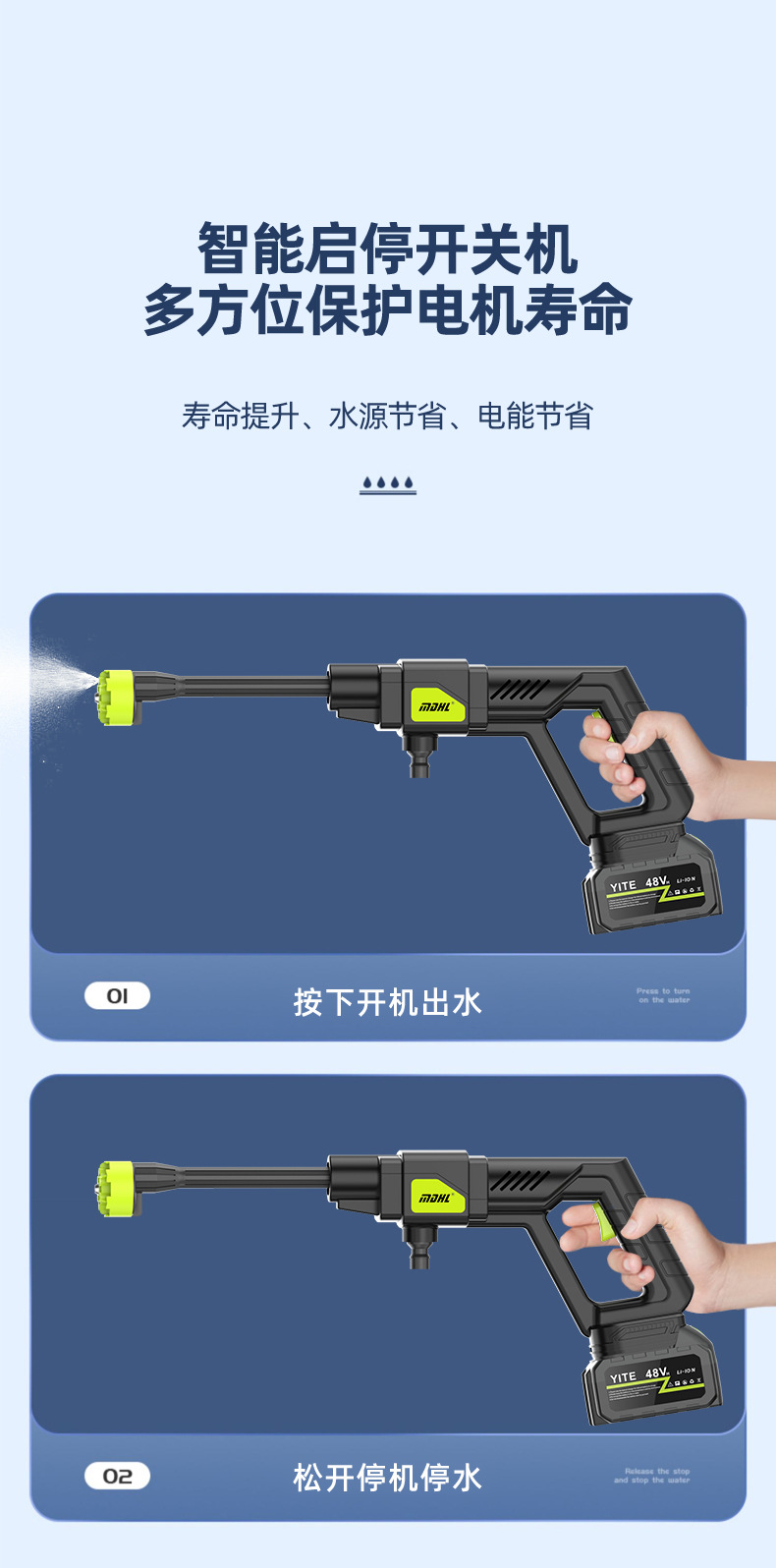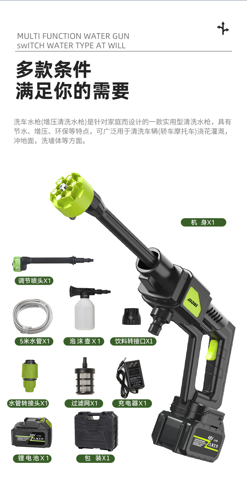 Mesin cuci mobil elektrik portabel, pistol air cuci mobil elektrik dengan baterai lithium dapat diisi ulang, Mesin cuci mobil tekanan tinggi