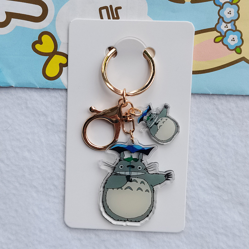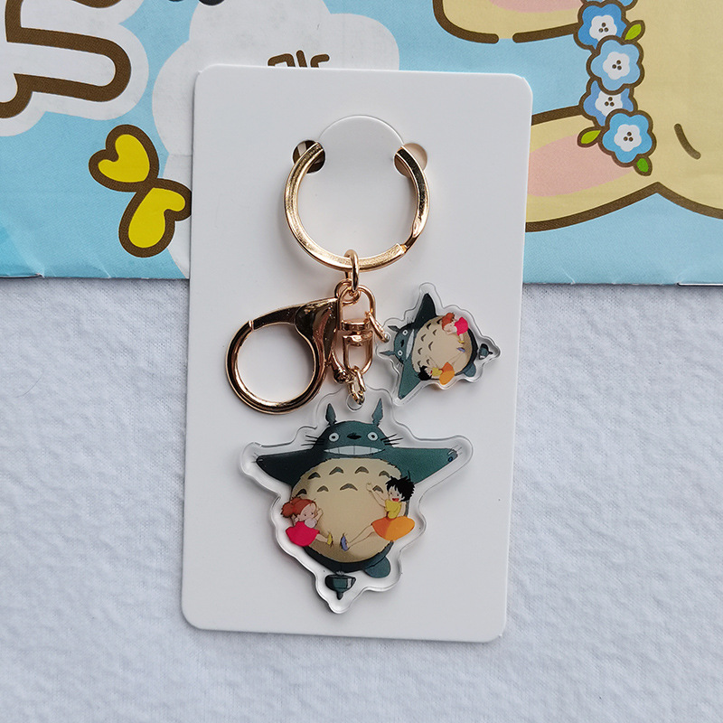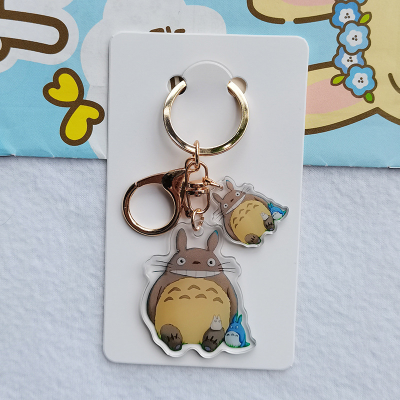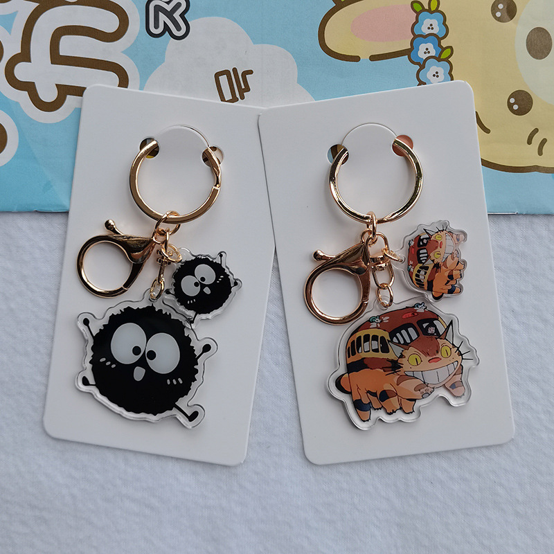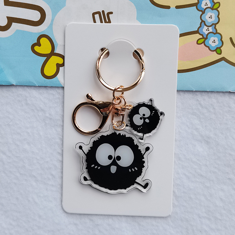Kartun lucu hitam arang Totoro gadis kecil akrilik transparan dua sisi gantungan kunci cincin ransel liontin grosir