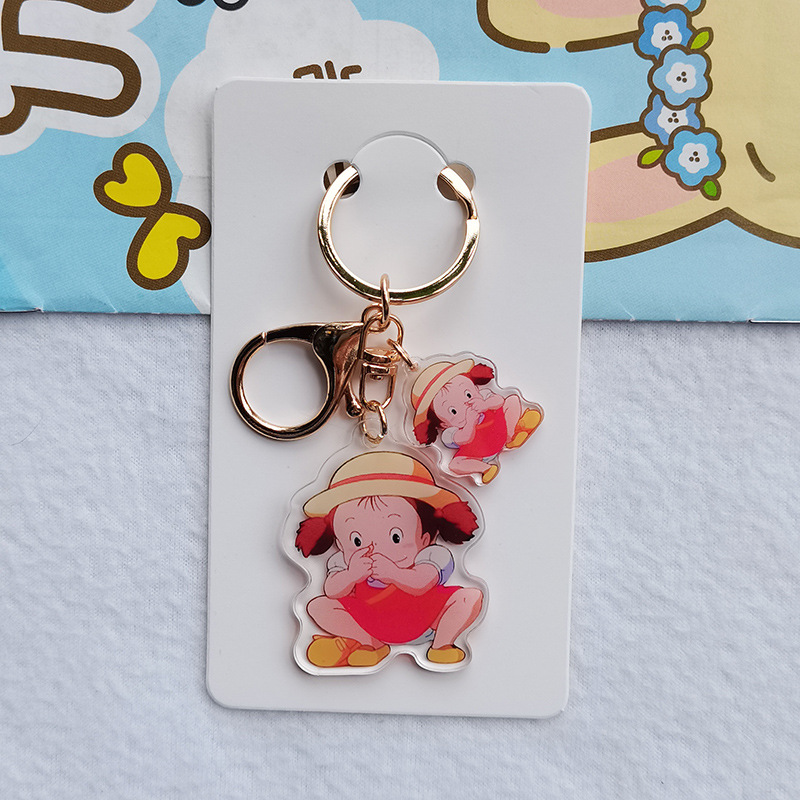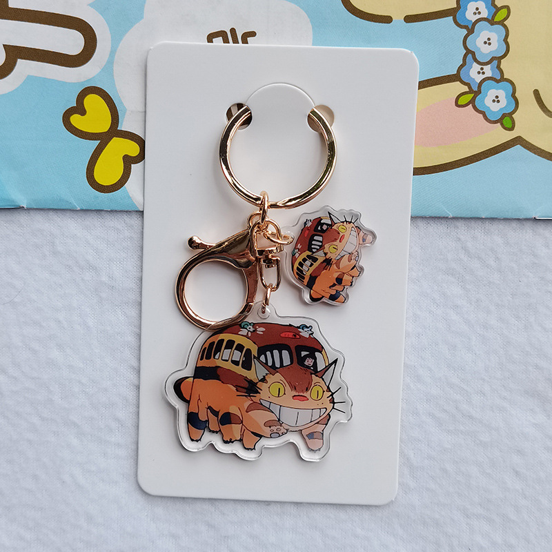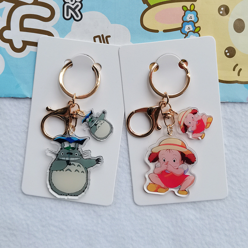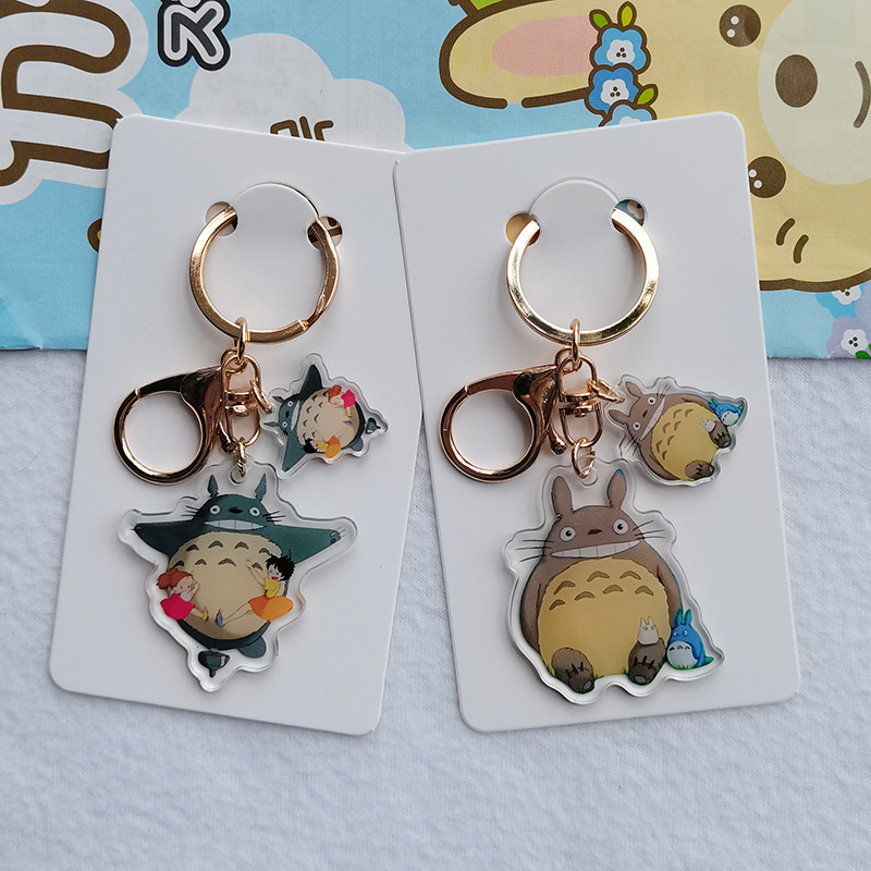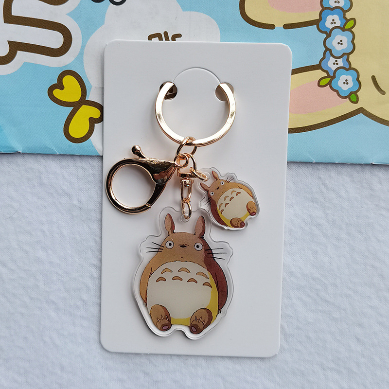 Kartun lucu hitam arang Totoro gadis kecil akrilik transparan dua sisi gantungan kunci cincin ransel liontin grosir