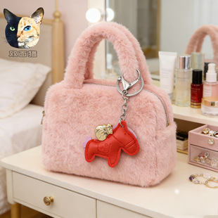 厂家现货毛绒桃心包配饰辅料豹纹毛绒爱心钥匙扣包包挂件毛球挂饰