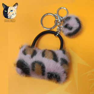 水貂毛爱心毛球钥匙扣桃心毛绒汽车挂饰豹纹情侣心形挂件厂家批发