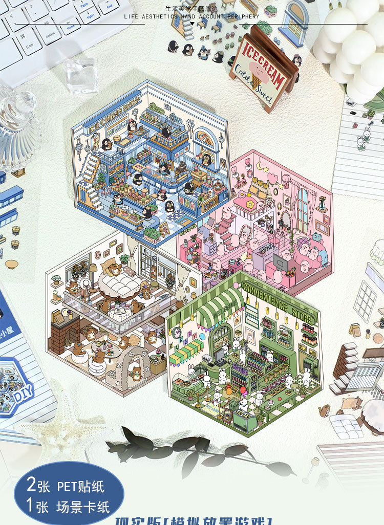 Senyou 2.0 Stiker Pemandangan Miniatur Stiker Pemenuhan Gambar Mini Stiker Buatan Tangan Stiker Buatan Tangan Sticker DIY Pemandangan 2.5D