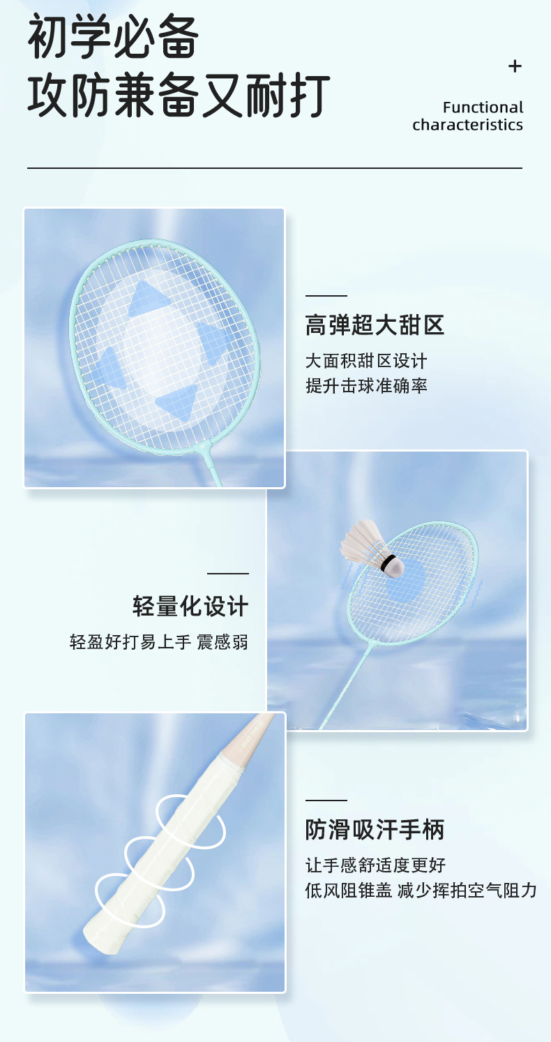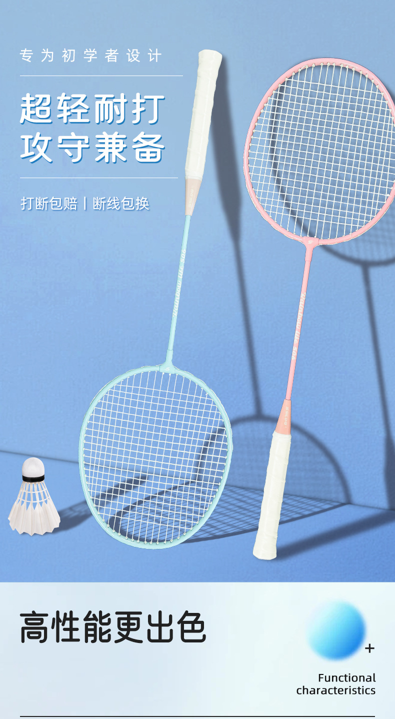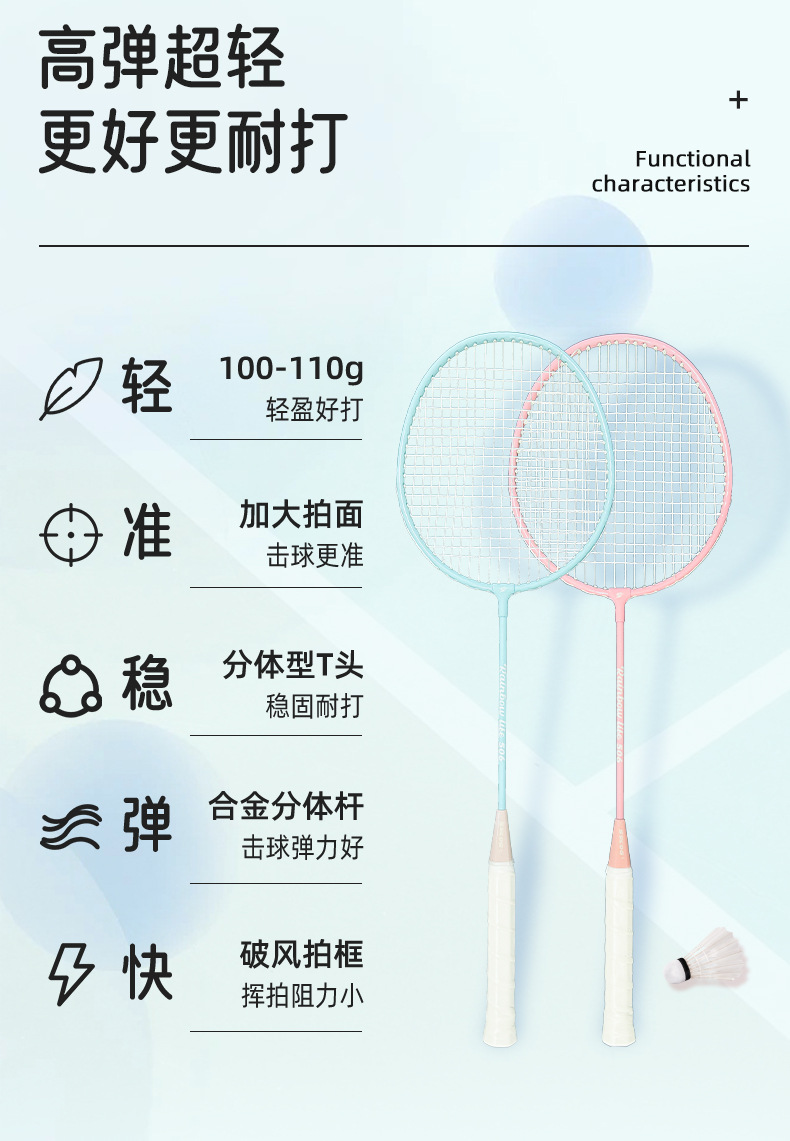 Raket bulutangkis Sailion untuk pemula, raket serangan dan pertahanan serba guna, set raket bulutangkis latihan olahraga pria dan wanita dewasa, raket lurus