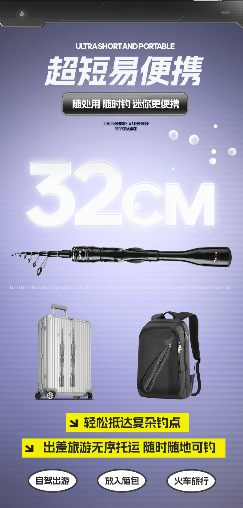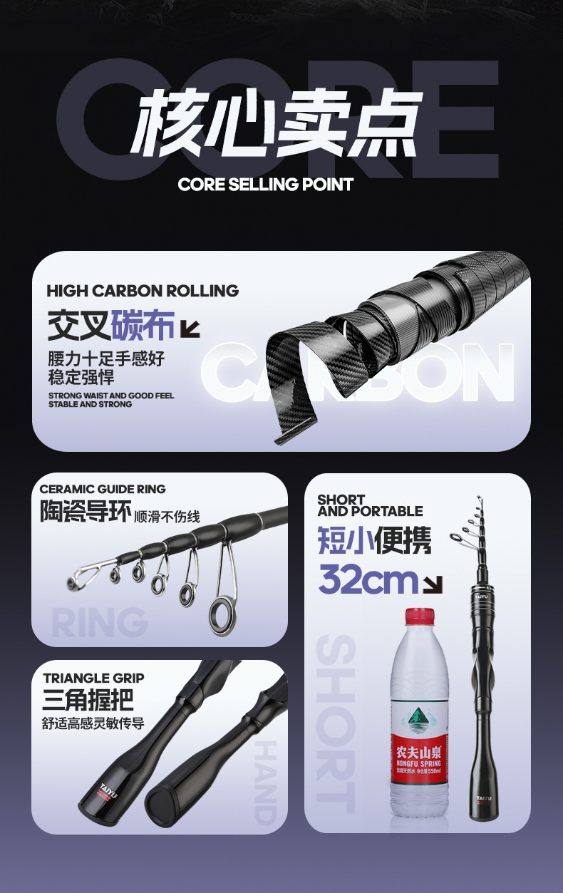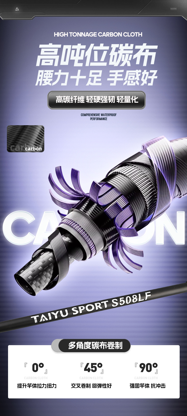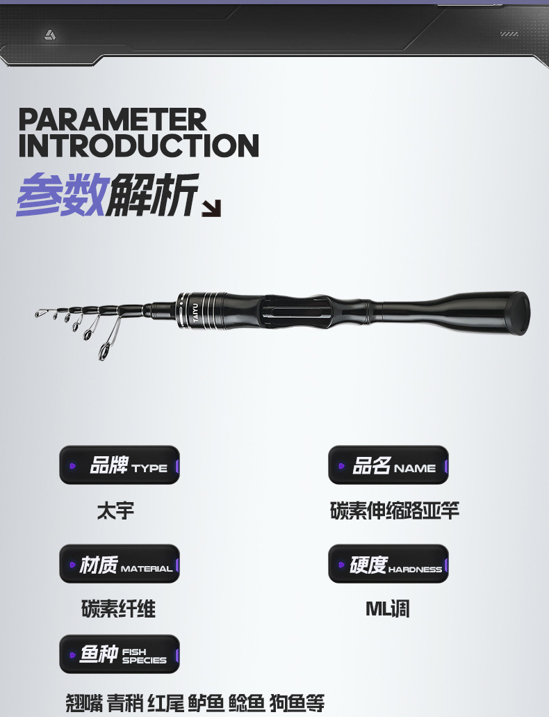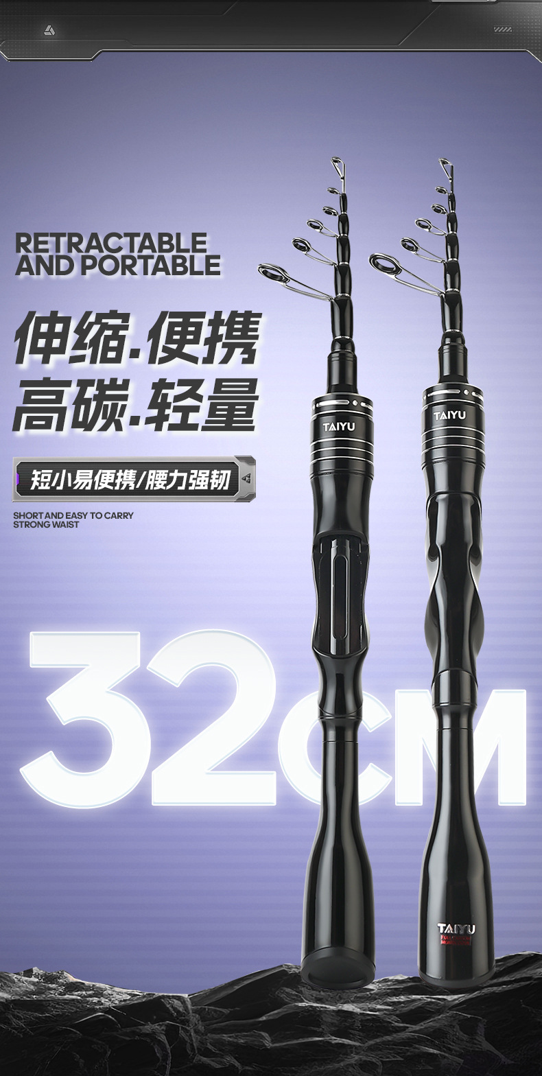 Joran pancing teleskopik Taiyu, serat karbon LF soft-tuned ultra-ringan portabel, grosir.
