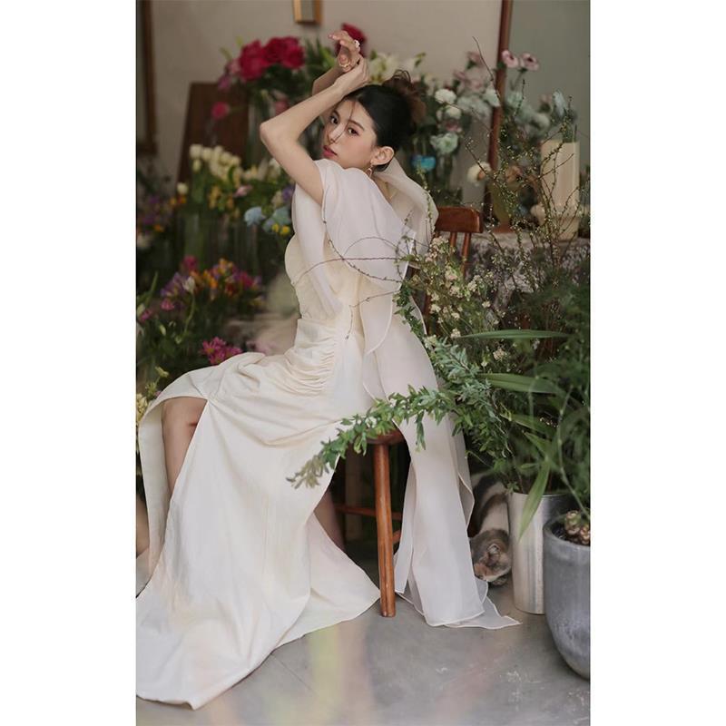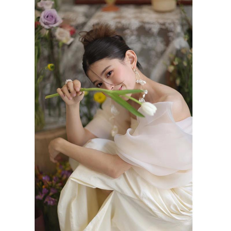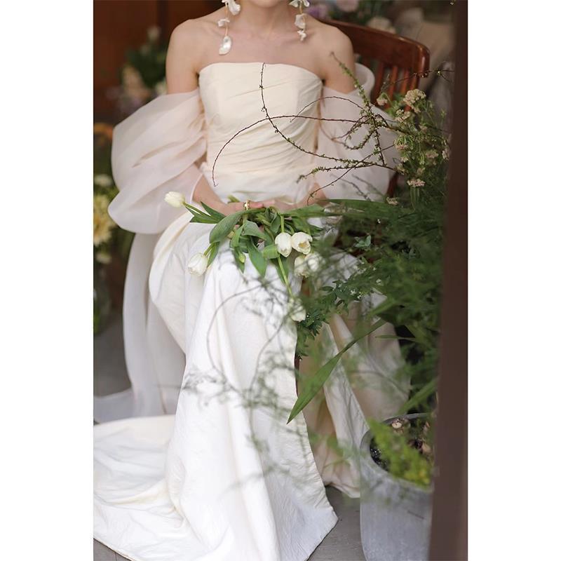 Kerudung pengantin ringan bergaya Prancis 2025 untuk fotografi perjalanan luar ruangan, gaun kerudung ringan mewah, kerudung selamat datang, jubah pagi.