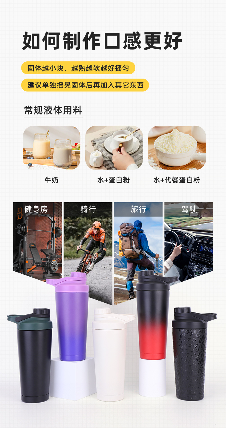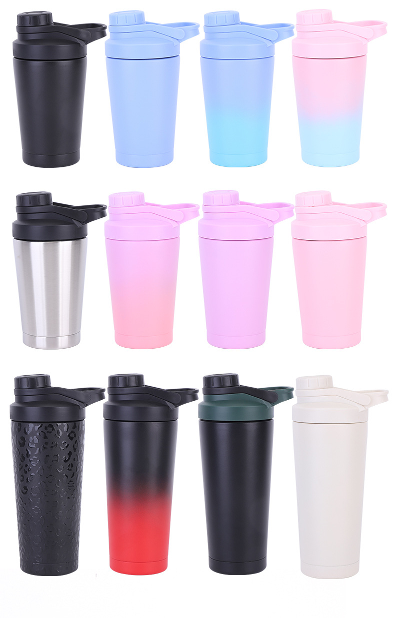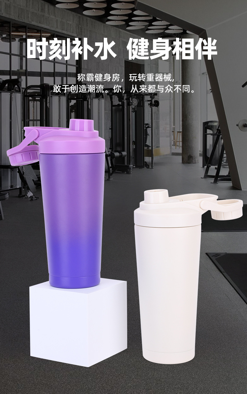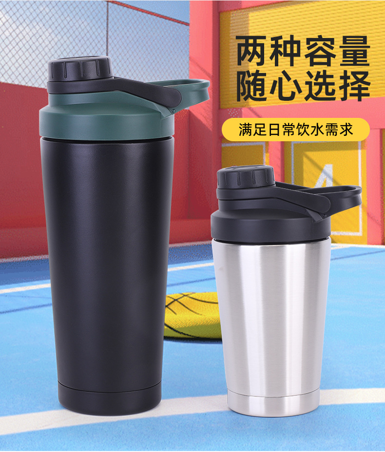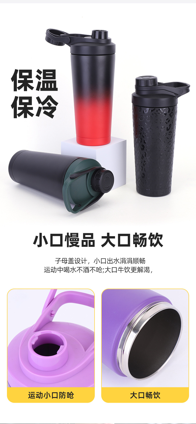 Botol minum olahraga stainless steel berlapis ganda 25oz, shaker protein fitness, portabel, dengan tutup flip-top untuk mencampur.