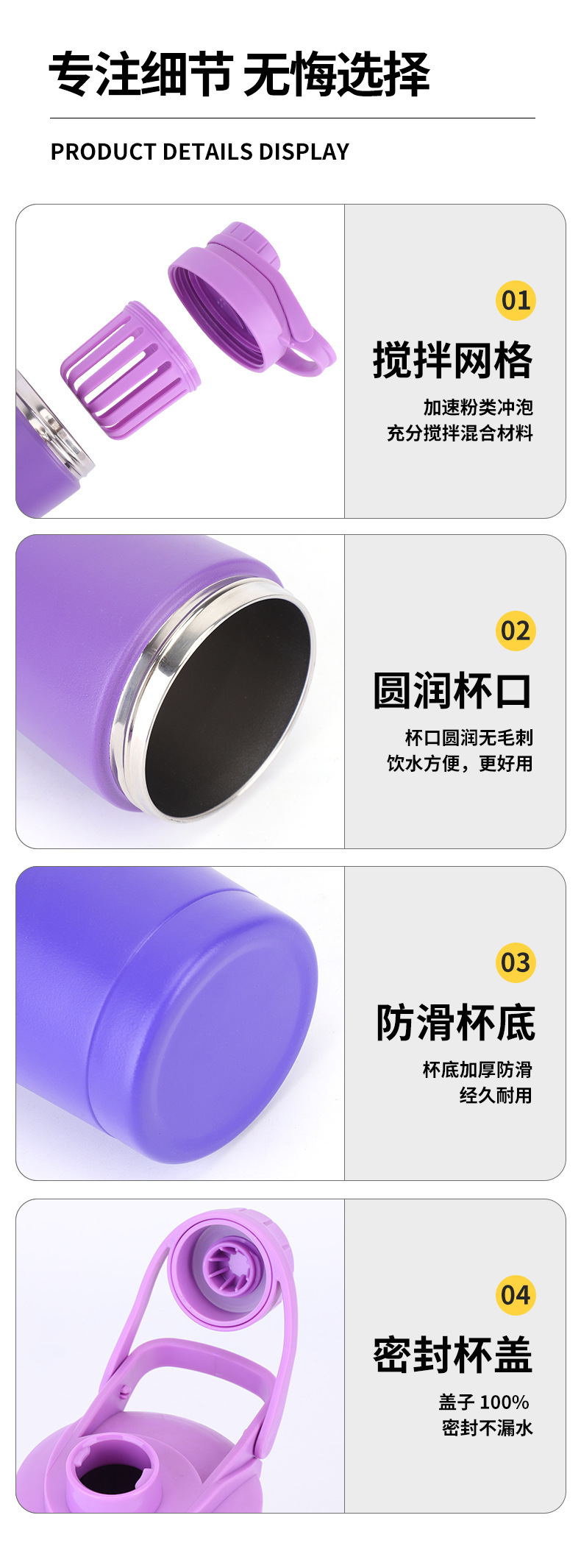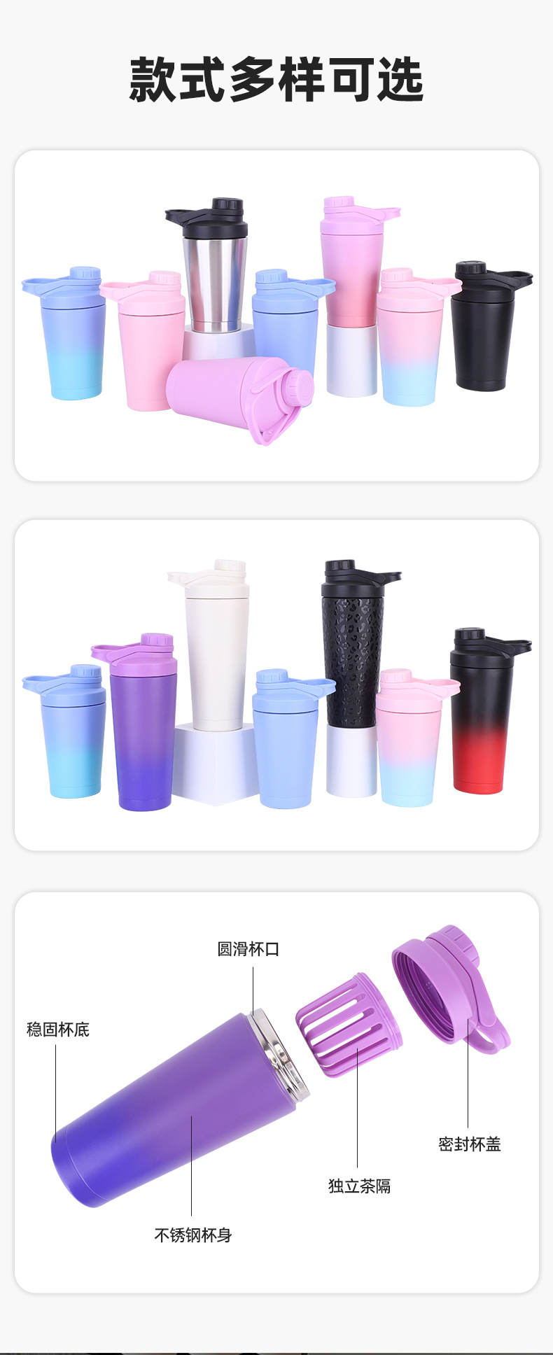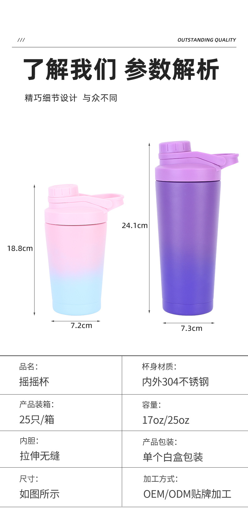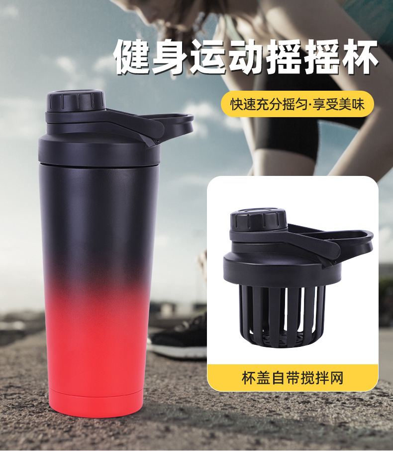 Botol minum olahraga stainless steel berlapis ganda 25oz, shaker protein fitness, portabel, dengan tutup flip-top untuk mencampur.