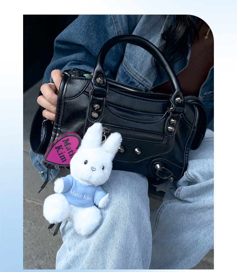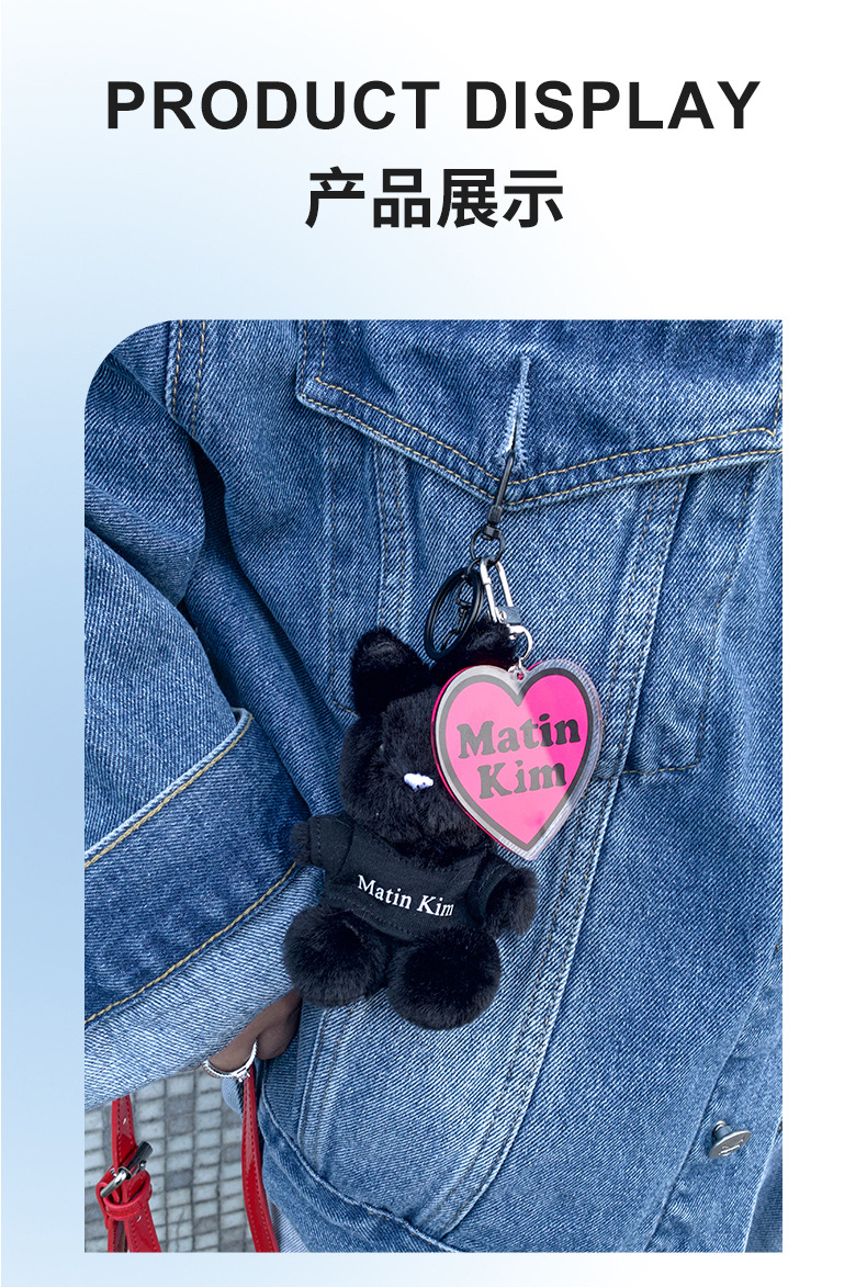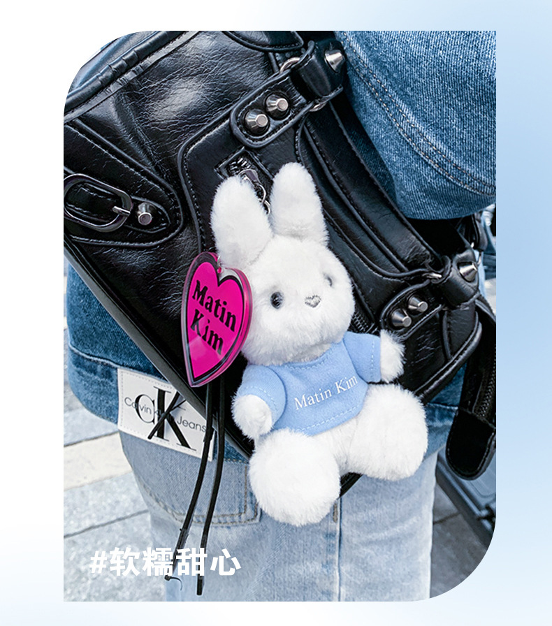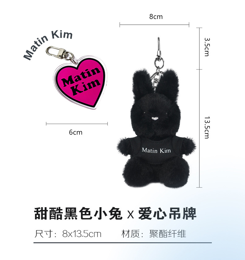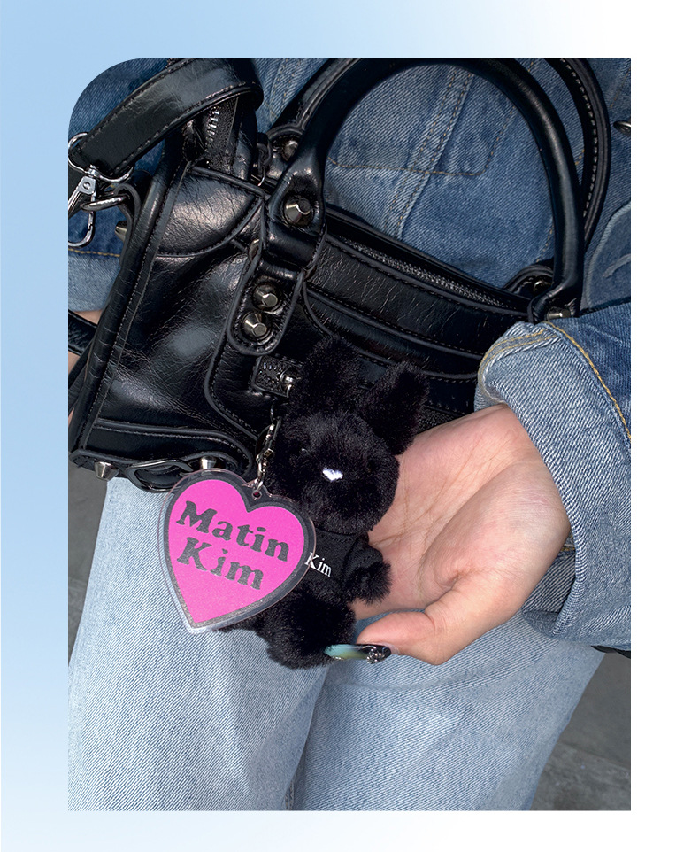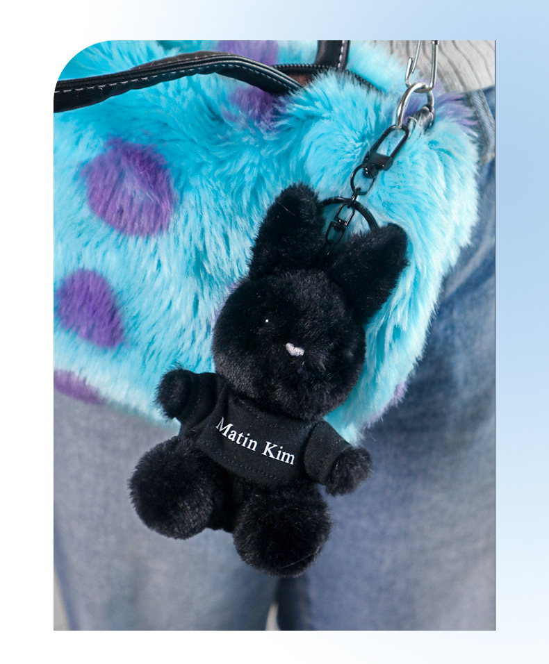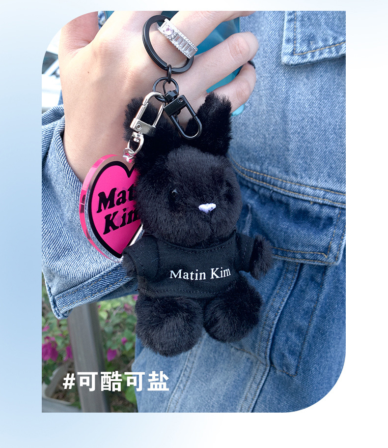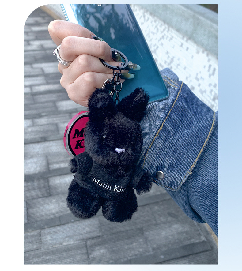 Matinkim liontin kelinci hitam gantungan kunci lucu hati boneka mewah liontin sabuk tas ponsel