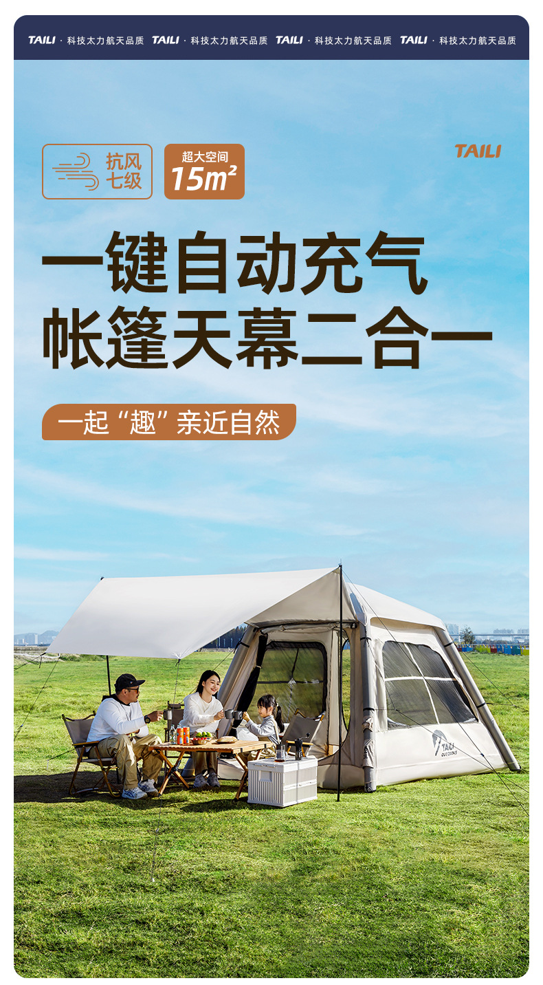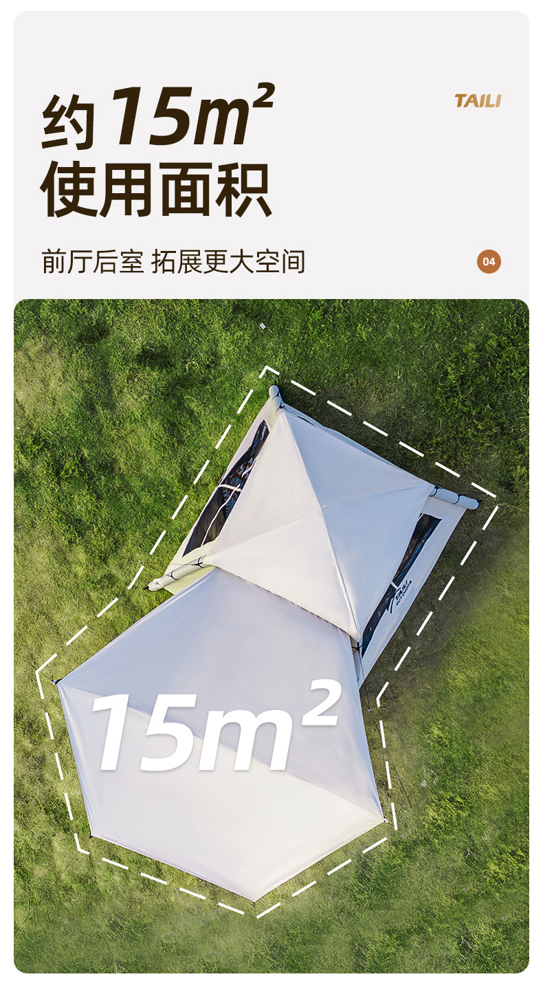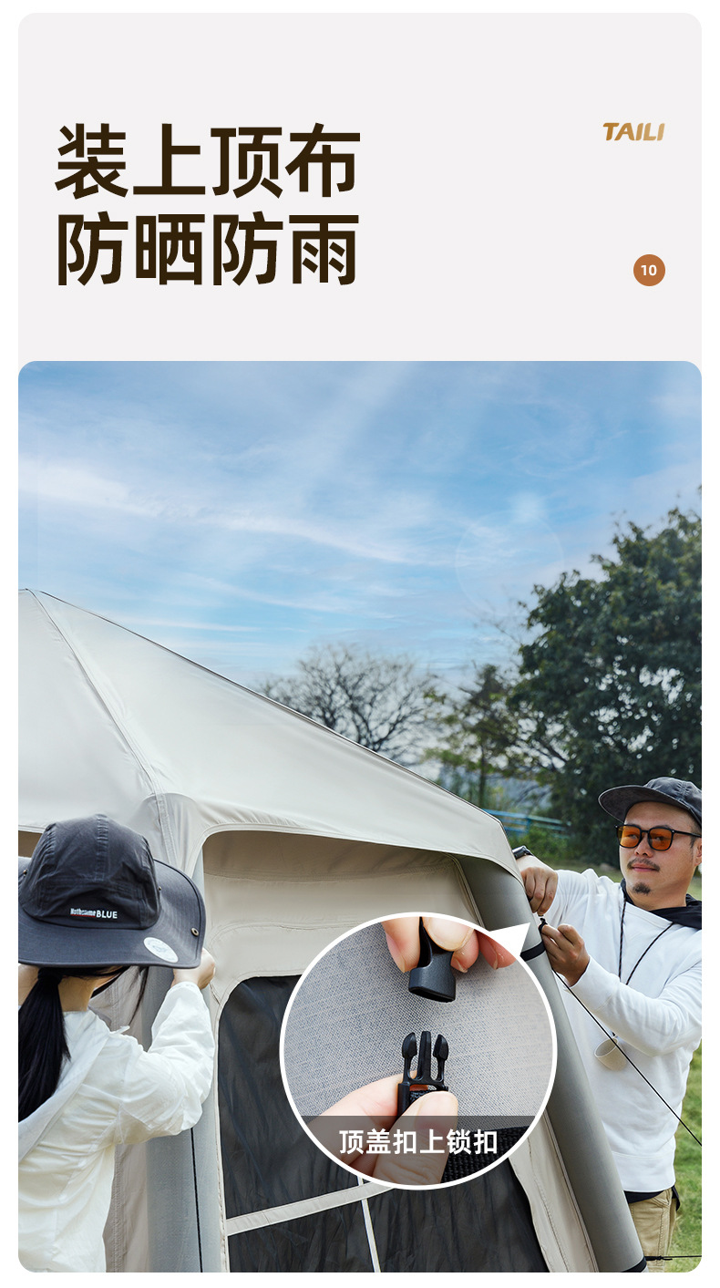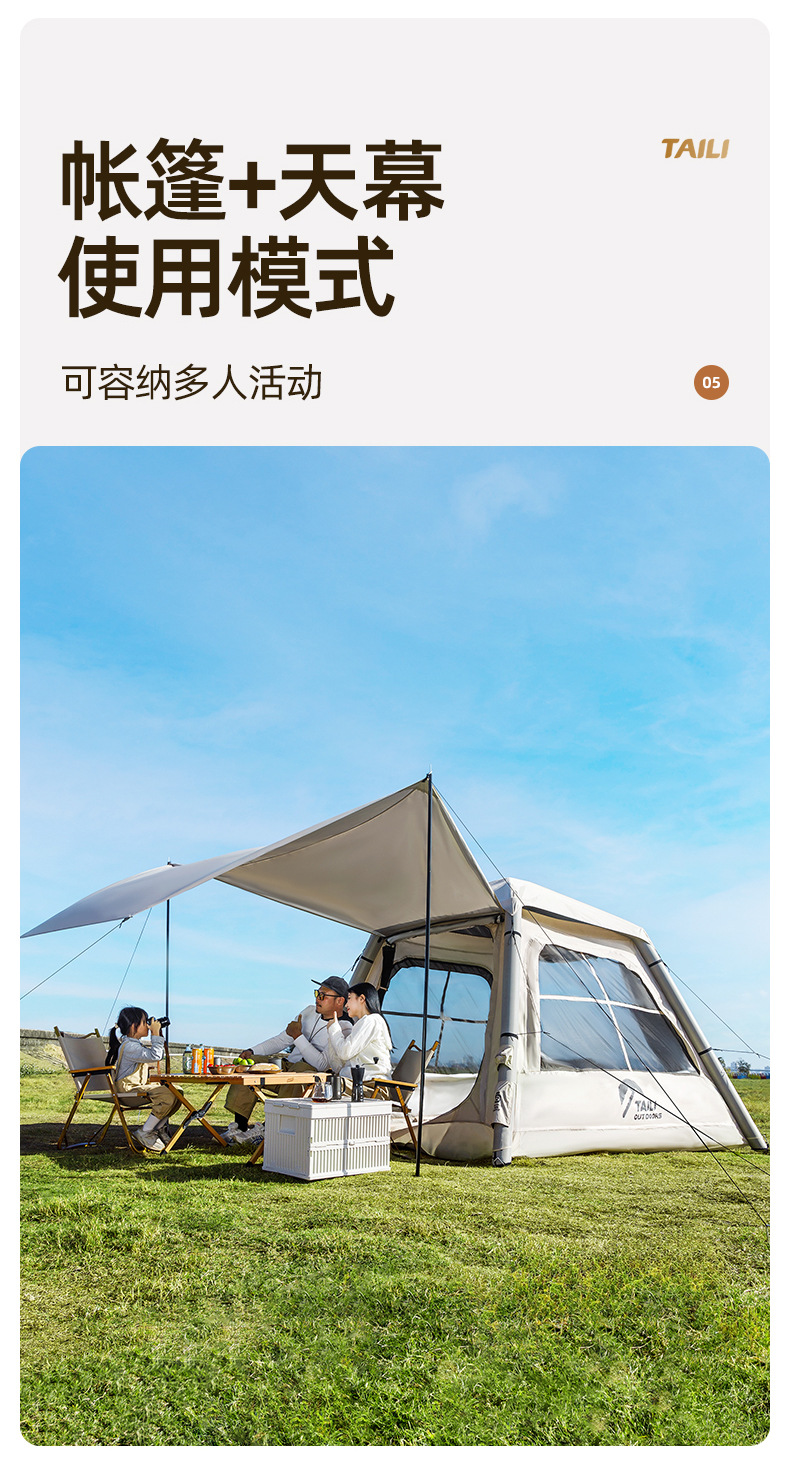 Taili tenda tiup berkemah luar ruangan, peralatan berkemah kabin tanpa tulang portabel tebal tahan hujan cepat dibuka