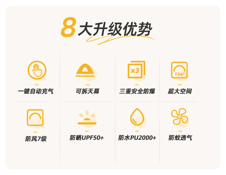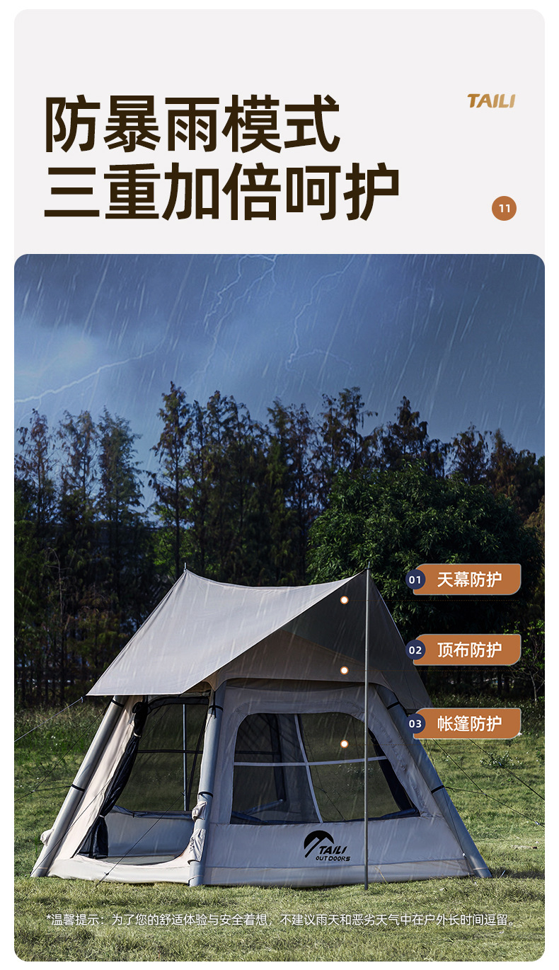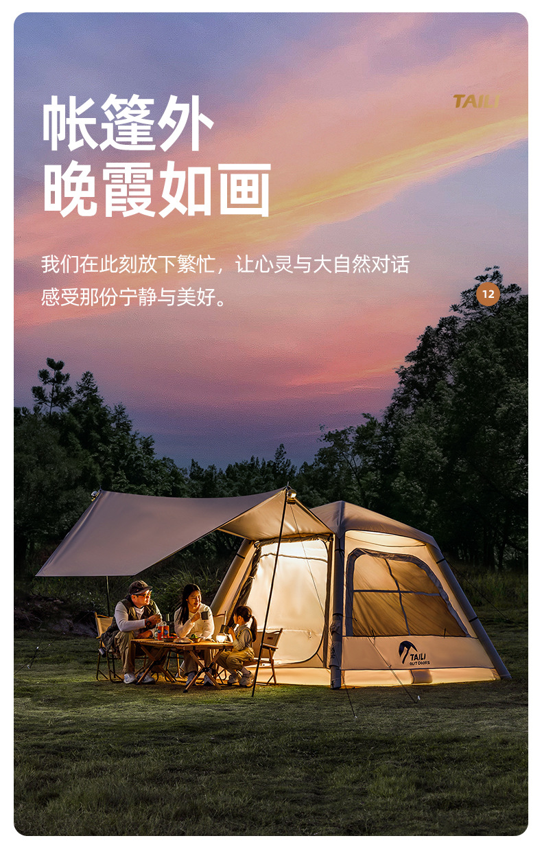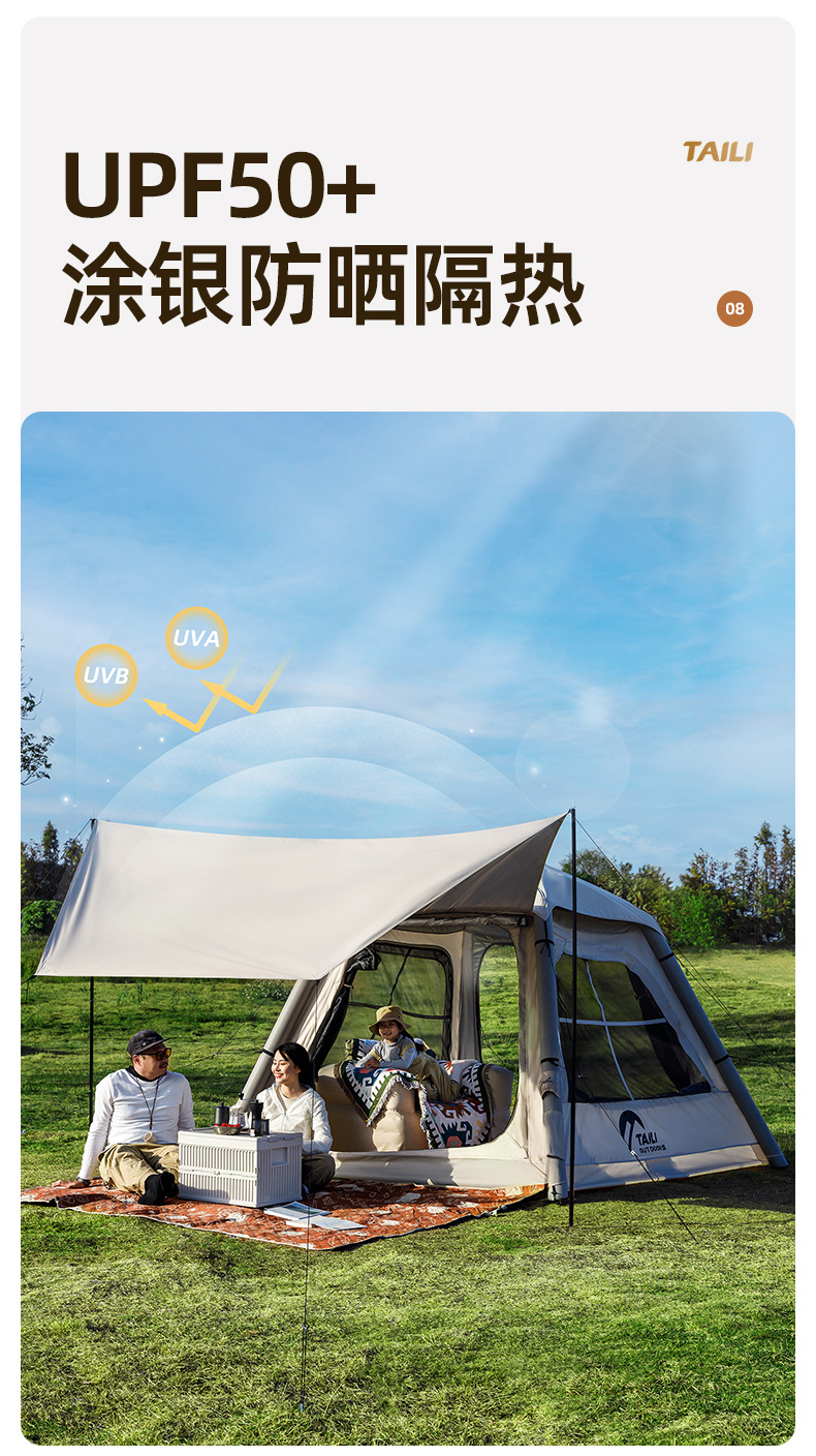 Taili tenda tiup berkemah luar ruangan, peralatan berkemah kabin tanpa tulang portabel tebal tahan hujan cepat dibuka