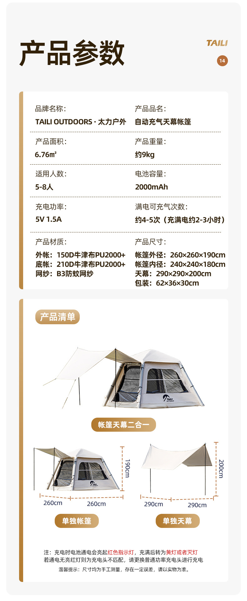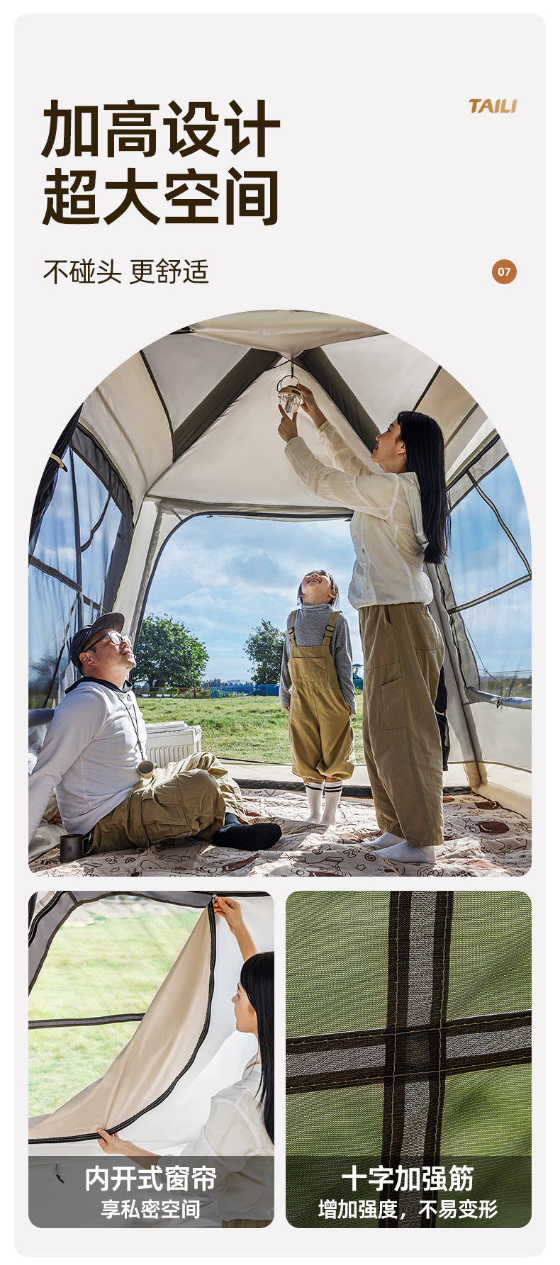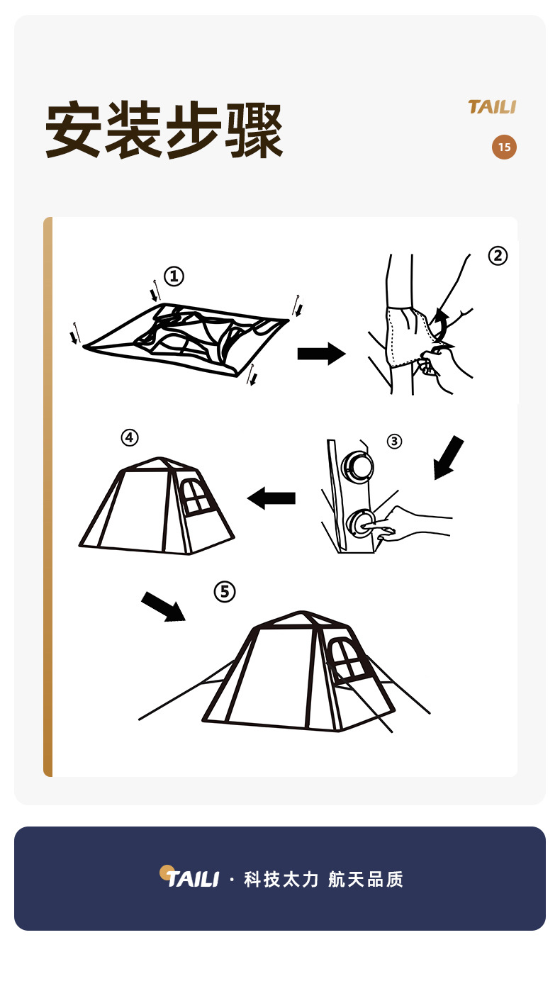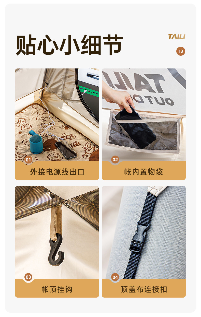 Taili tenda tiup berkemah luar ruangan, peralatan berkemah kabin tanpa tulang portabel tebal tahan hujan cepat dibuka