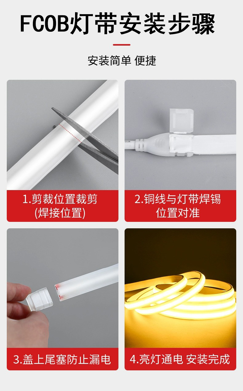 Strip lampu LED silikon langit-langit rumah tangga, strip lampu LED merekat sendiri ultra-tipis lampu linier 220V tahan air super terang cahaya lembut COB
