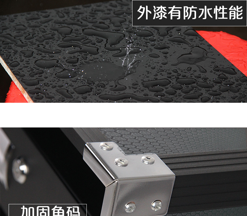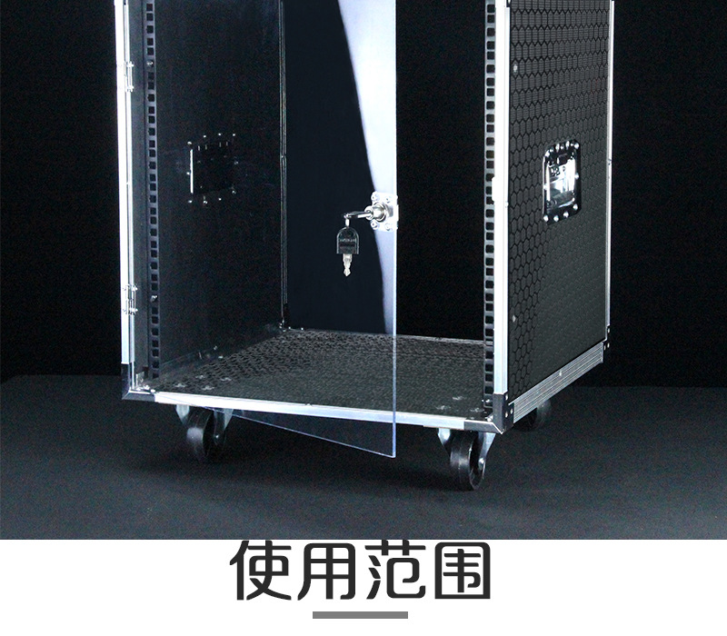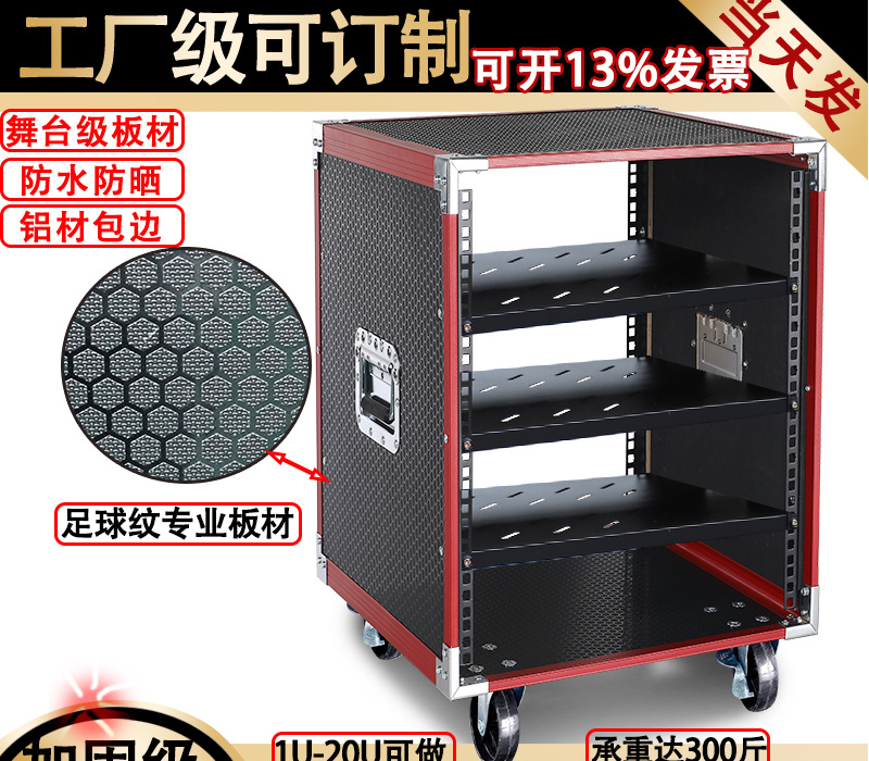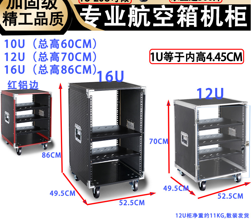 Kabinet amplifier 16U untuk penggunaan di rumah, flight case 10U untuk peralatan audio, rak mobile outdoor 12U dengan penguatan tepi merah.