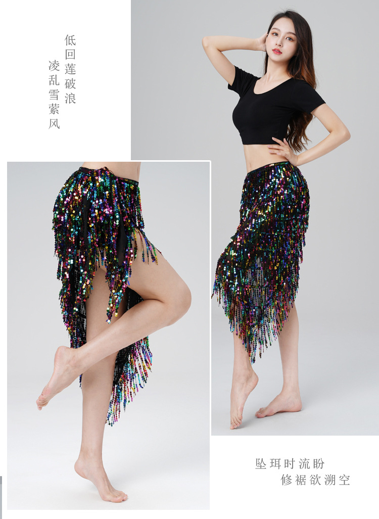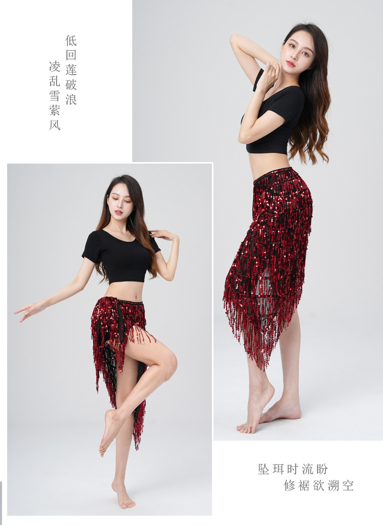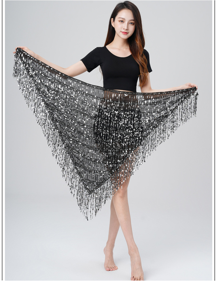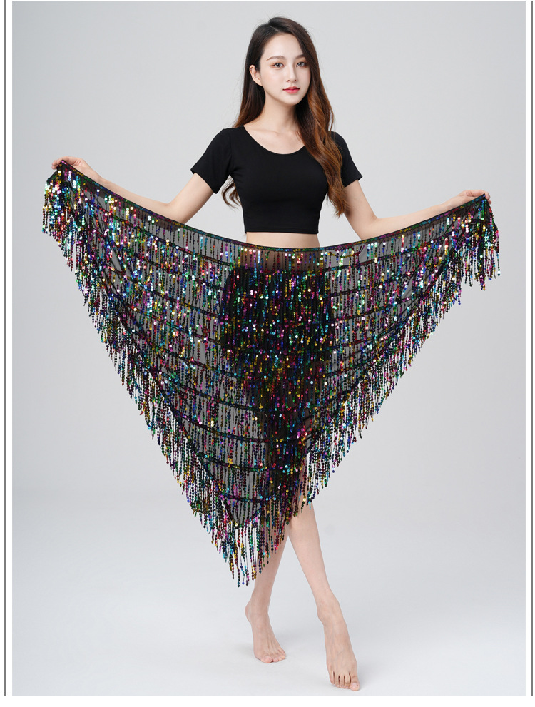 Belly dance pakaian latihan baru tari India pakaian pertunjukan syal segitiga berpayet rantai pinggang pakaian pentas seksi wanita