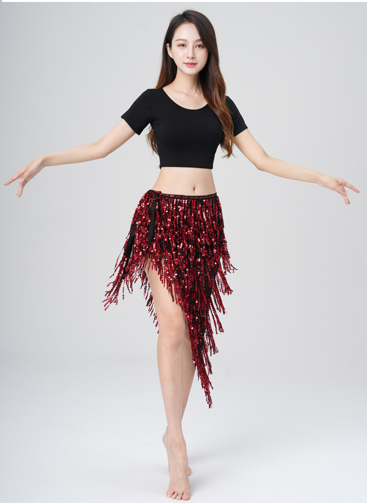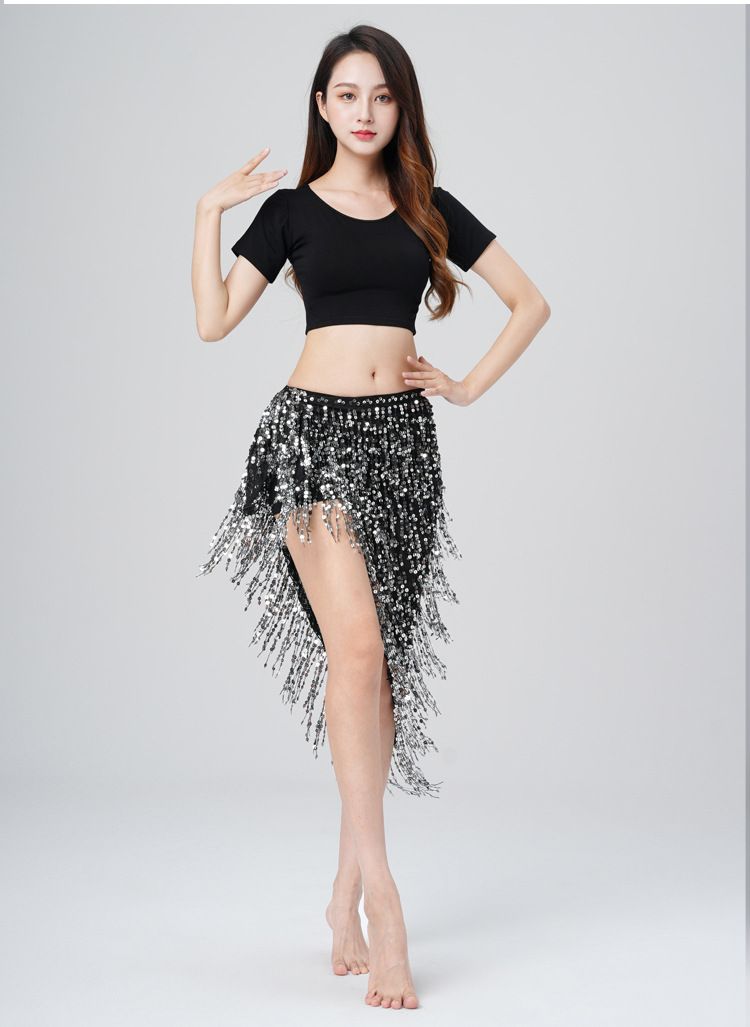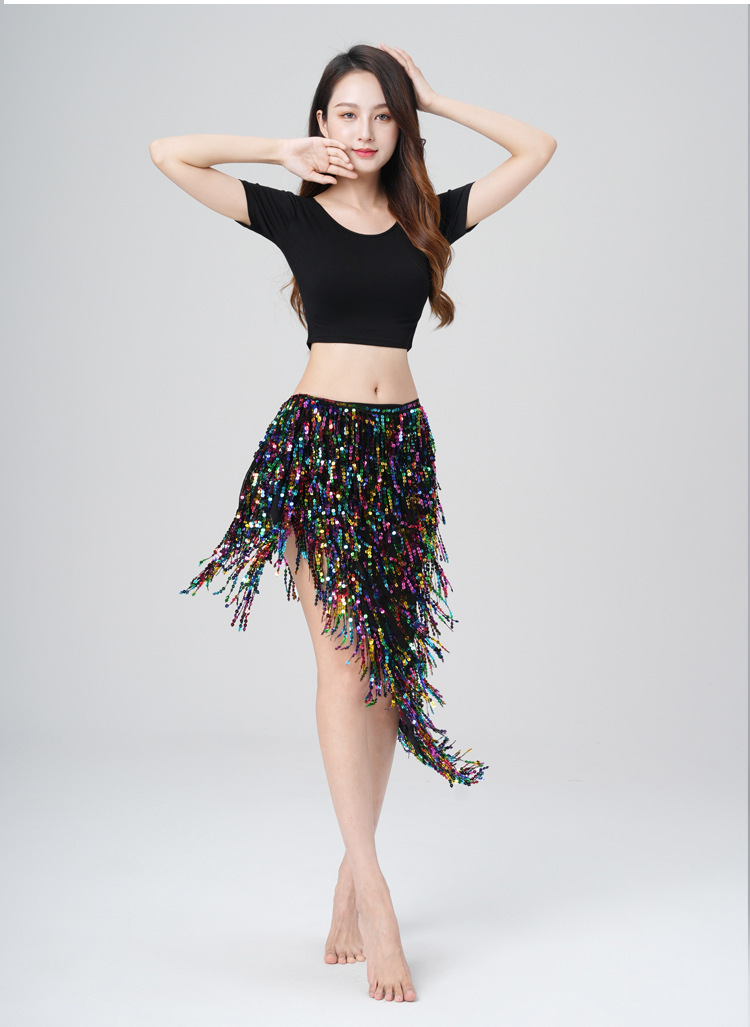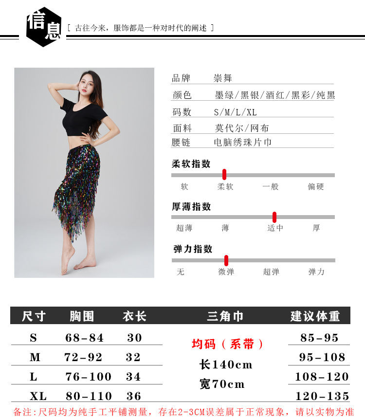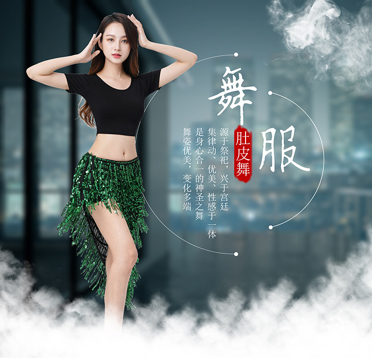 Belly dance pakaian latihan baru tari India pakaian pertunjukan syal segitiga berpayet rantai pinggang pakaian pentas seksi wanita