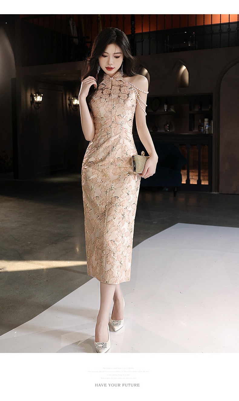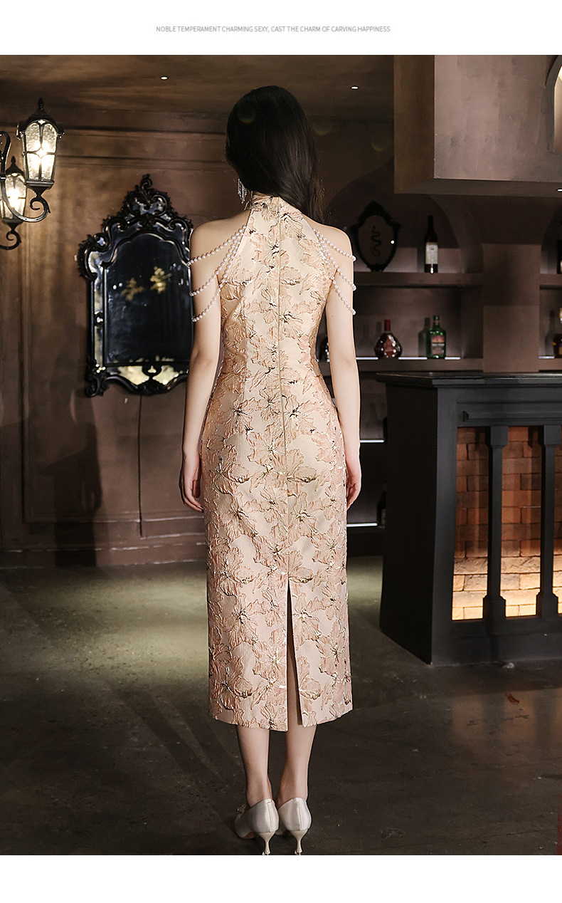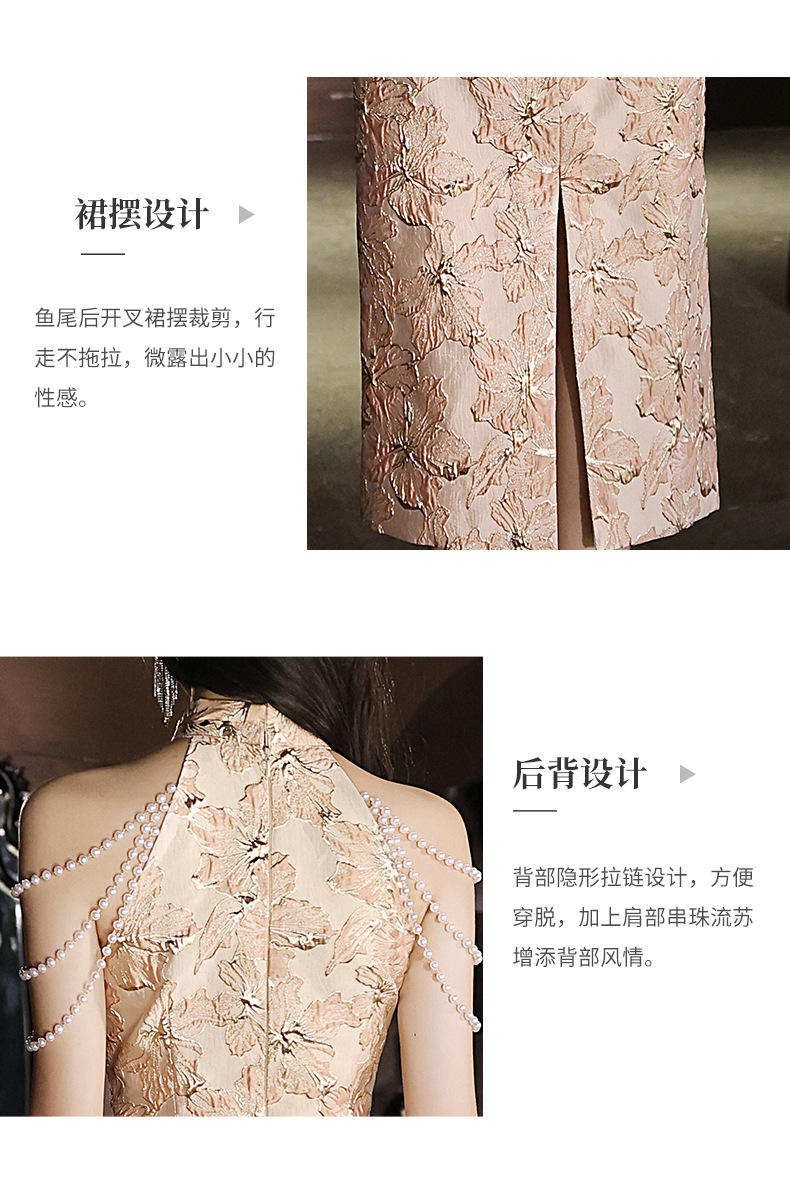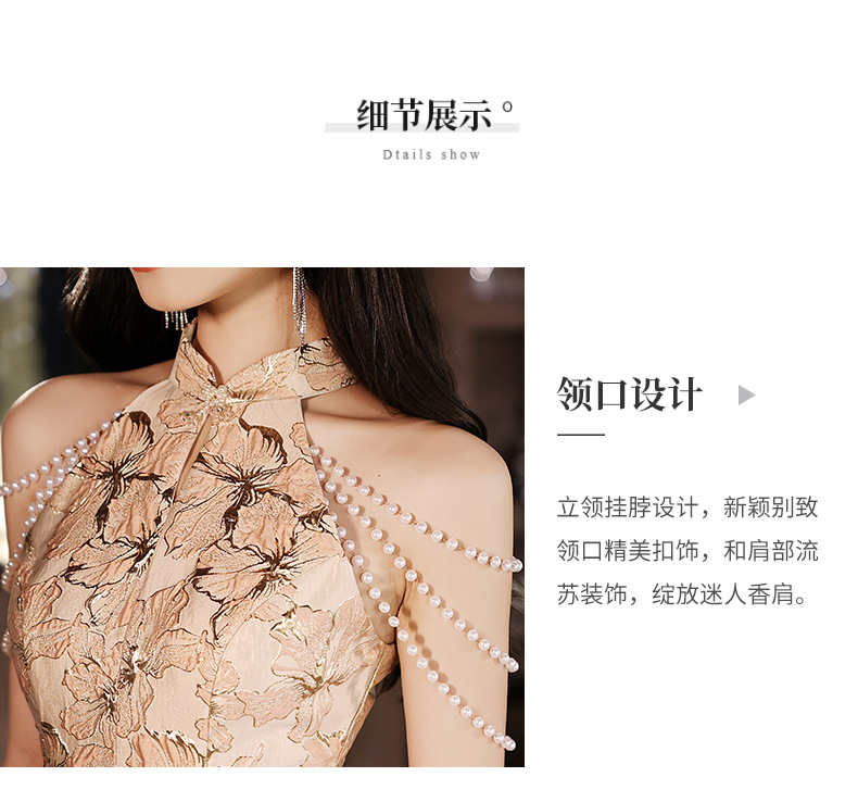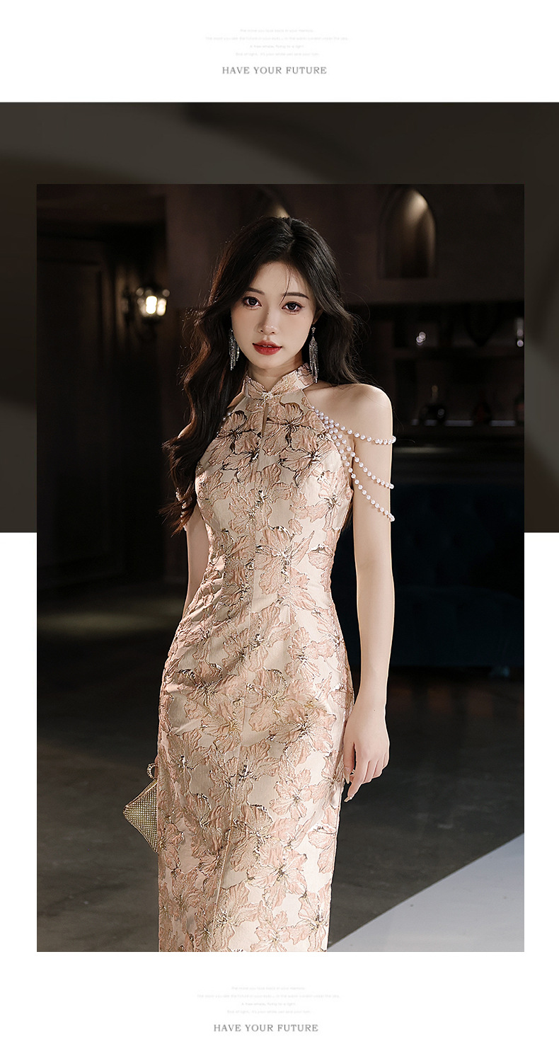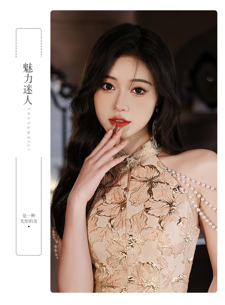 Gaun pesta malam untuk wanita 2026 gaya baru elegan, model halter neck, sosialita, gaya Cina baru, gaun cheongsam untuk acara pertunangan