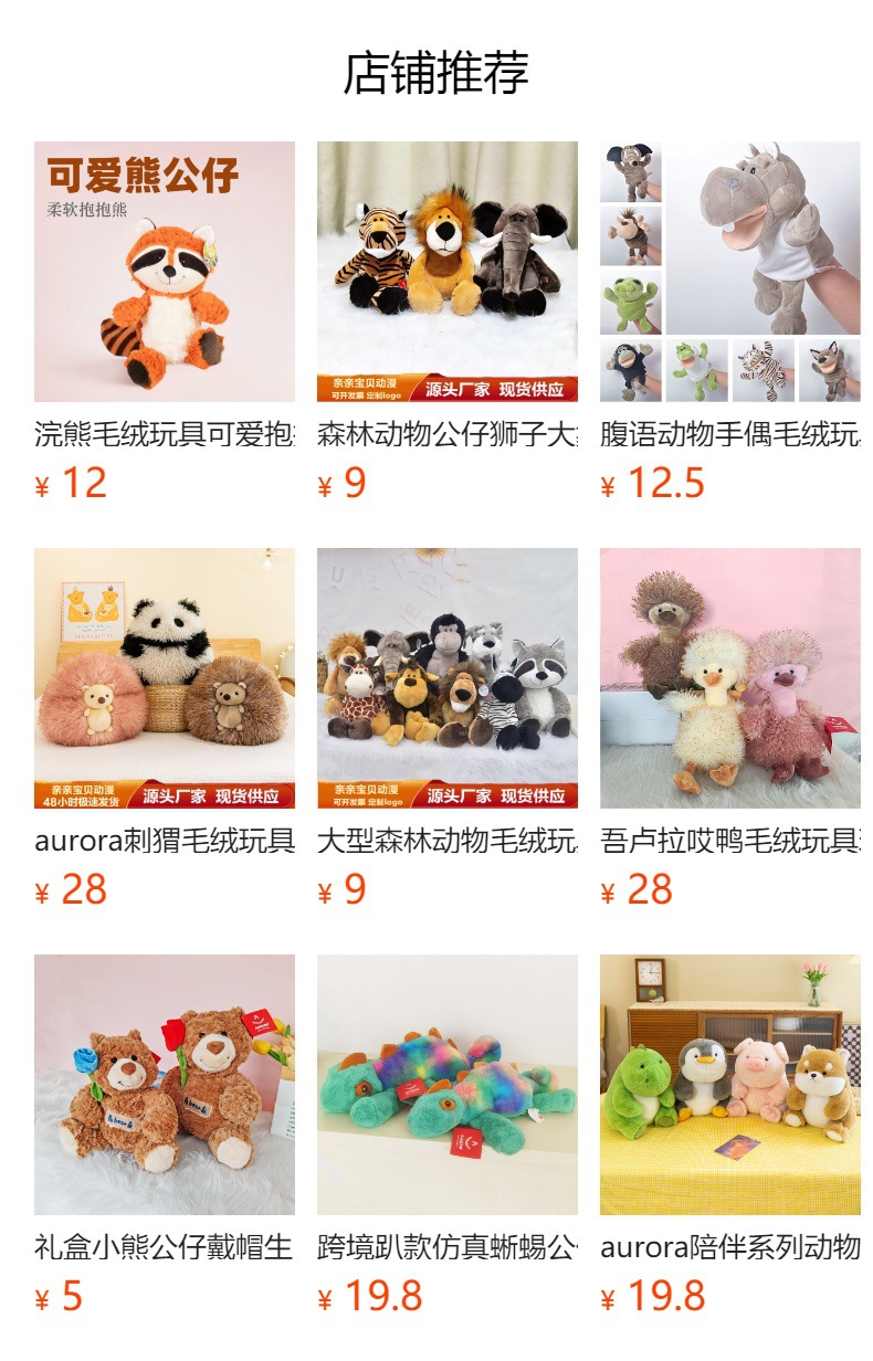 Boneka beruang Aurora yang lembut, boneka rakun, bantal tidur, boneka rubah, mainan mewah lintas batas