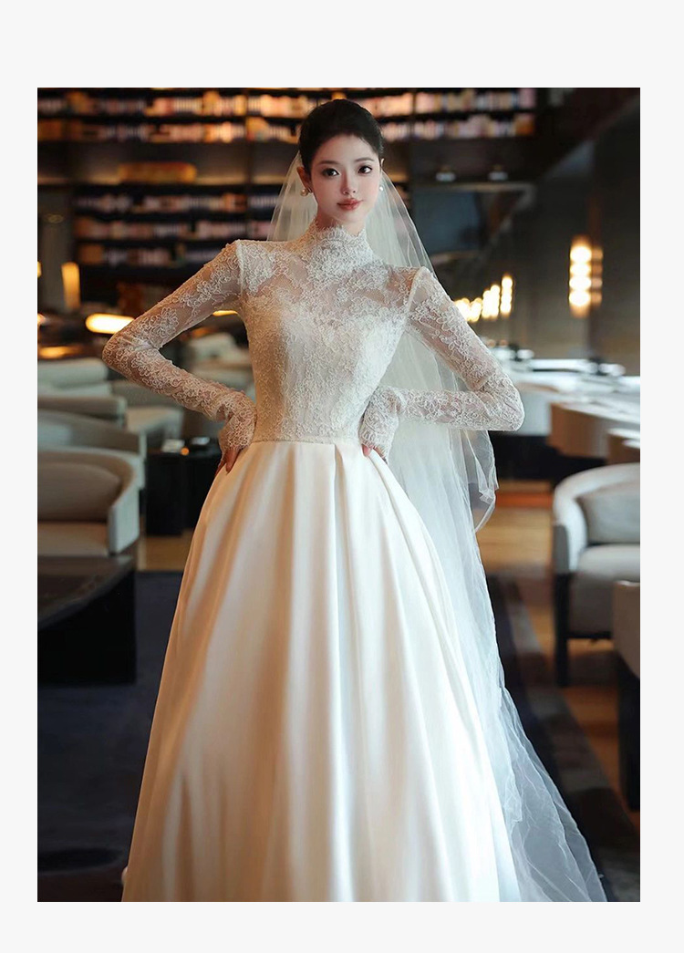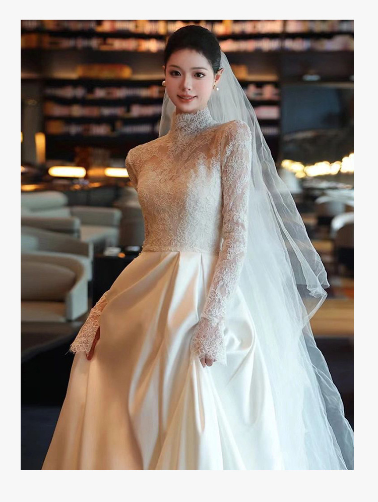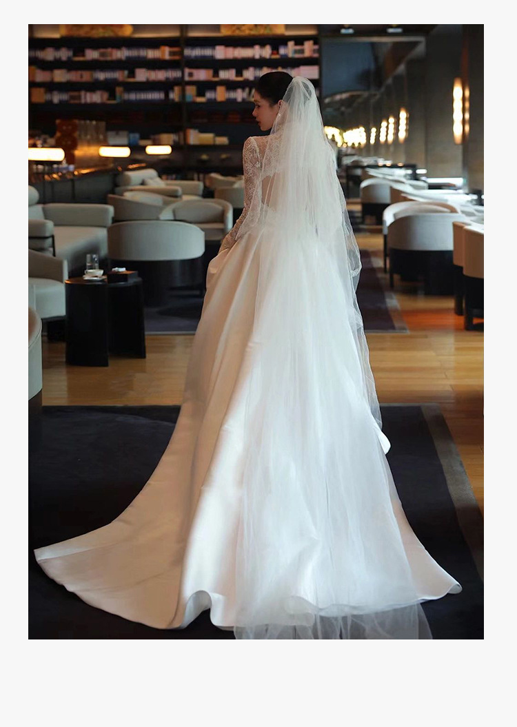 Gaun pernikahan utama gaya Perancis gaun panjang renda niche mewah ringan elegan benang luar ruangan pengantin musim semi gaun selamat datang