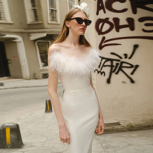 041AA gaun wanita gaya jalanan mode ketat seksi deep V bulu burung unta baru musim gugur Perdagangan Luar Negeri Eropa dan Amerika