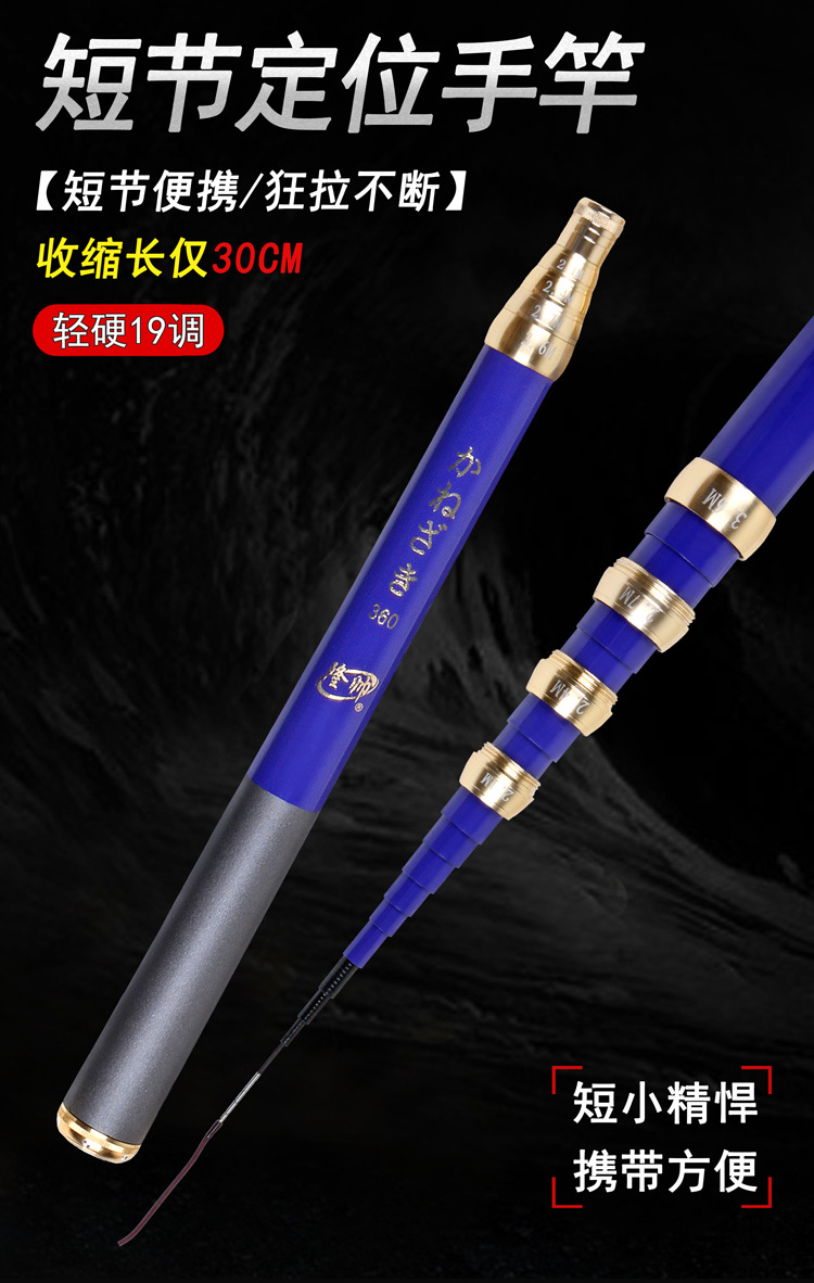 Joran pancing karbon tinggi, tongkat pemosisian bagian pendek, ultra pendek untuk memancing di sungai, portabel, 35cm