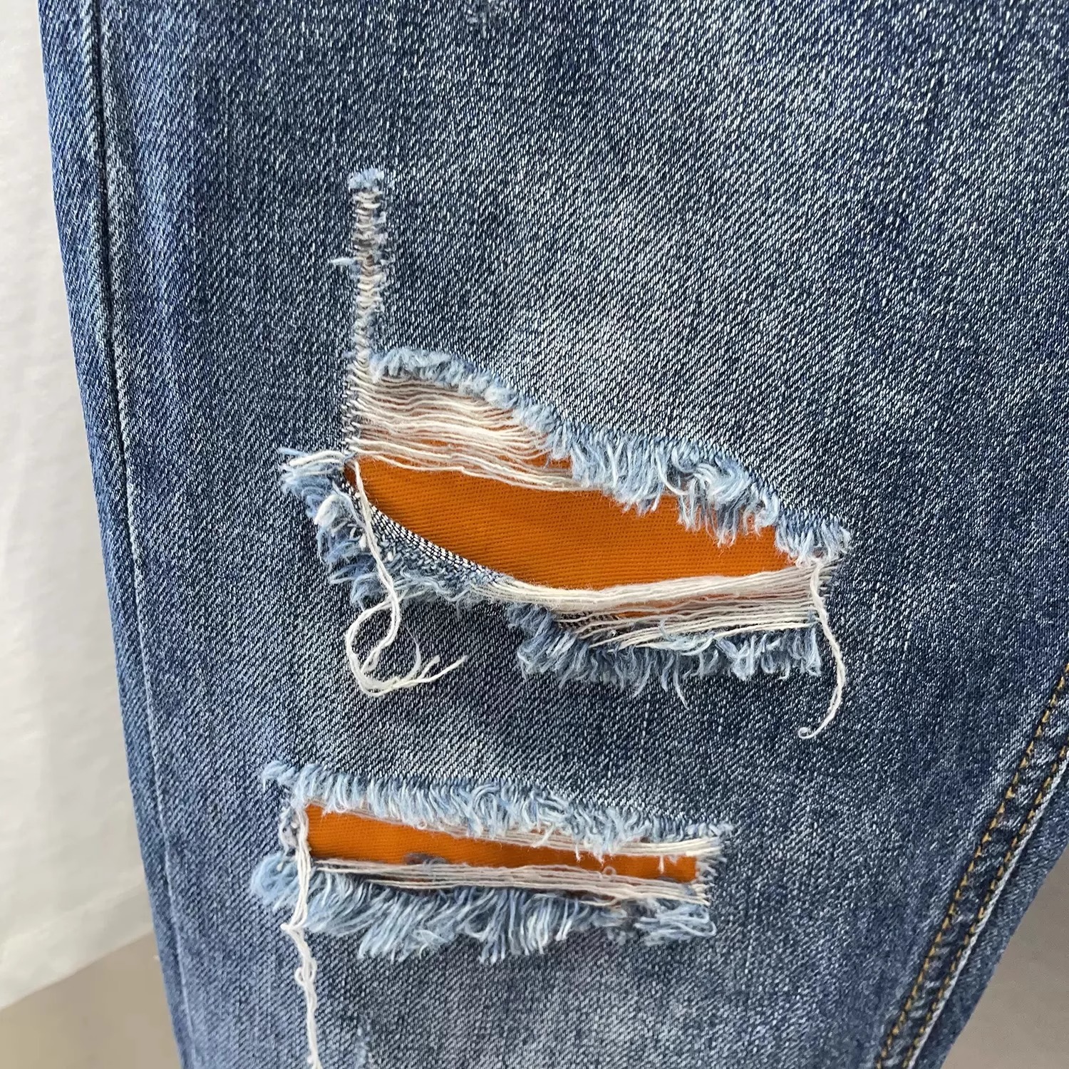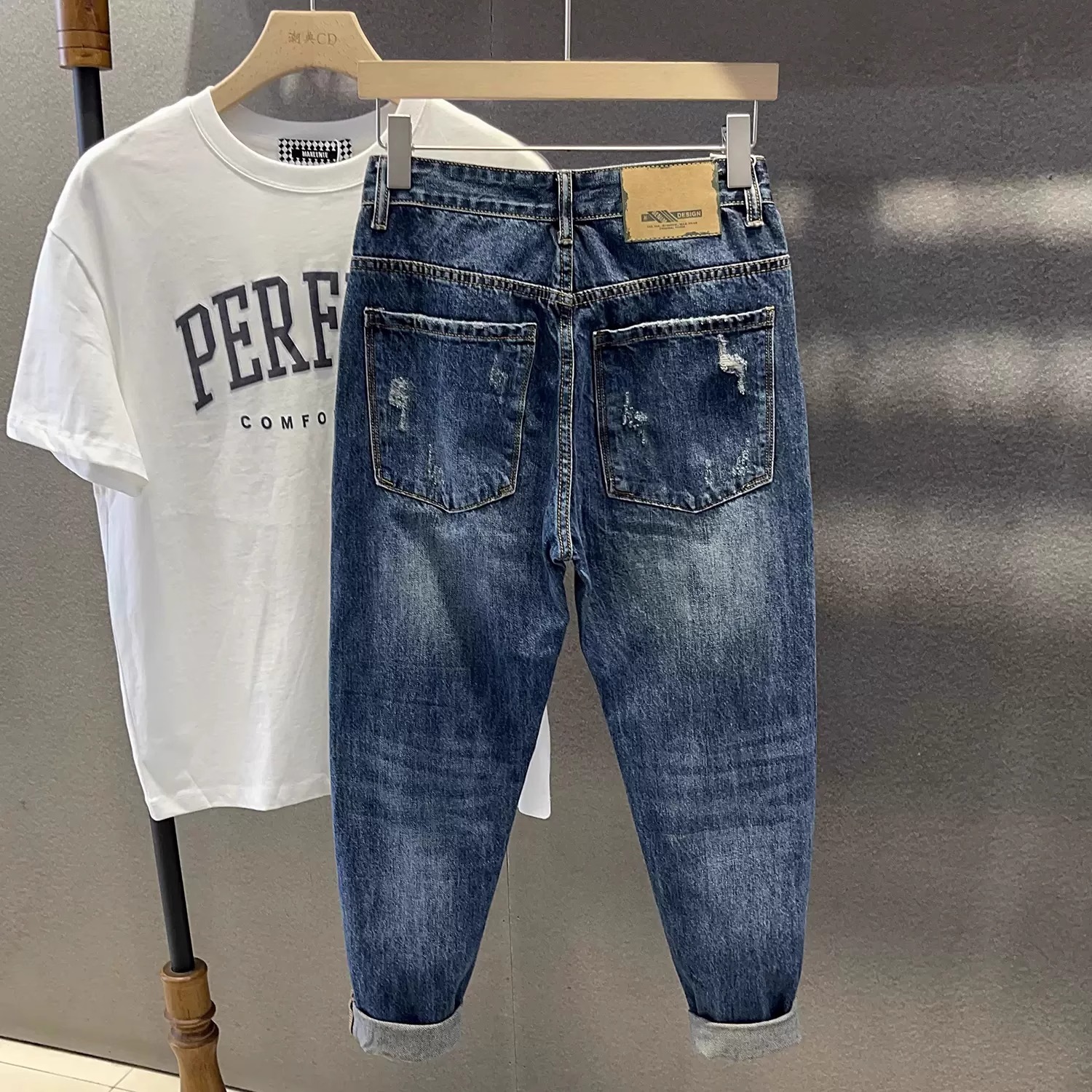 Celana jins ketat pria, celana jins ketat pria, celana pria trendi, celana pengemis, celana pria musim semi dan musim gugur