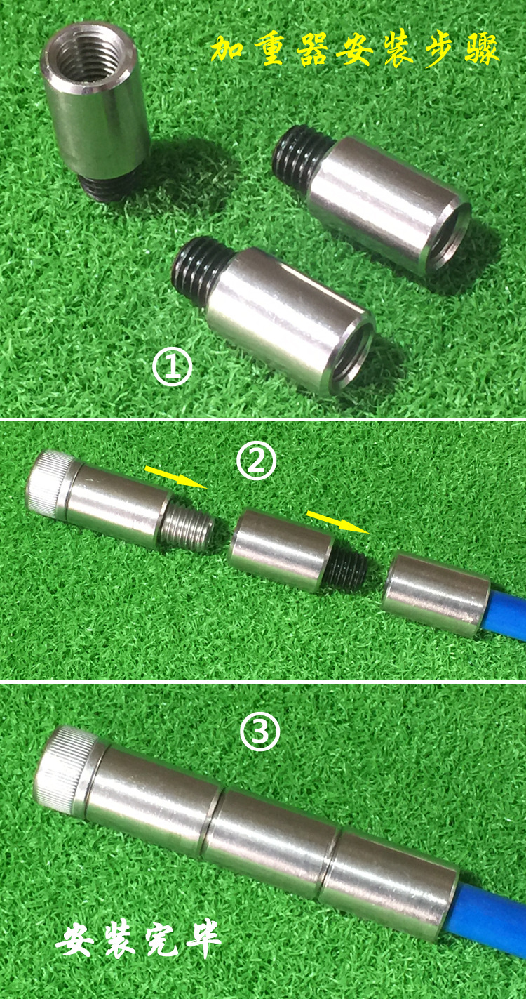 不锈钢加重器:可以根据需要节节加长加重,每增加一节长度加长3cm,重量加重70g
