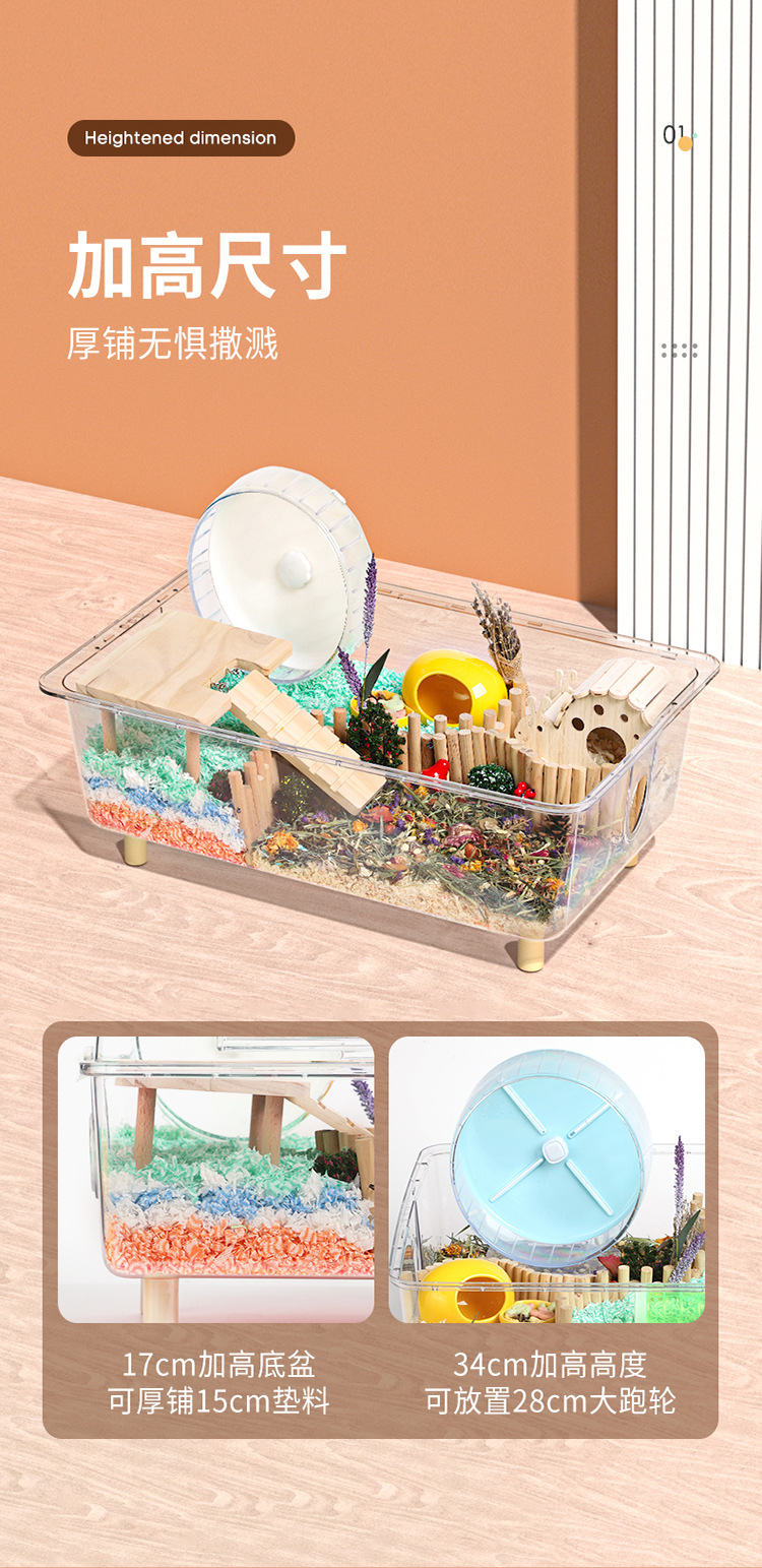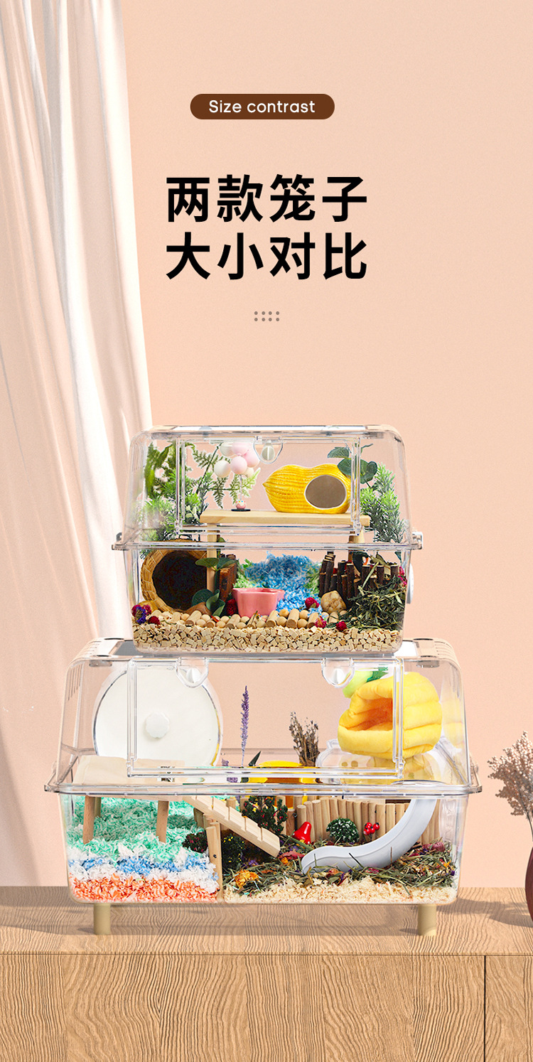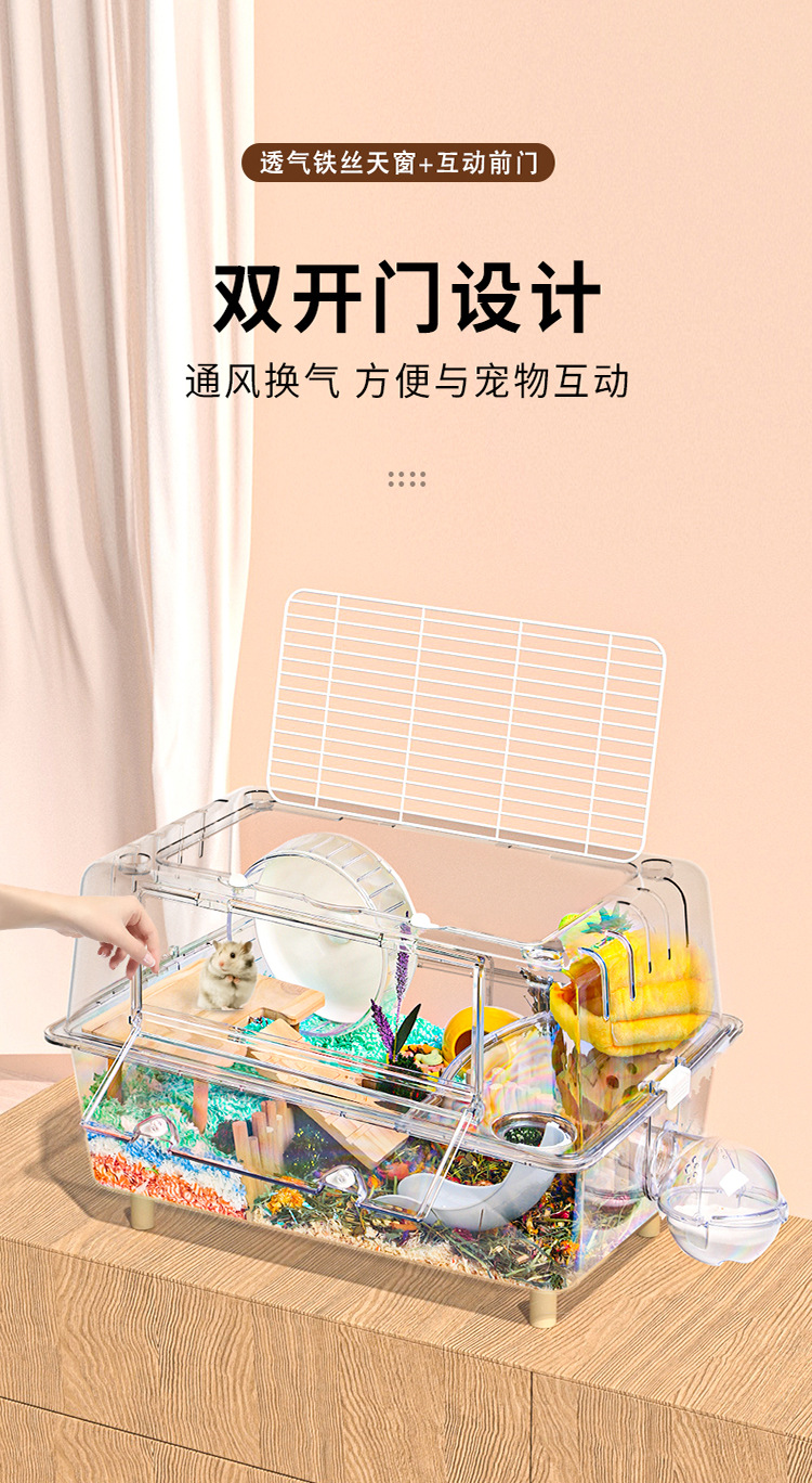 Kandang Hamster akrilik transparan berukuran besar villa 62 kandang dasar kristal kotak makan beruang emas grosir