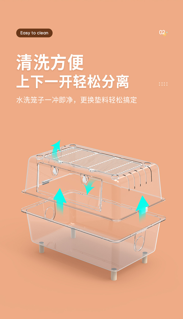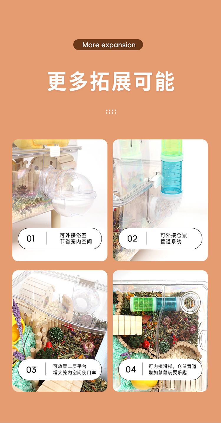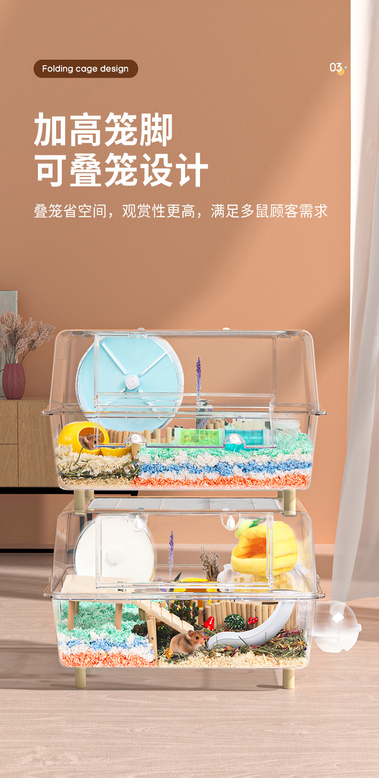 Kandang Hamster akrilik transparan berukuran besar villa 62 kandang dasar kristal kotak makan beruang emas grosir