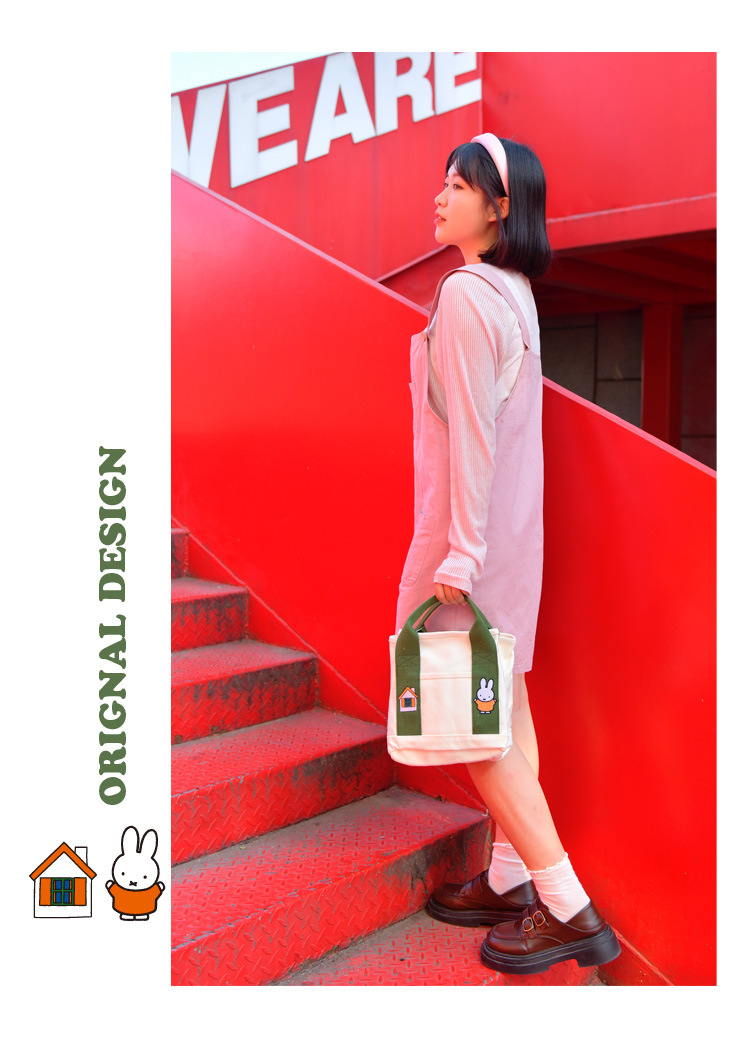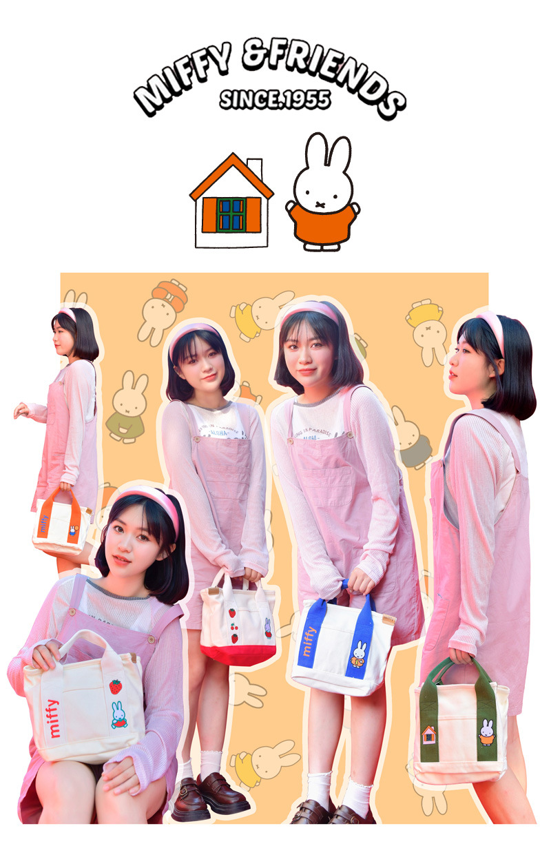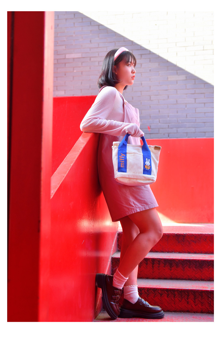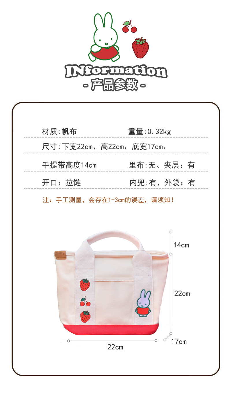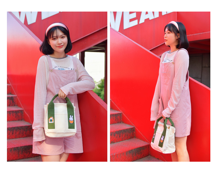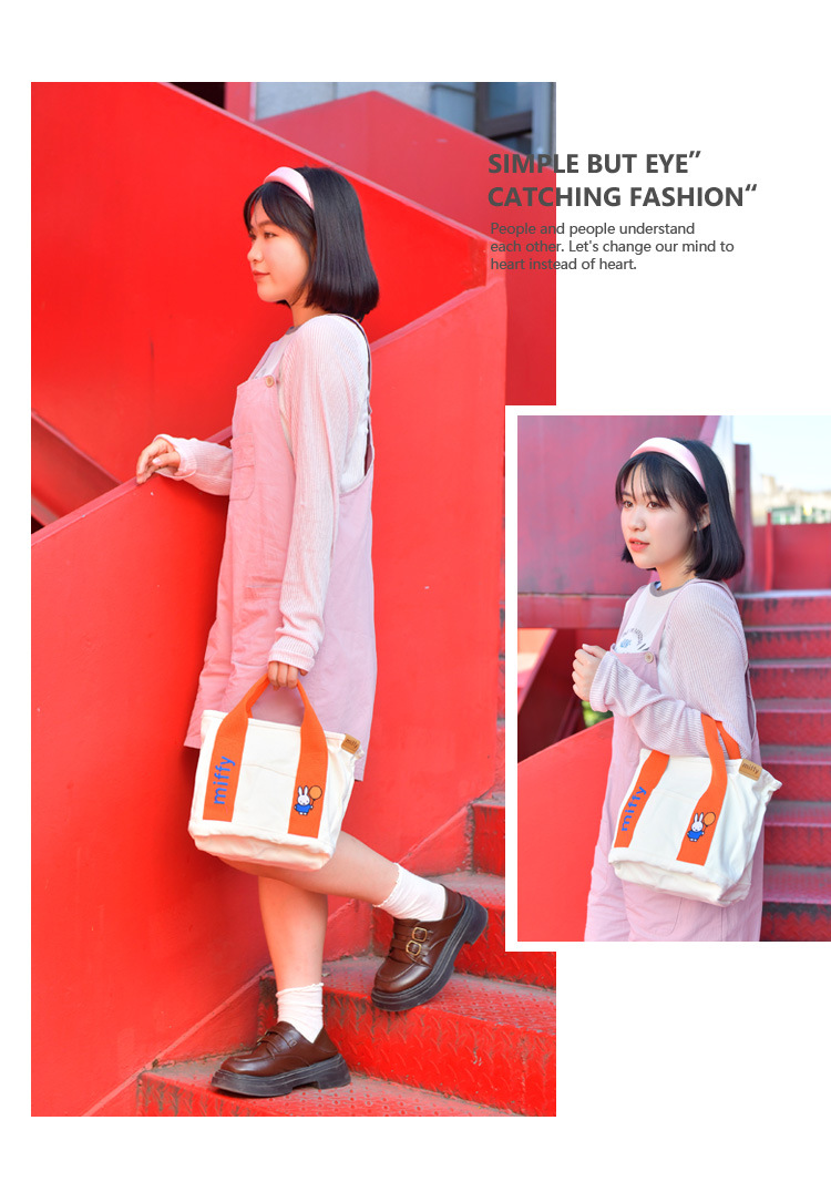 Barang Asli Miffy Miffy kelinci bordir ritsleting lucu Jepang dengan kompartemen tas tangan kanvas tas kotak makan siang bento