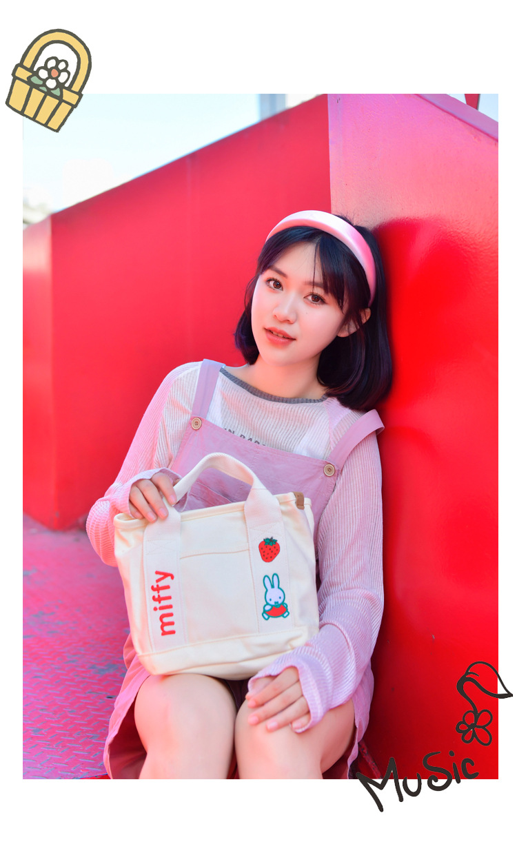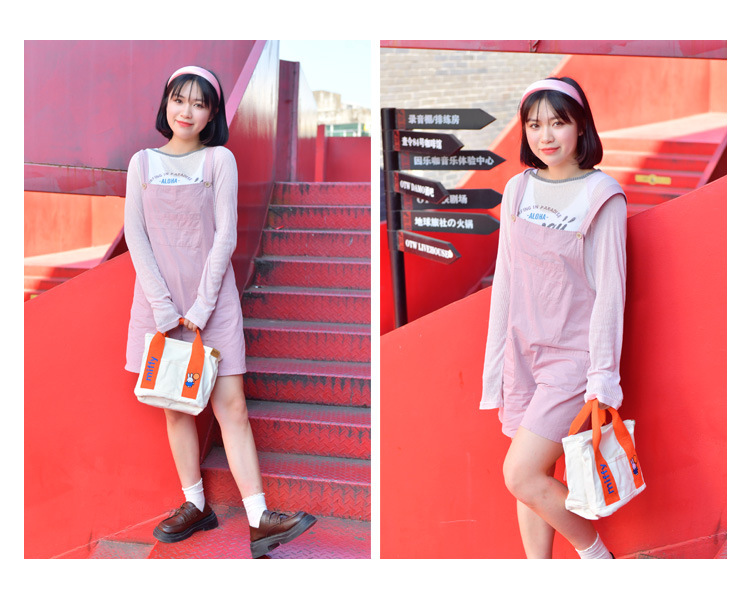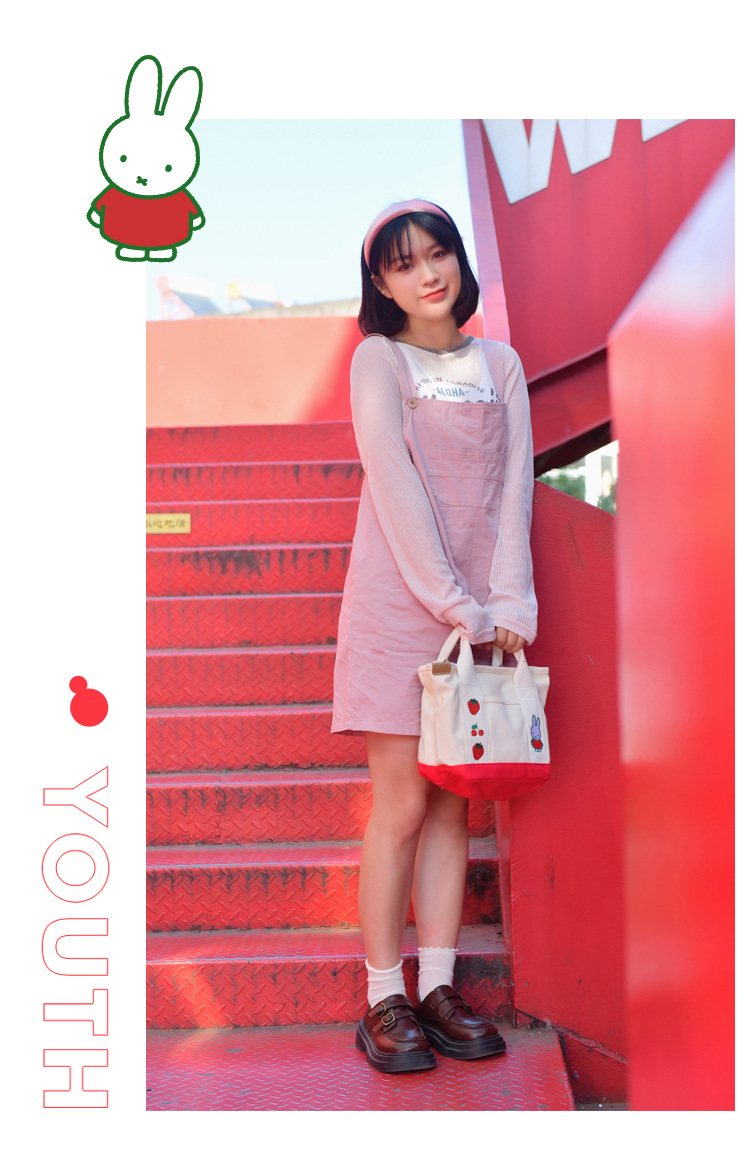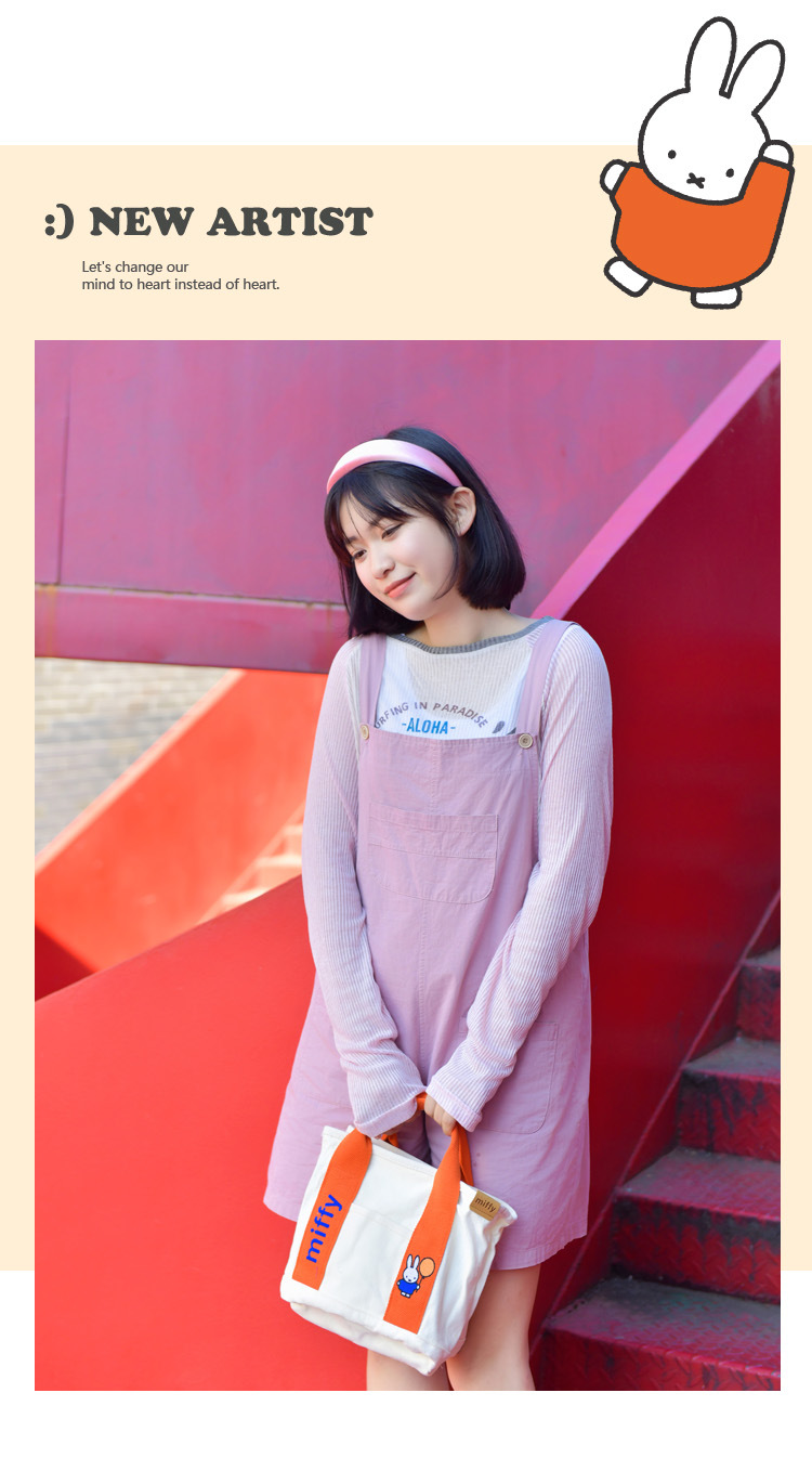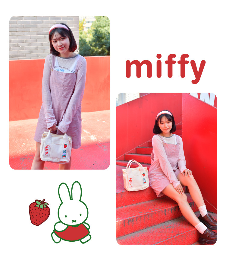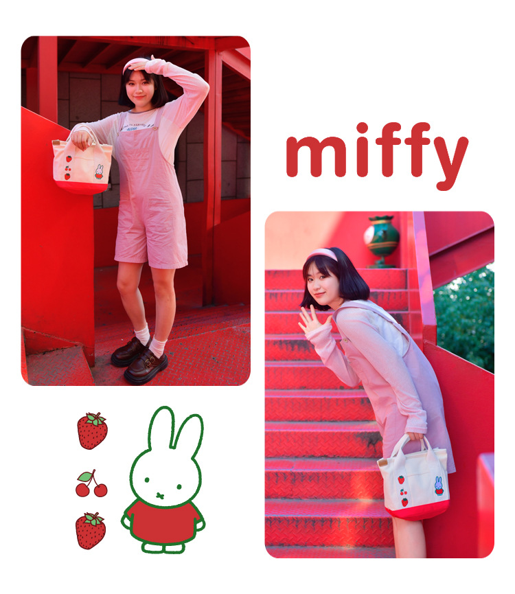 Barang Asli Miffy Miffy kelinci bordir ritsleting lucu Jepang dengan kompartemen tas tangan kanvas tas kotak makan siang bento