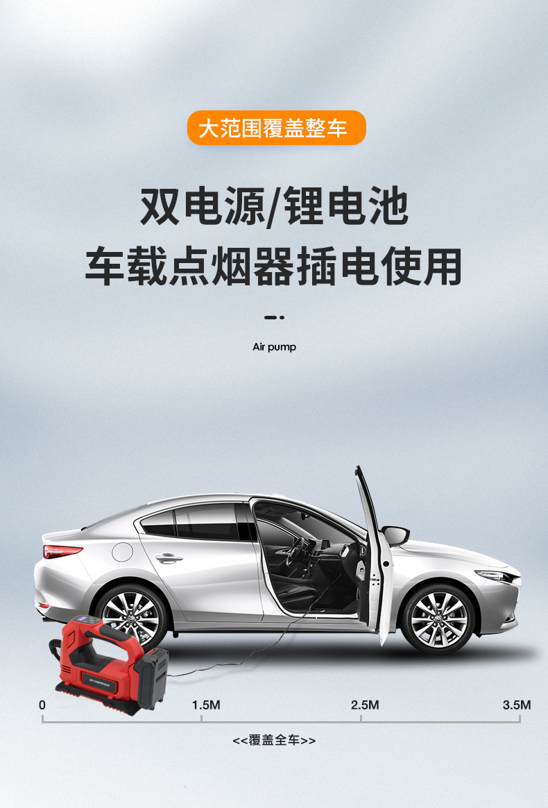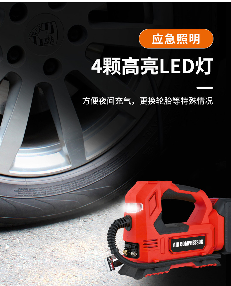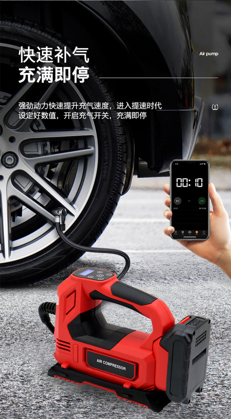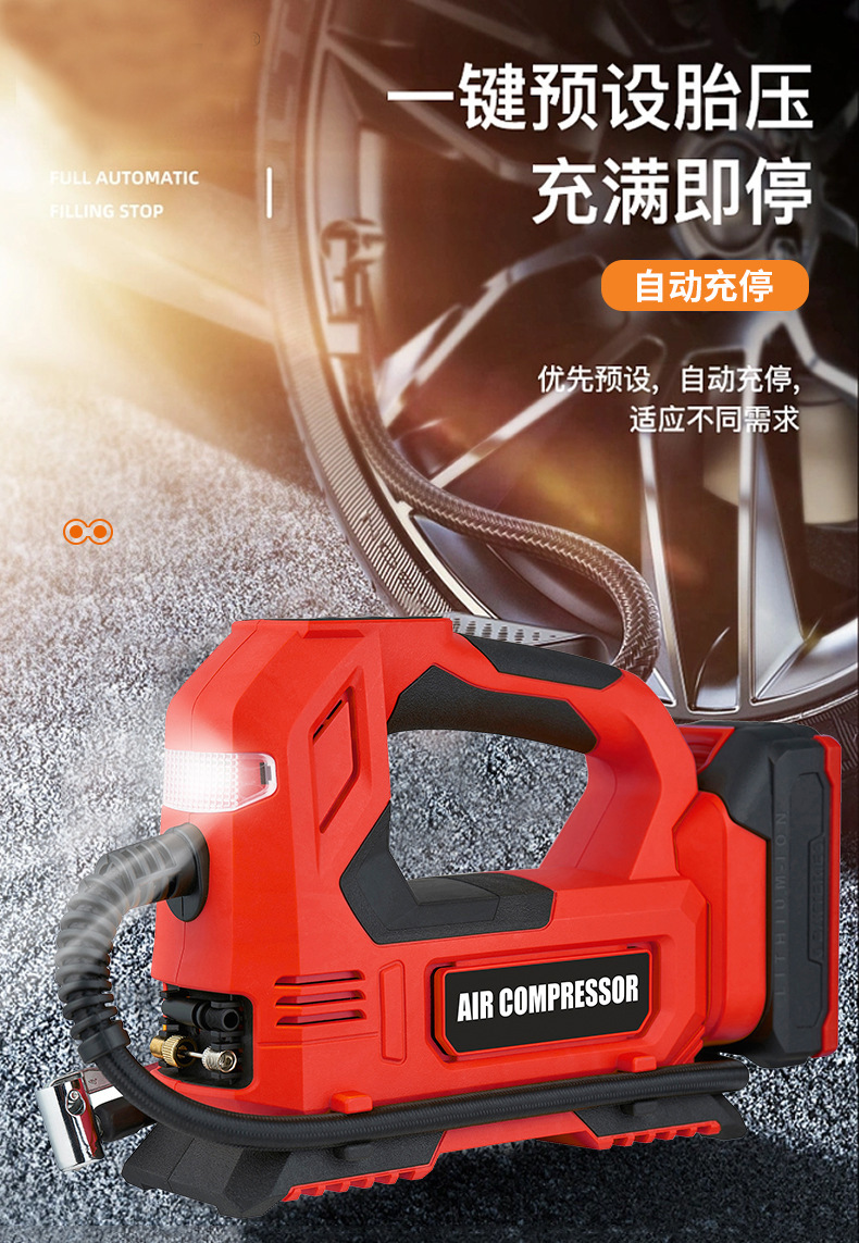 Pompa udara ban mobil pengisi daya mobil 21v, pompa udara ban elektrik portabel dengan catu daya ganda lampu