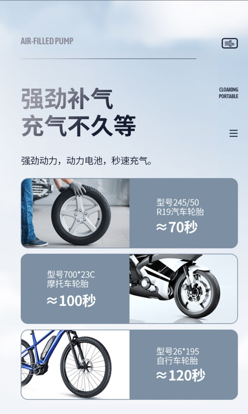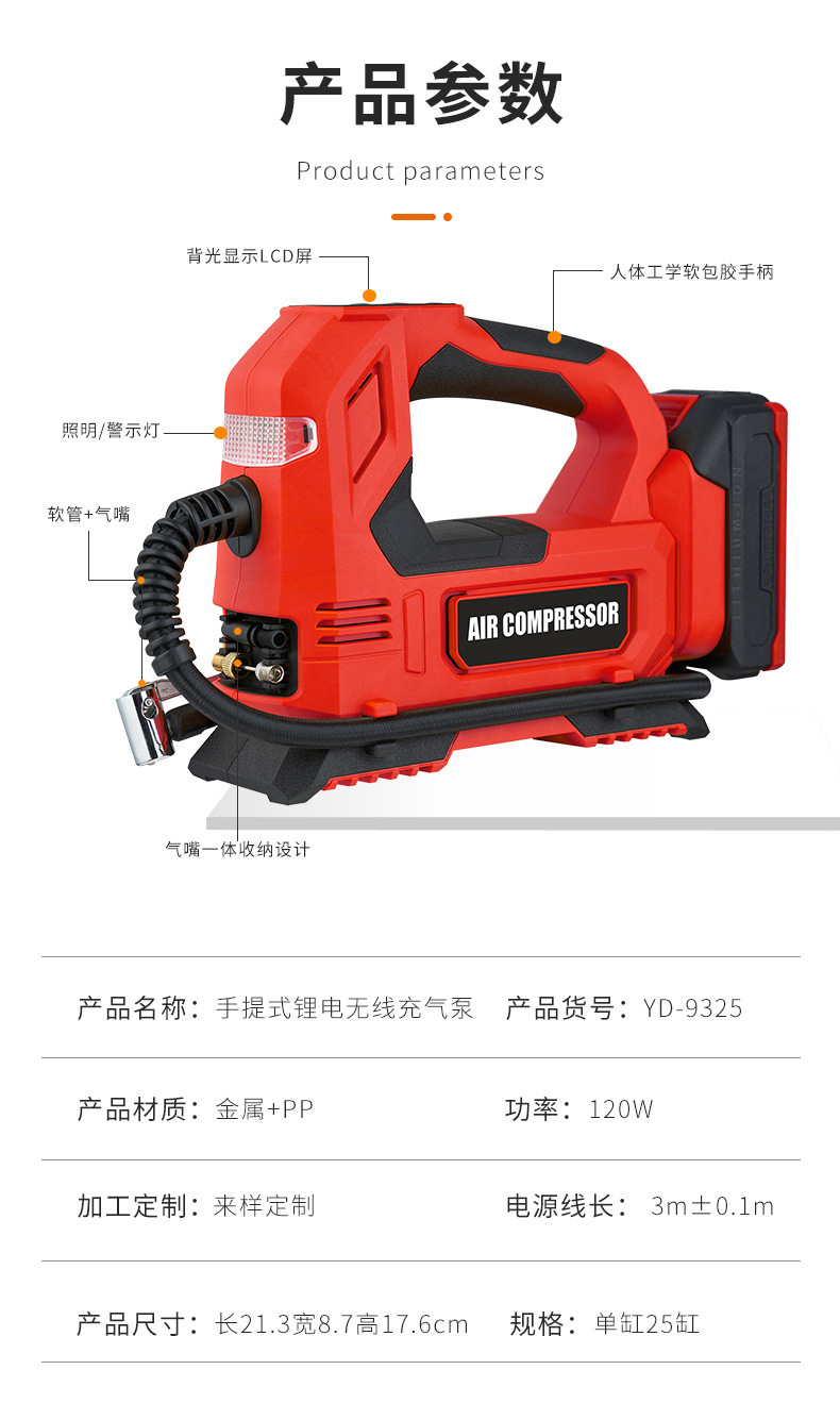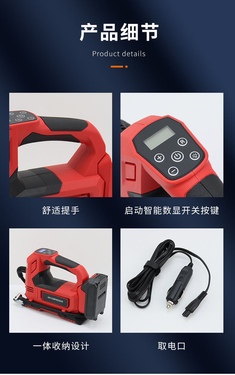 Pompa udara ban mobil pengisi daya mobil 21v, pompa udara ban elektrik portabel dengan catu daya ganda lampu