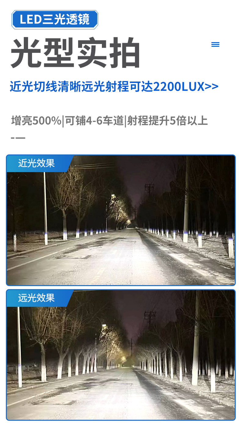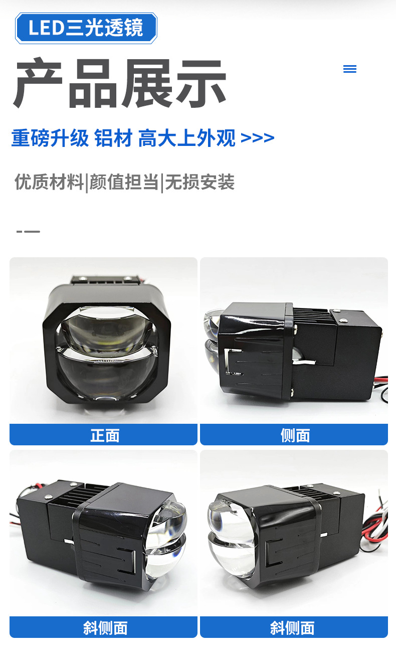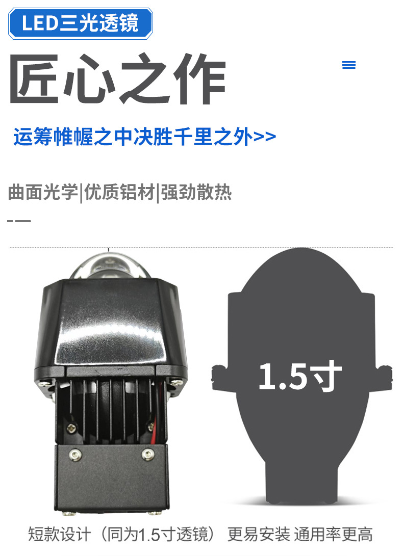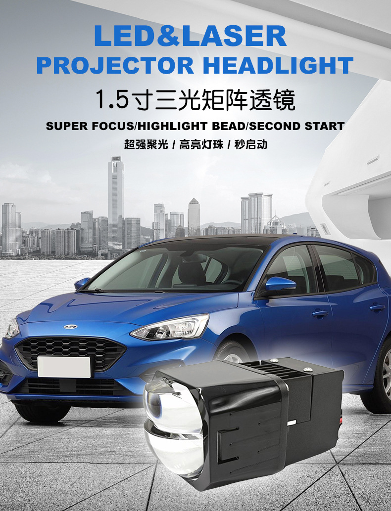 Lampu depan LED mobil lintas batas 1.5 inci, tiga lampu lensa matriks modifikasi mobil matriks cahaya ganda jauh dan dekat