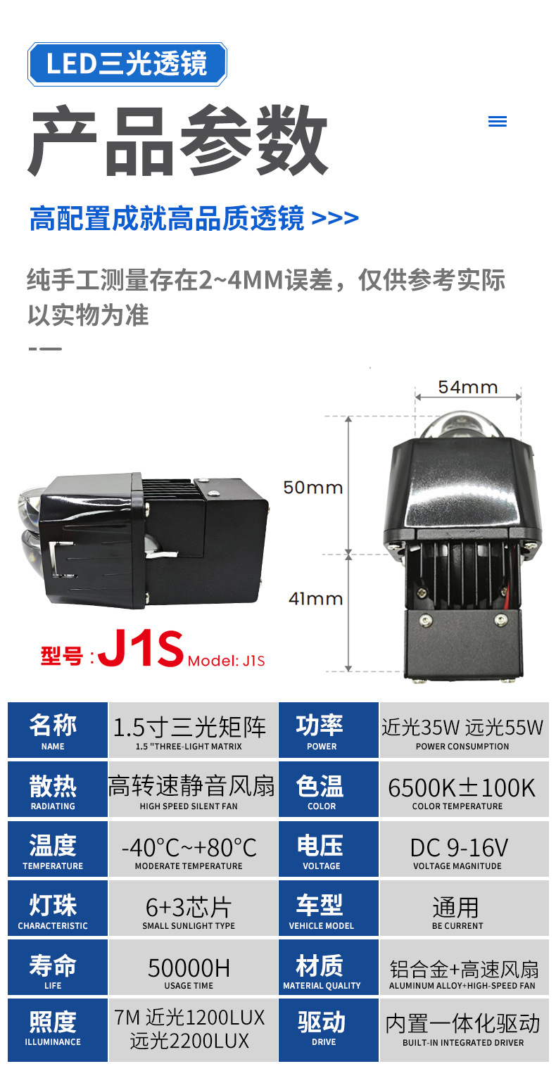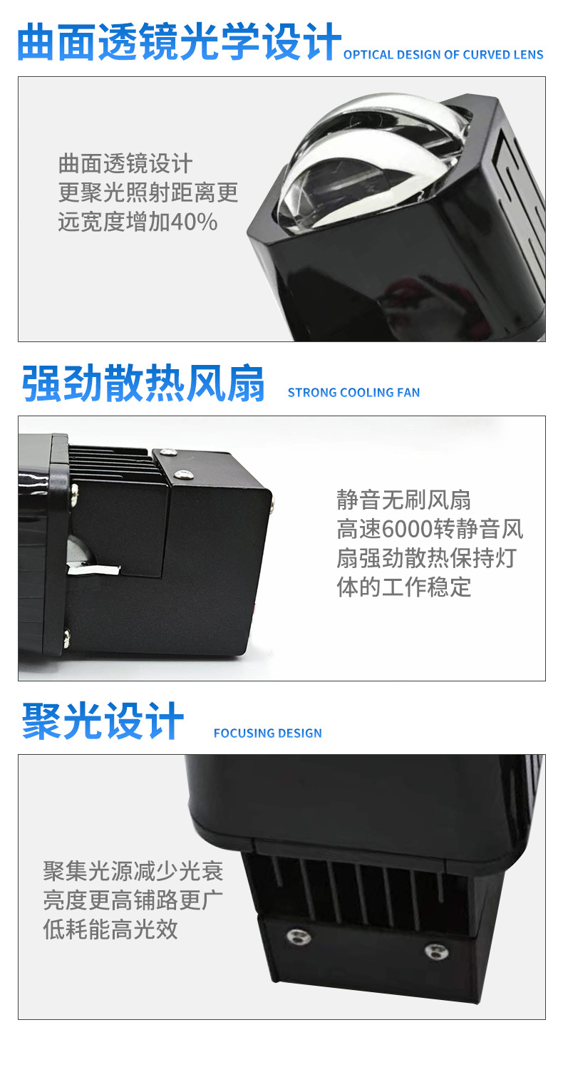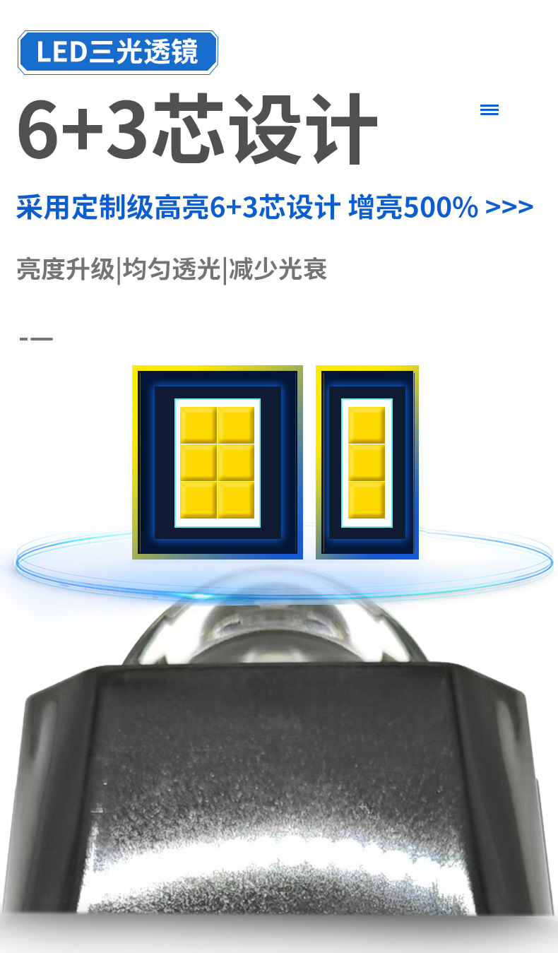 Lampu depan LED mobil lintas batas 1.5 inci, tiga lampu lensa matriks modifikasi mobil matriks cahaya ganda jauh dan dekat
