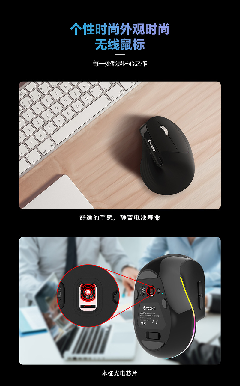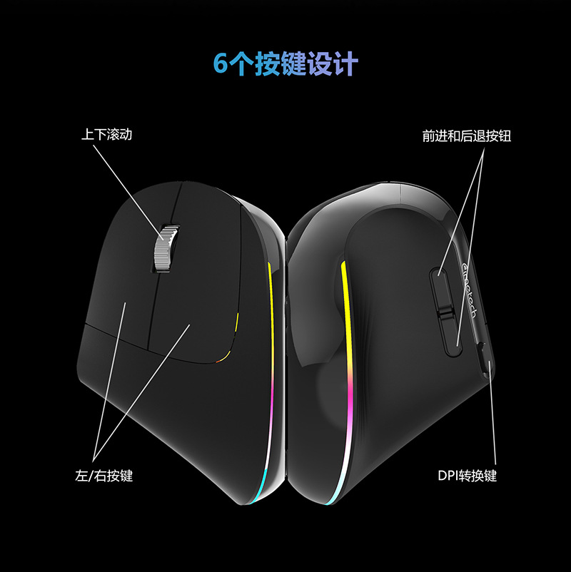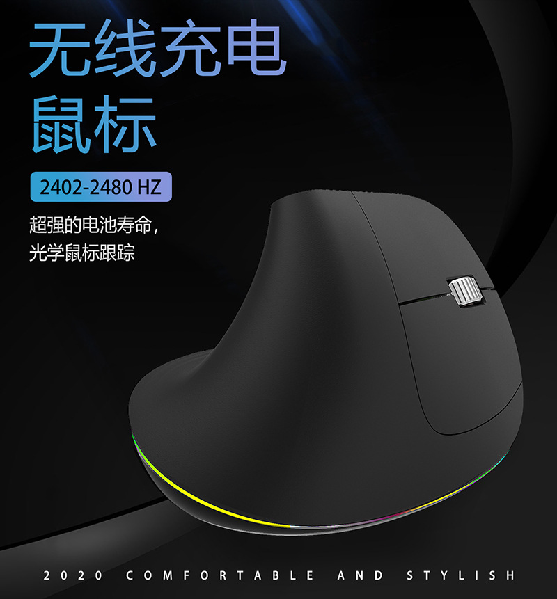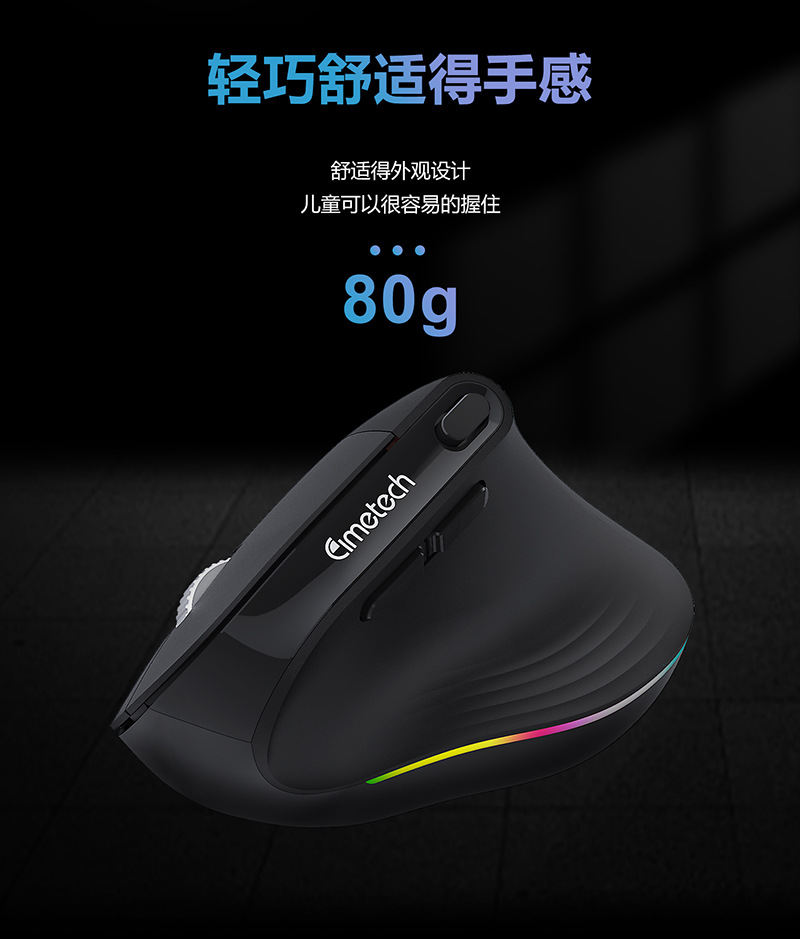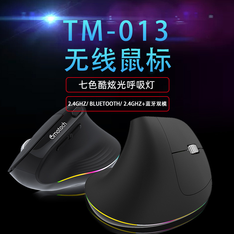TM-012 mouse nirkabel vertikal, desain ergonomis cahaya warna-warni ringan nyaman 2.4g Bluetooth Mode ganda