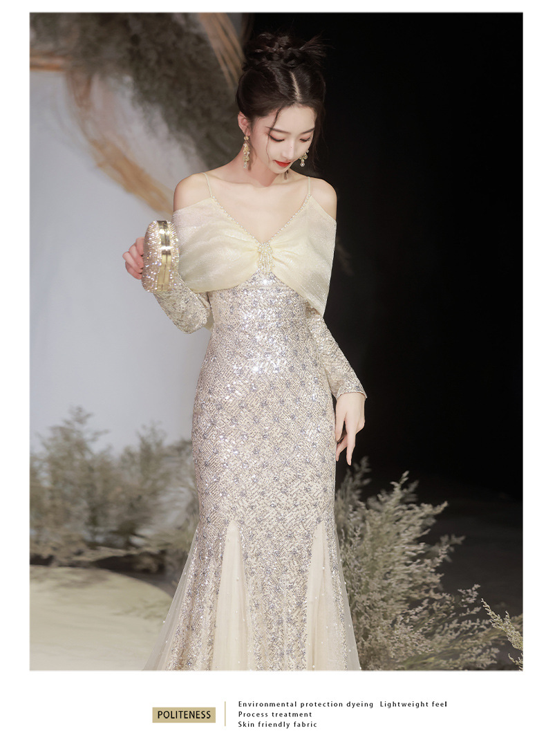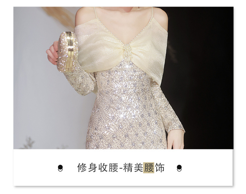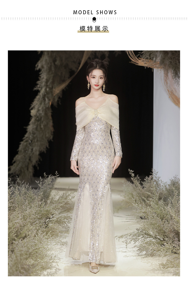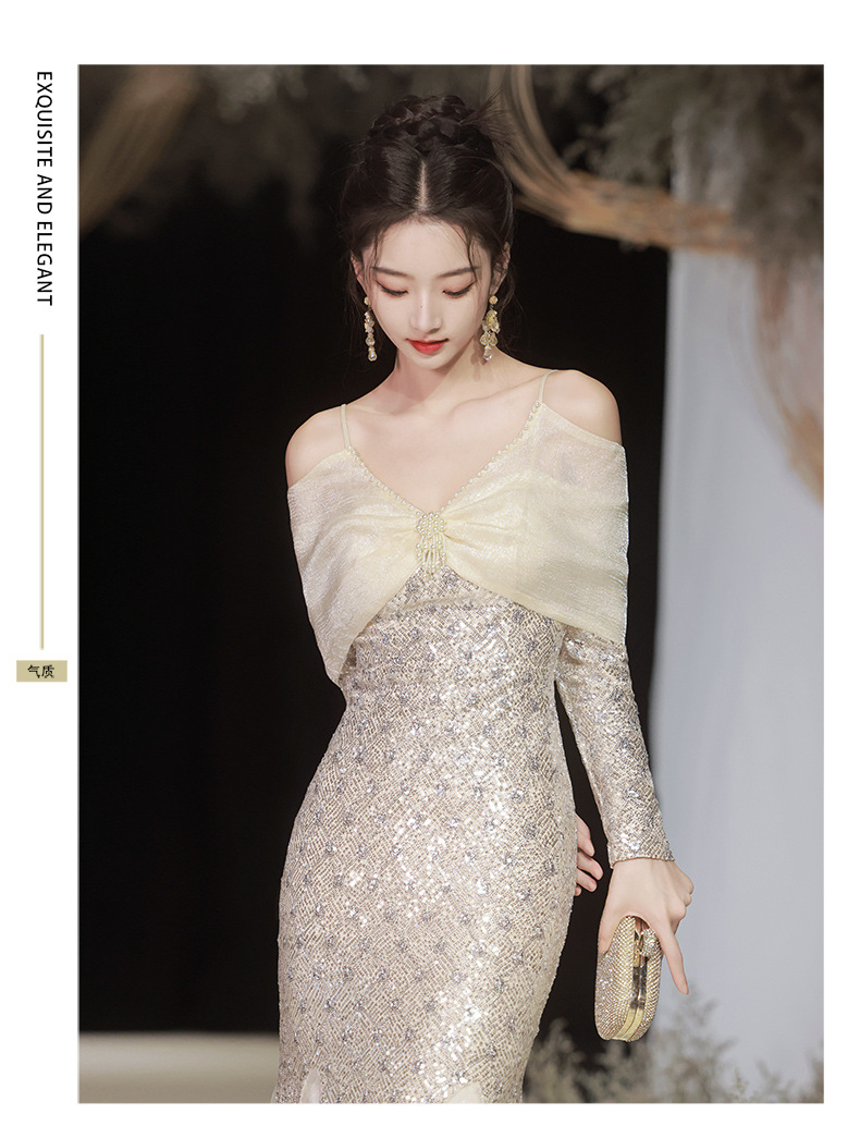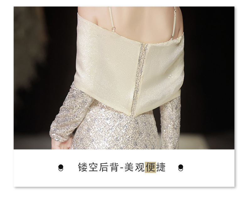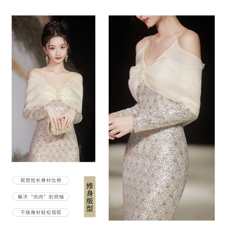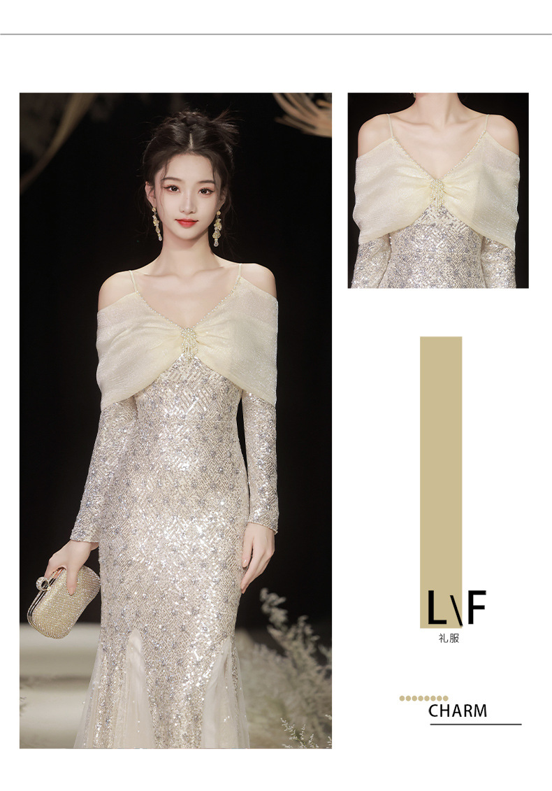 Gaun malam mewah dengan tali, model baru musim gugur dan musim dingin 2025, gaun payet ekor ikan yang menawan dan mewah untuk acara resmi wanita dewasa.