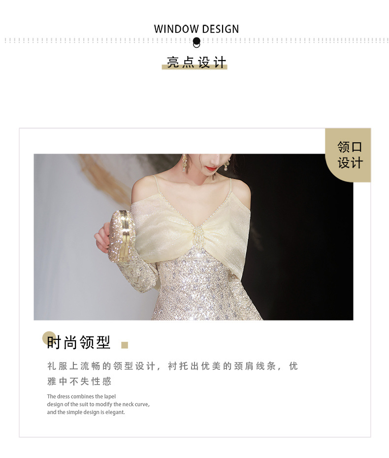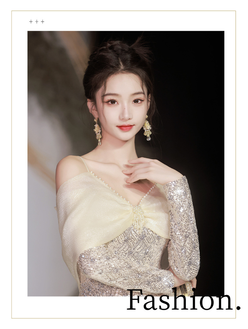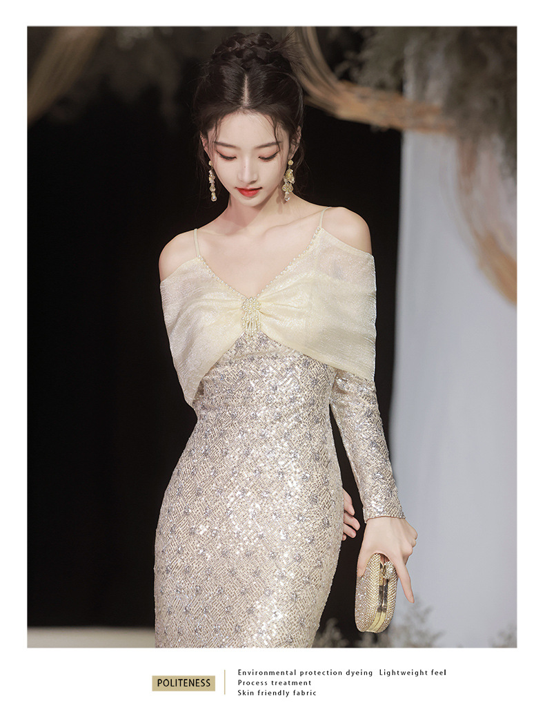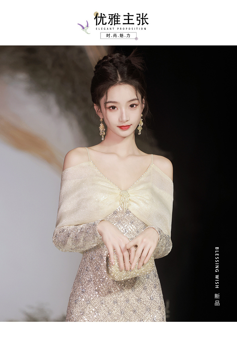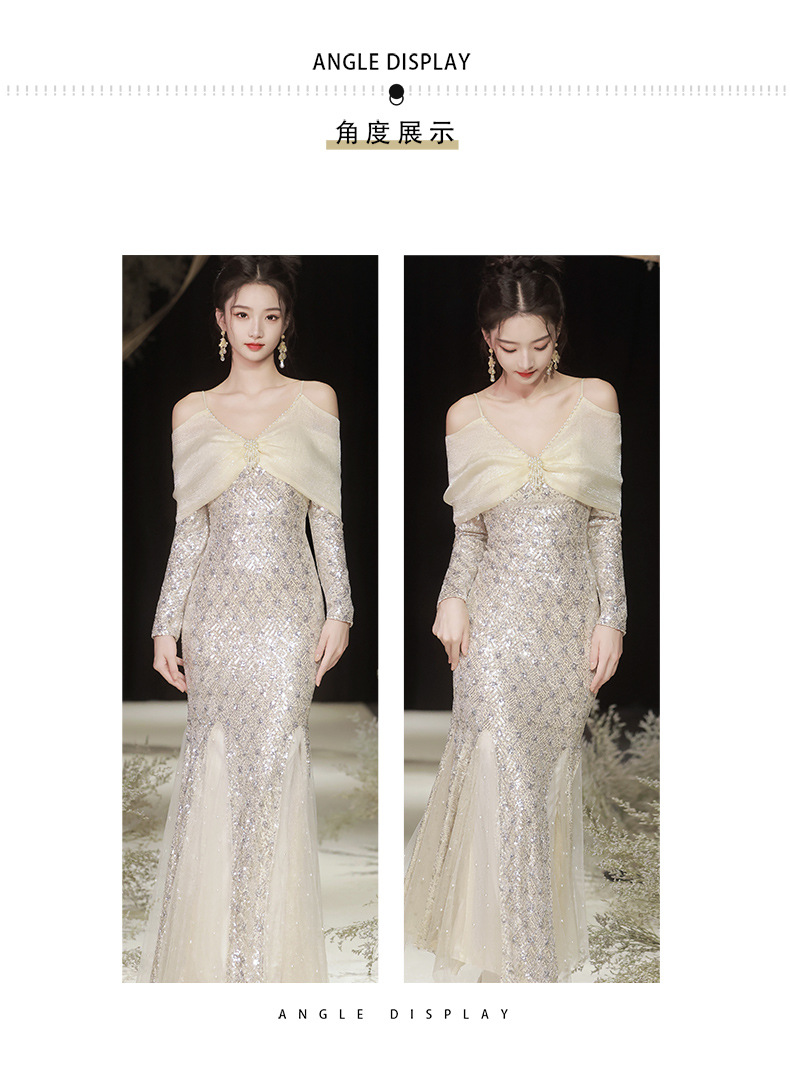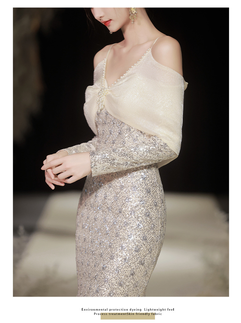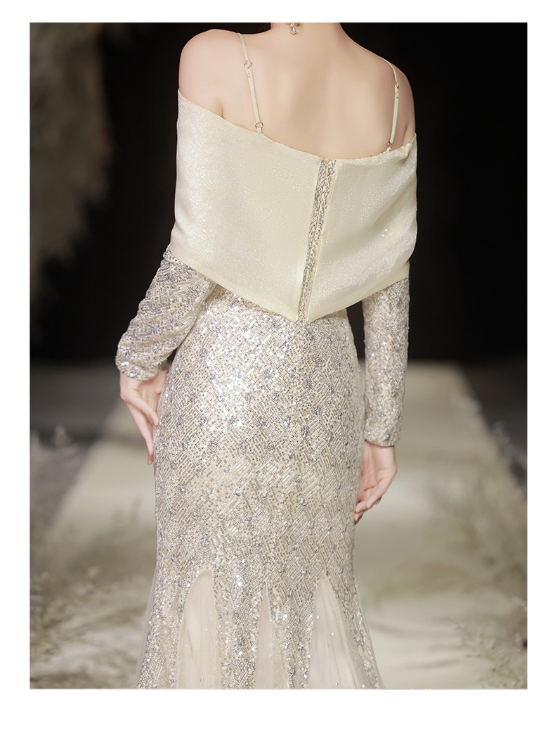 Gaun malam mewah dengan tali, model baru musim gugur dan musim dingin 2025, gaun payet ekor ikan yang menawan dan mewah untuk acara resmi wanita dewasa.