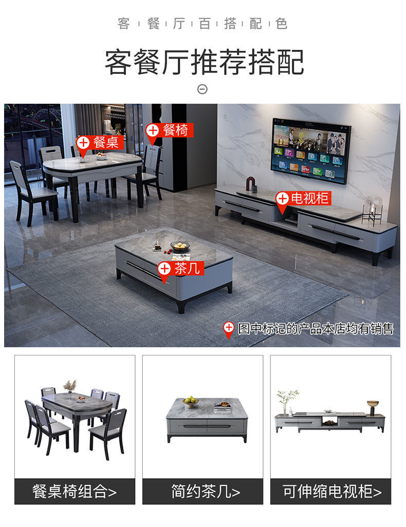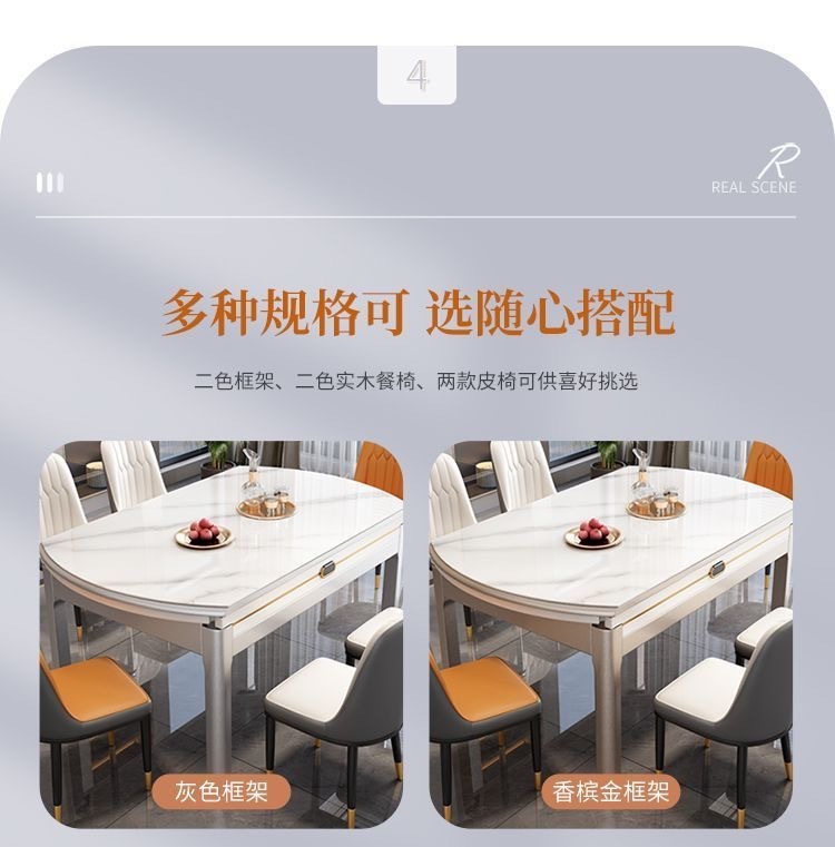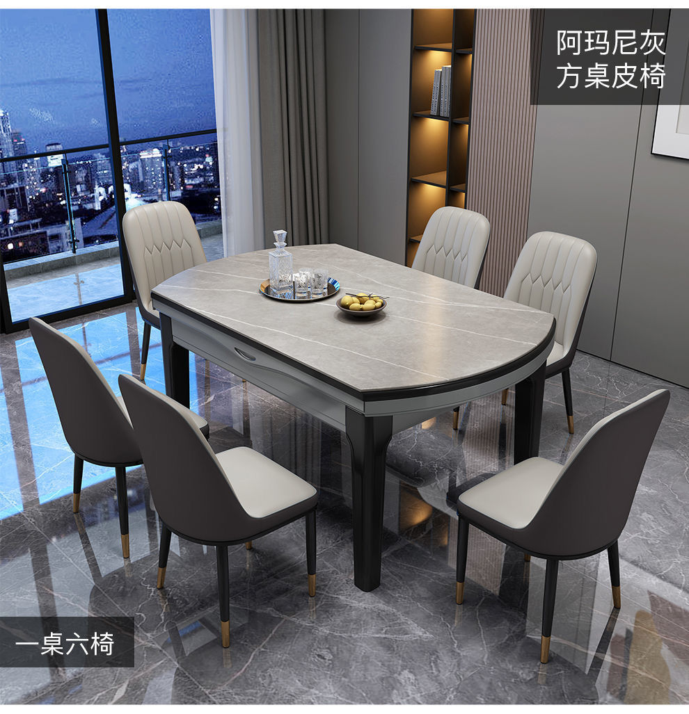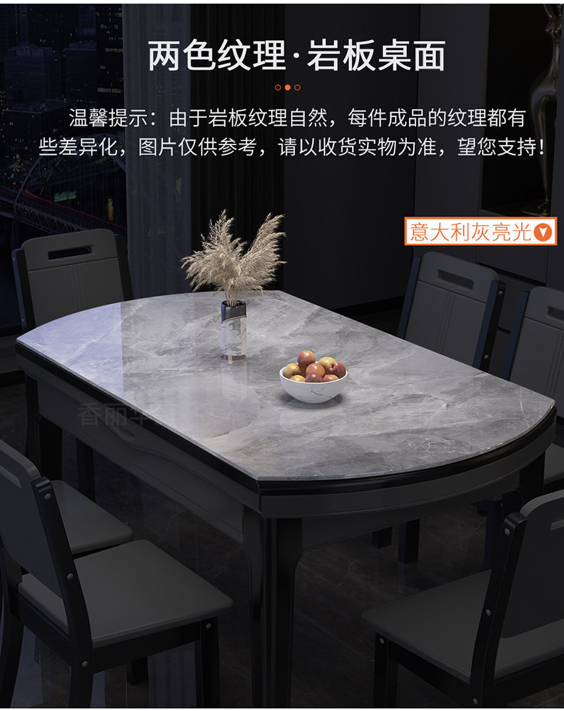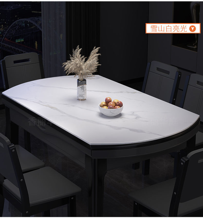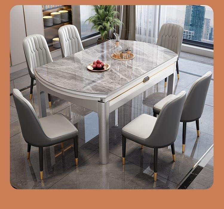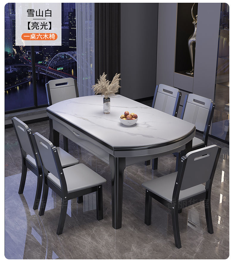 Meja Makan Papan Batu Permukaan Terang Gaya Italia Set Meja Kombinasi Kursi Meja Bundar Kayu Solid Lipat Sederhana Modern